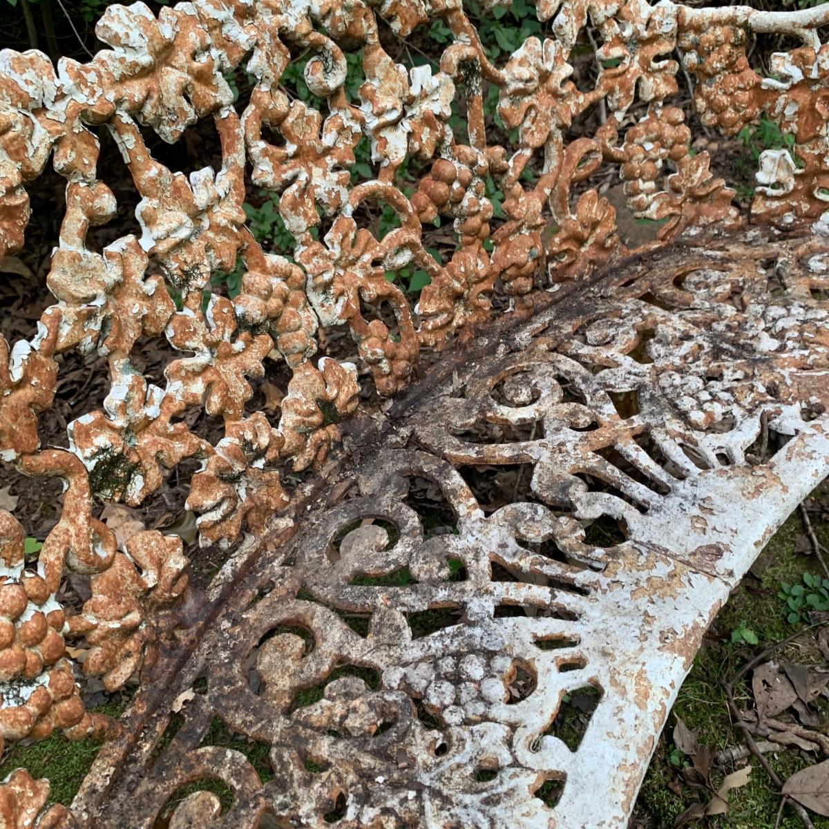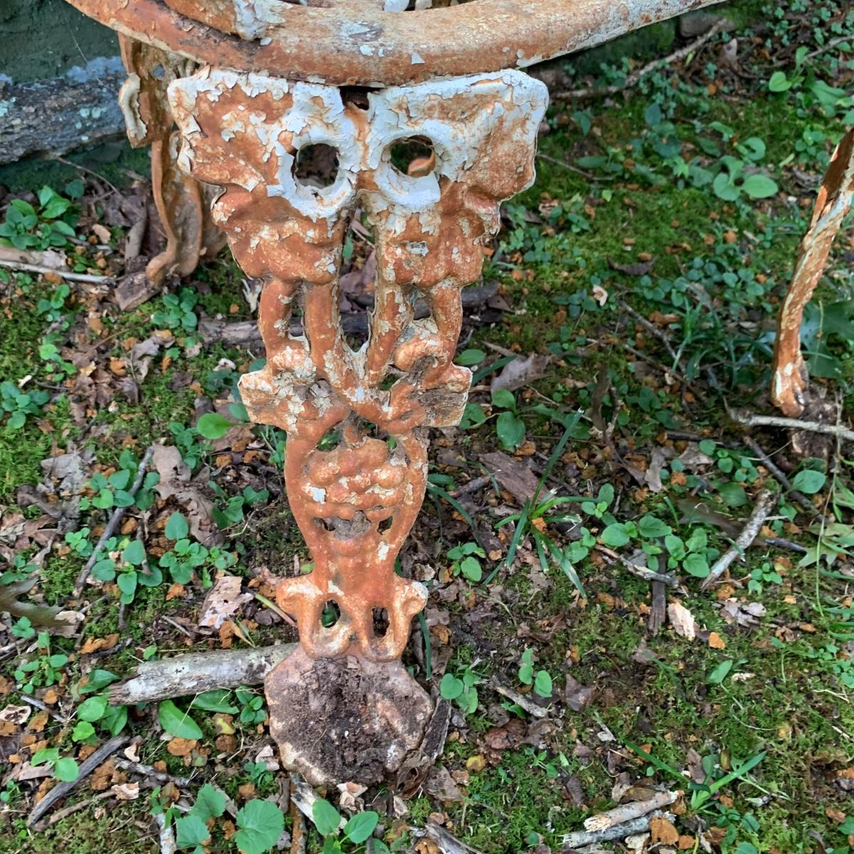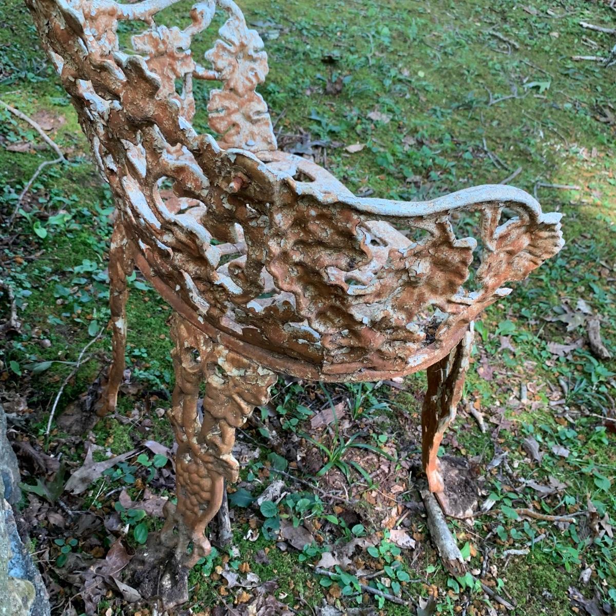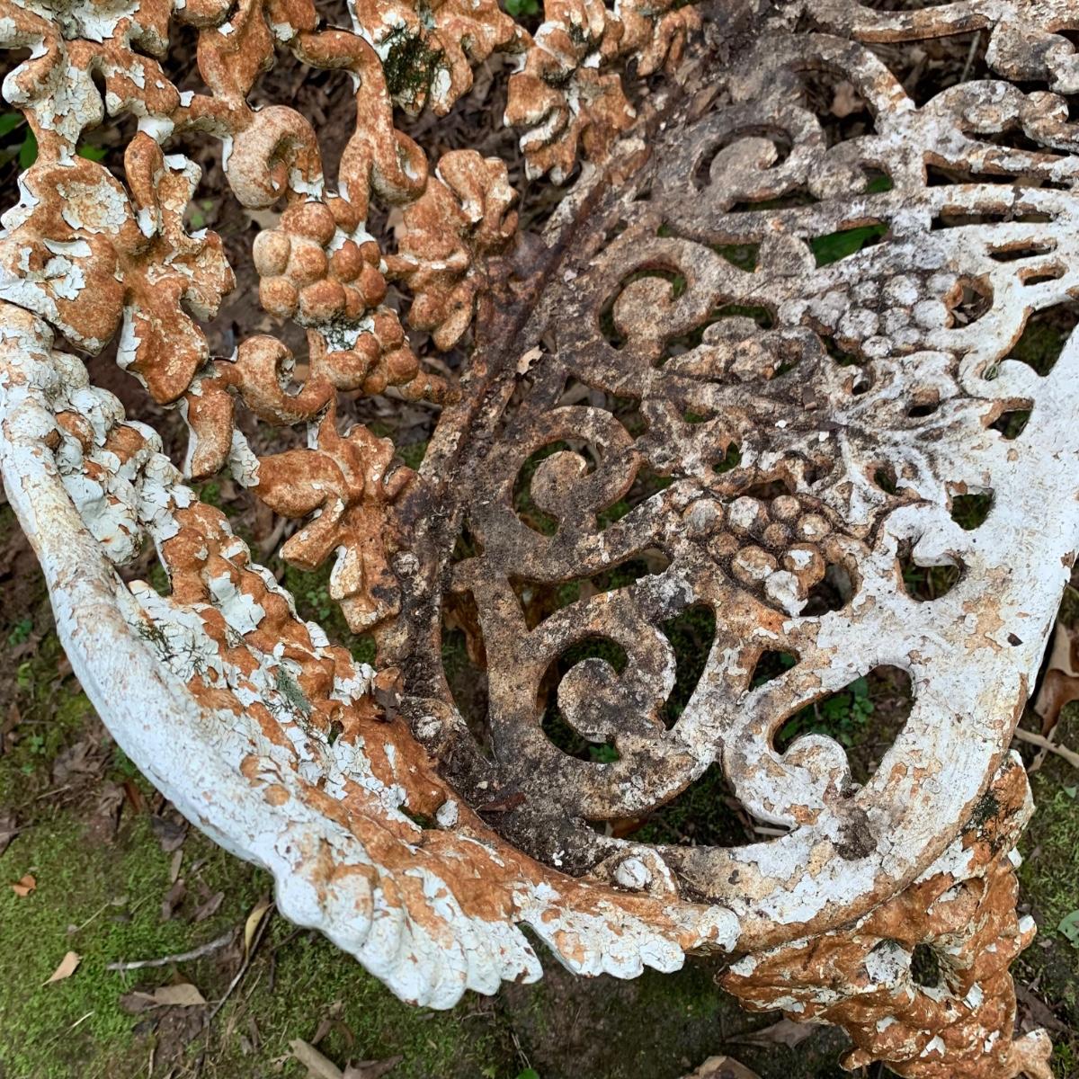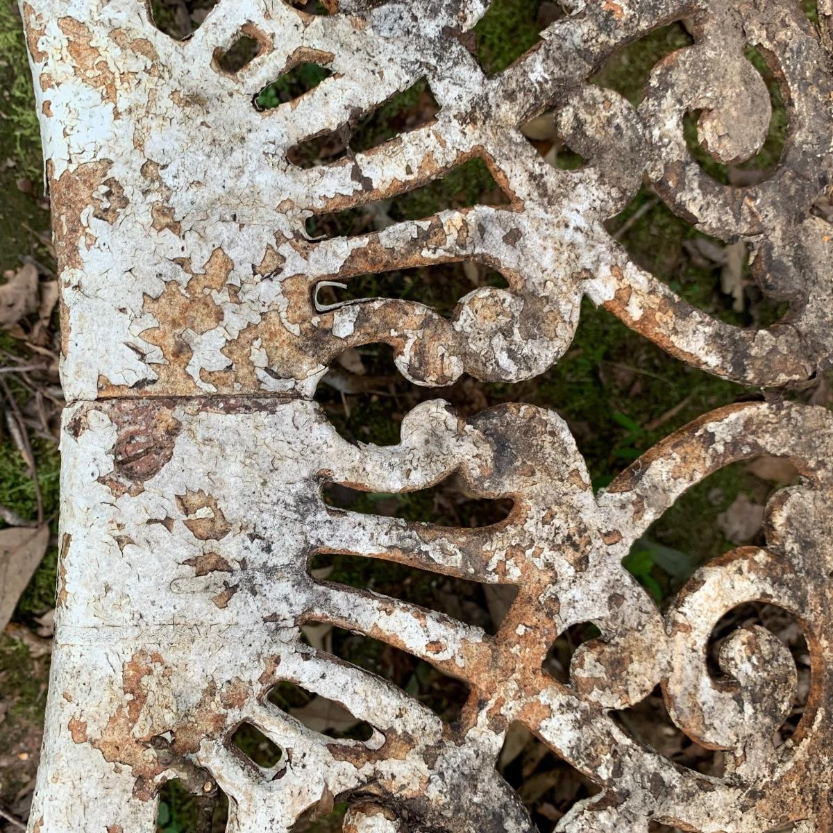 Three outdoor benches. Two are metal, perhaps iron. The smaller metal bench measures 22.5” x 14” x 26” with a seat height of 15”. The larger metal bench measures 38.5” x 17” x 28.5” with a seat height of 14.5”. These are in fair condition as they are quite rusted and weathered. The third bench is wood with a metal base. It measures 50” x 22” x 33” with a seat height of 14”. This bench is also in fair condition as it has been outside in the elements. The winning bidder should bring someone to help move these items up as they are a bit heavy. Local pickup only.