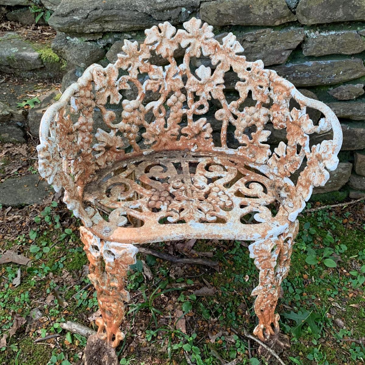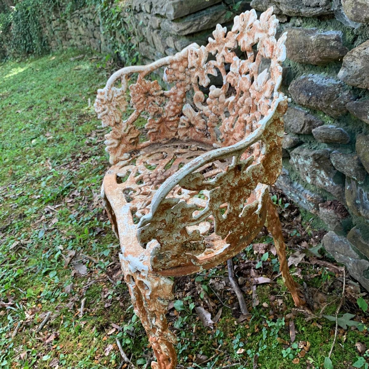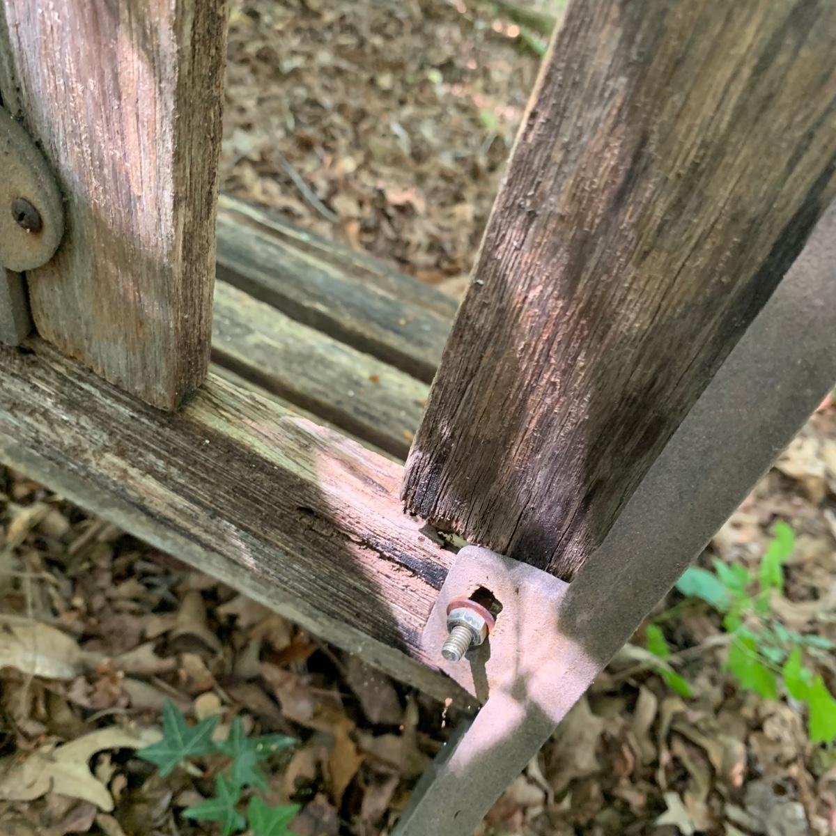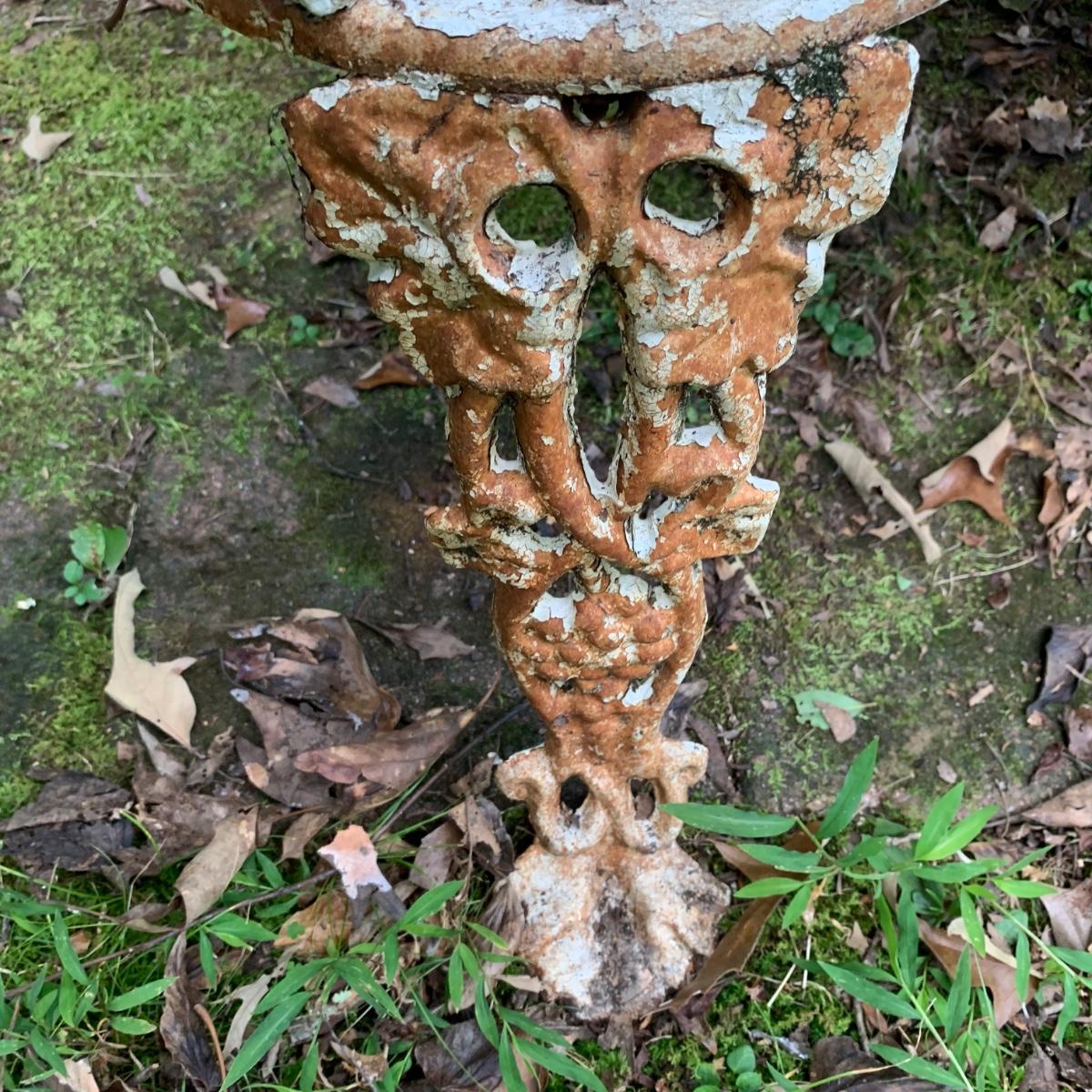 Three outdoor benches. Two are metal, perhaps iron. The smaller metal bench measures 22.5” x 14” x 26” with a seat height of 15”. The larger metal bench measures 38.5” x 17” x 28.5” with a seat height of 14.5”. These are in fair condition as they are quite rusted and weathered. The third bench is wood with a metal base. It measures 50” x 22” x 33” with a seat height of 14”. This bench is also in fair condition as it has been outside in the elements. The winning bidder should bring someone to help move these items up as they are a bit heavy. Local pickup only.