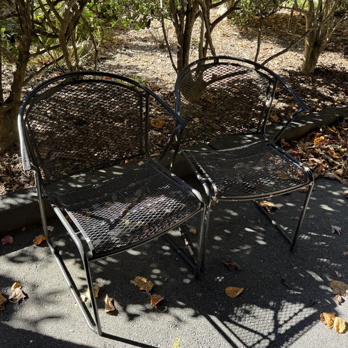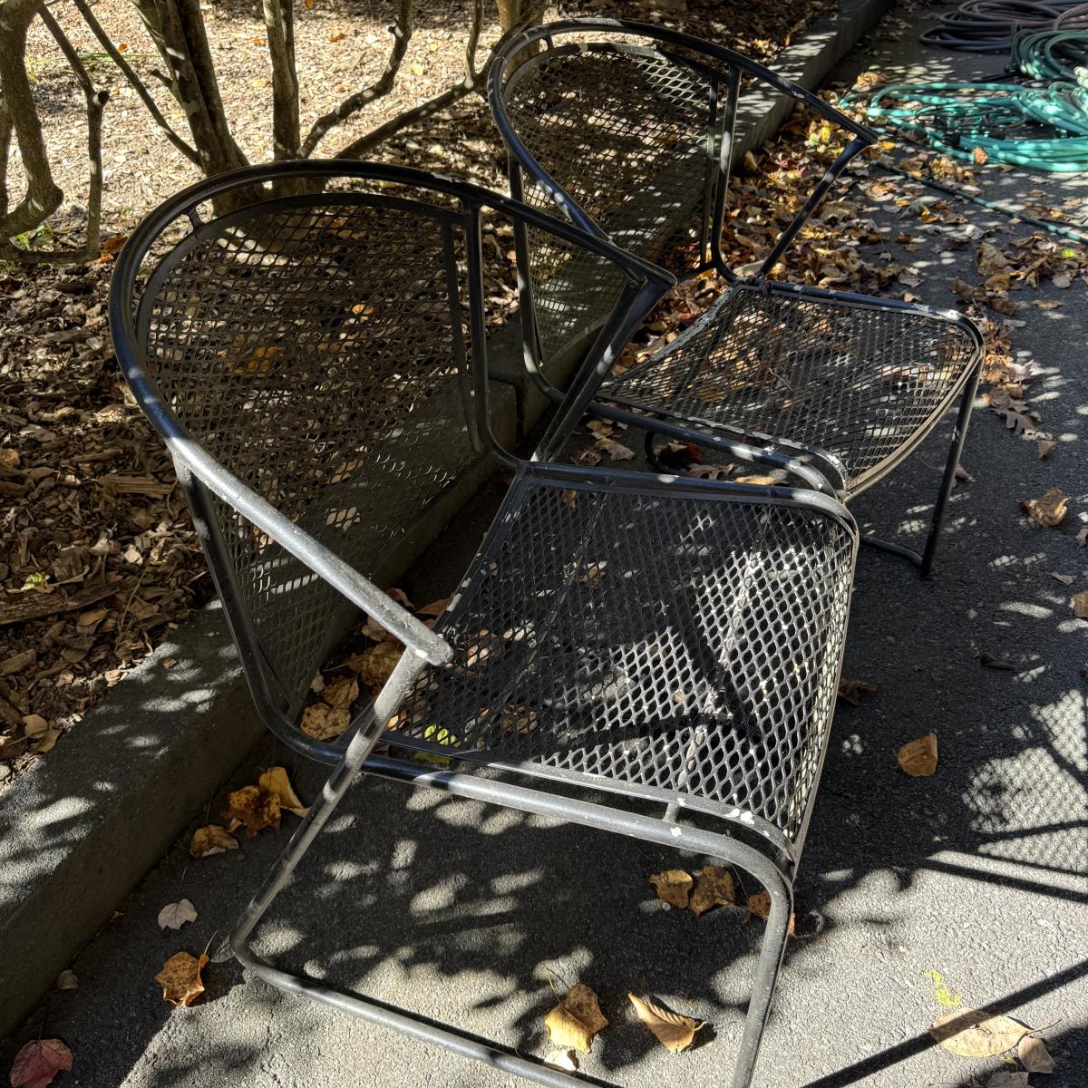 They need to be repainted because of some paint chips but you can spray paint them any color you want and they’ll be good as new. Theyve been outside but Good bones. Measure approximately 24” x 22” x 33”h. Seat measures 18”h