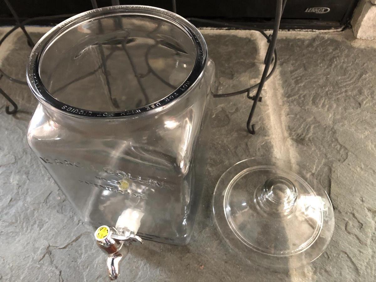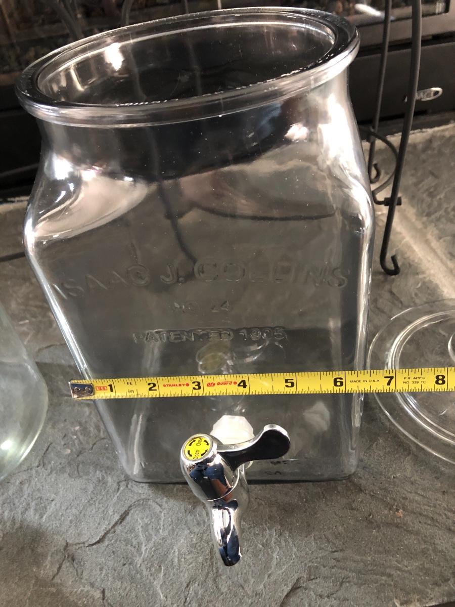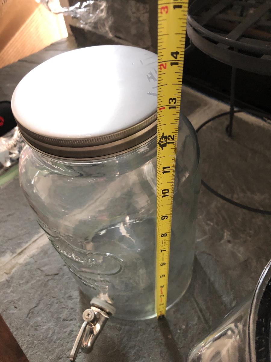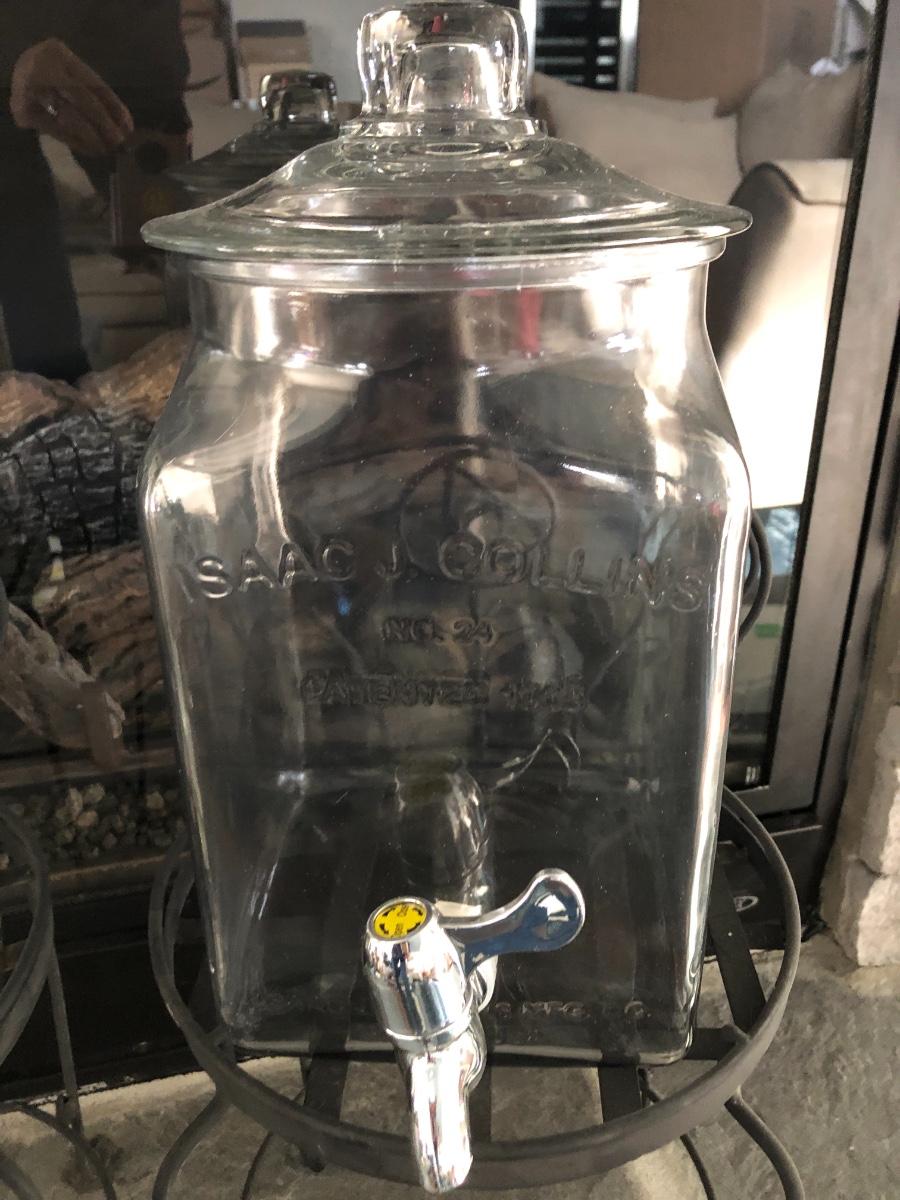 Two Metal Planters / Sun Tea Glass Jar Dispensers