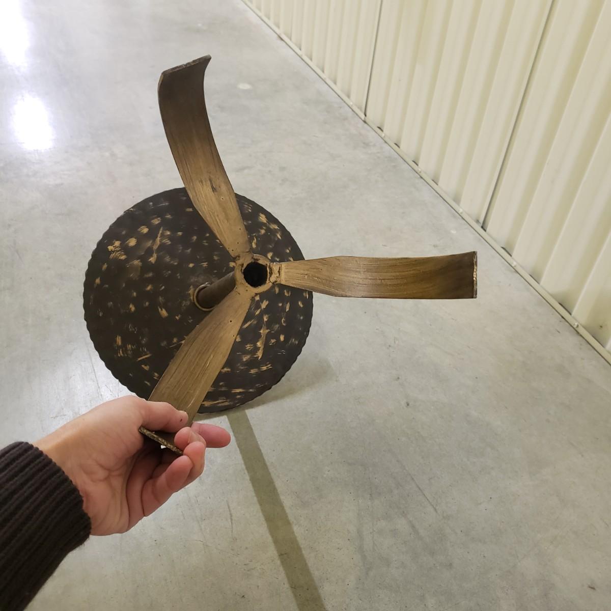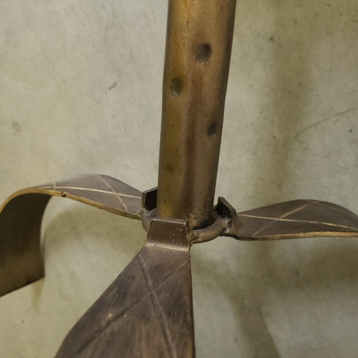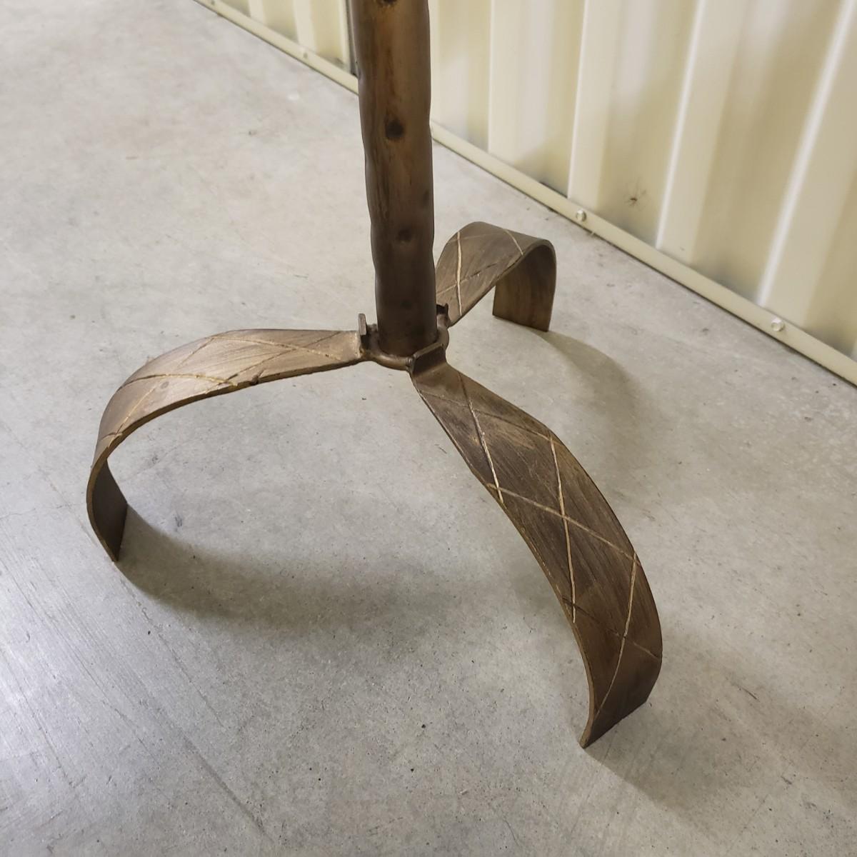 These are two metal tables with a brass colored finish. Each table measures 12"D x 18"H. There is a rope like feature around the edge of the top. These would be perfect for a plant or next to a chair.