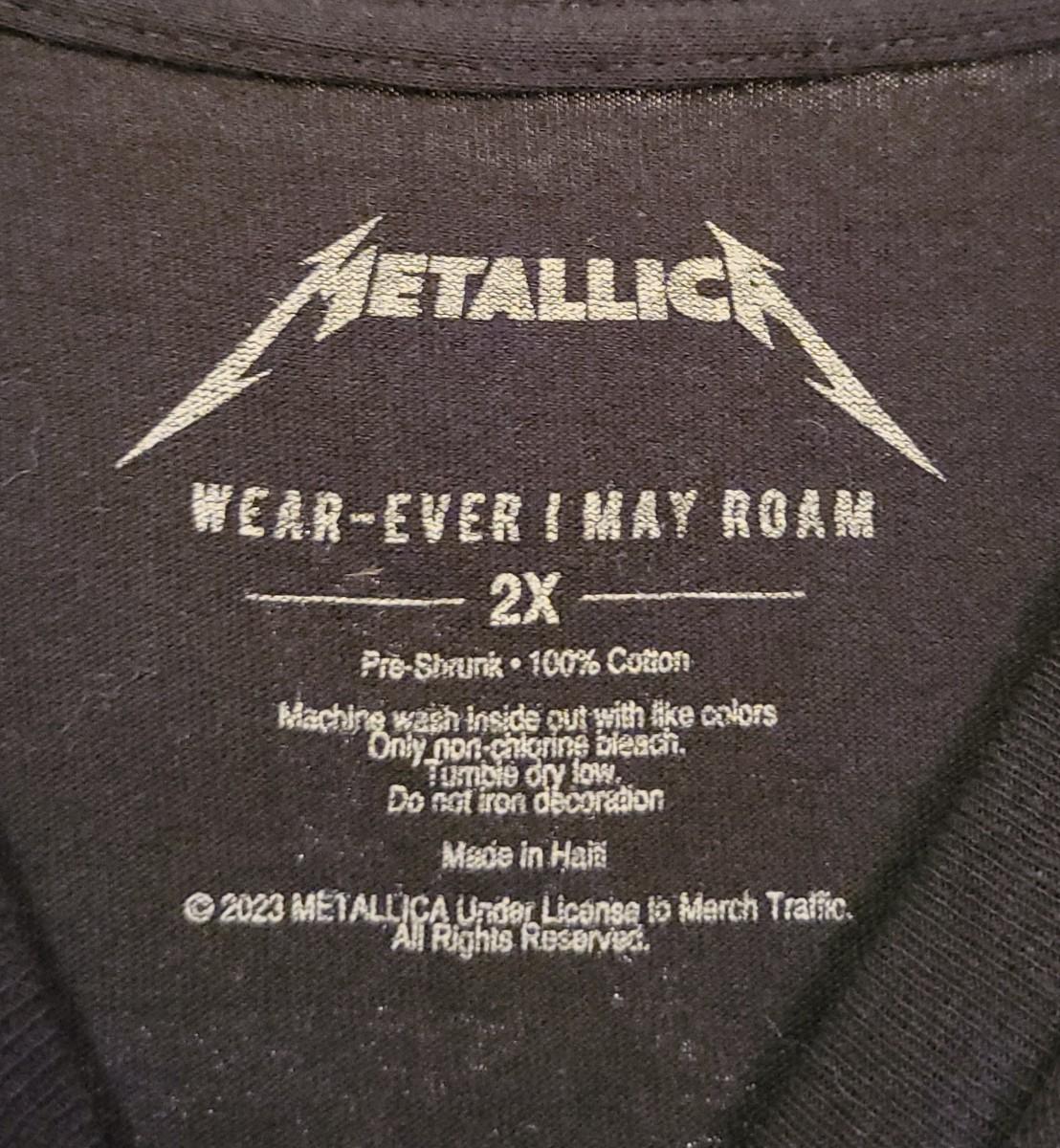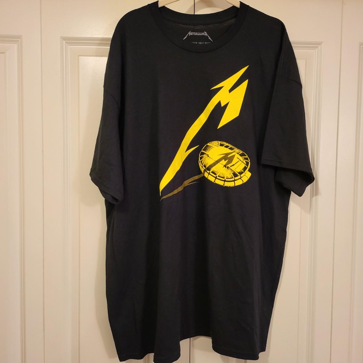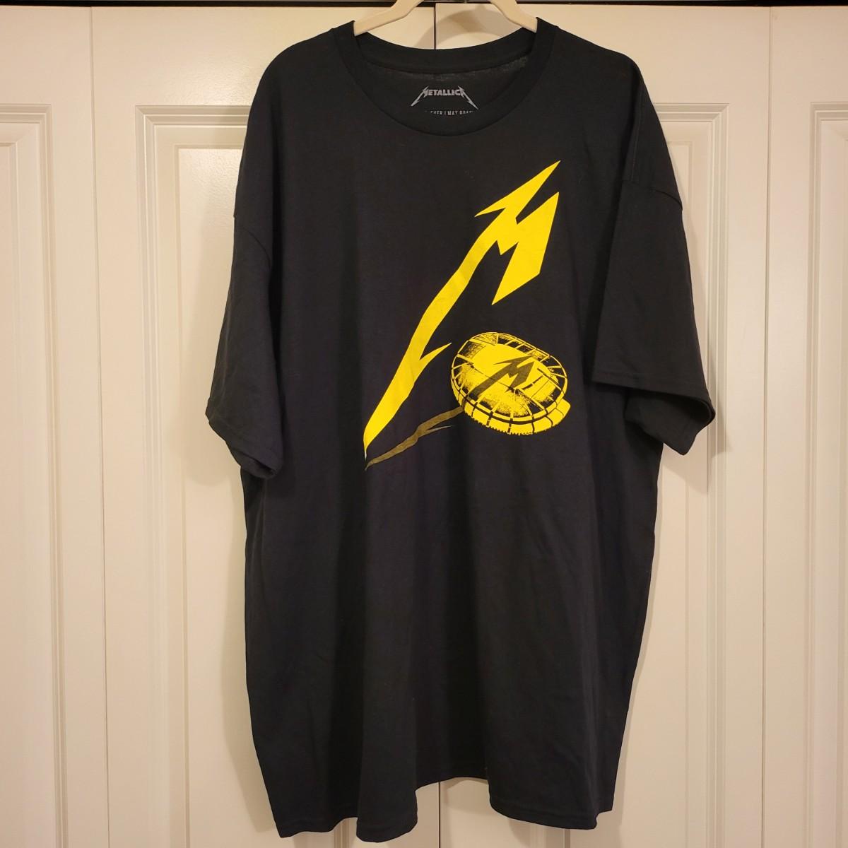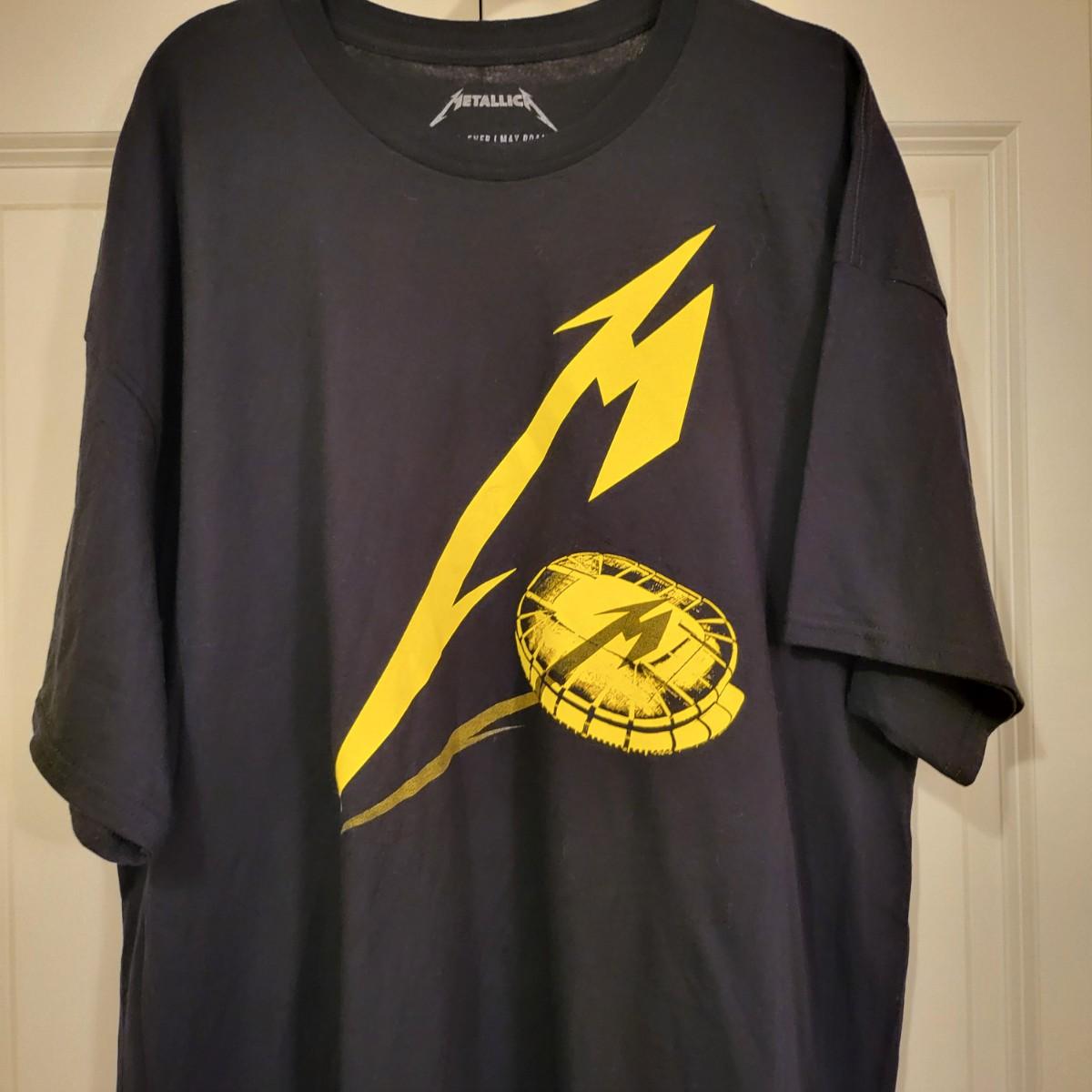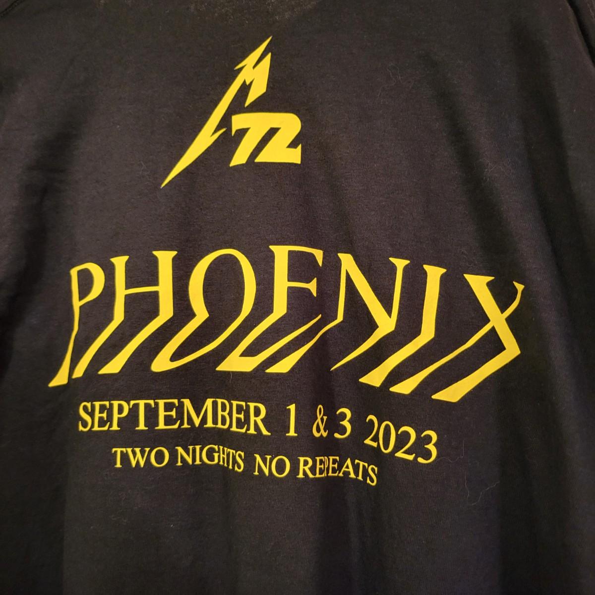 Official Metallica 2023 Pheonix, AZ black tee shirt with bright yellow screen print, men's size 2XL.
