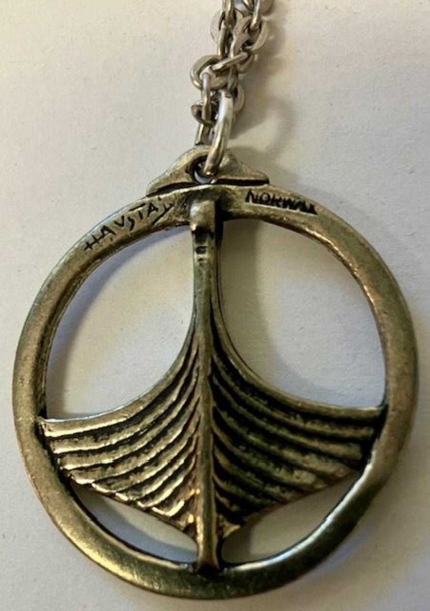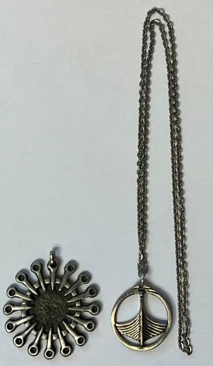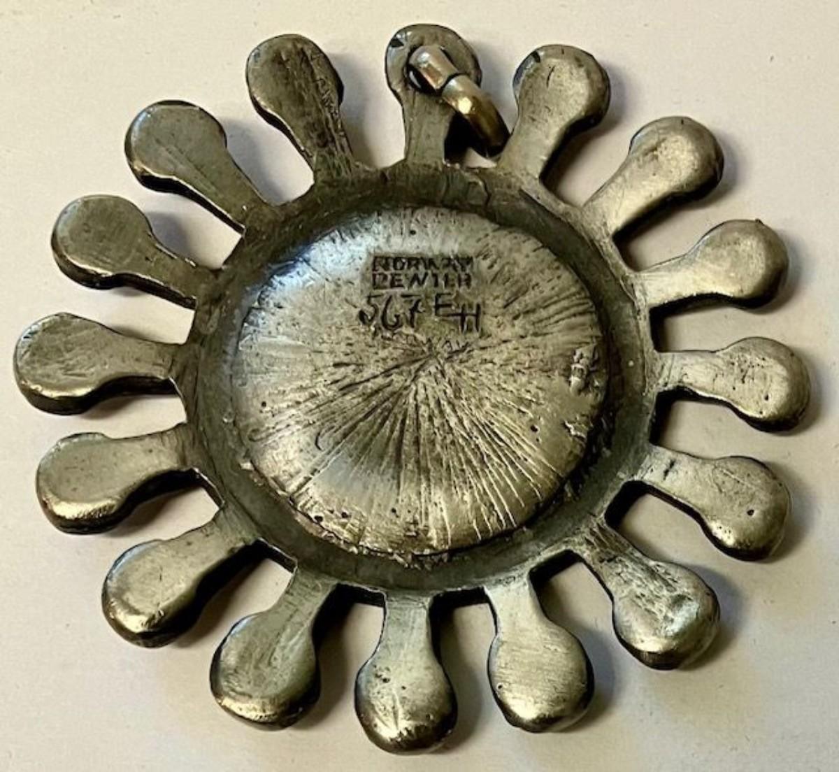 Pendant with chain is by Havstad Tinn-measures 1 1/2 inches in diameter, chain is 25 inches.