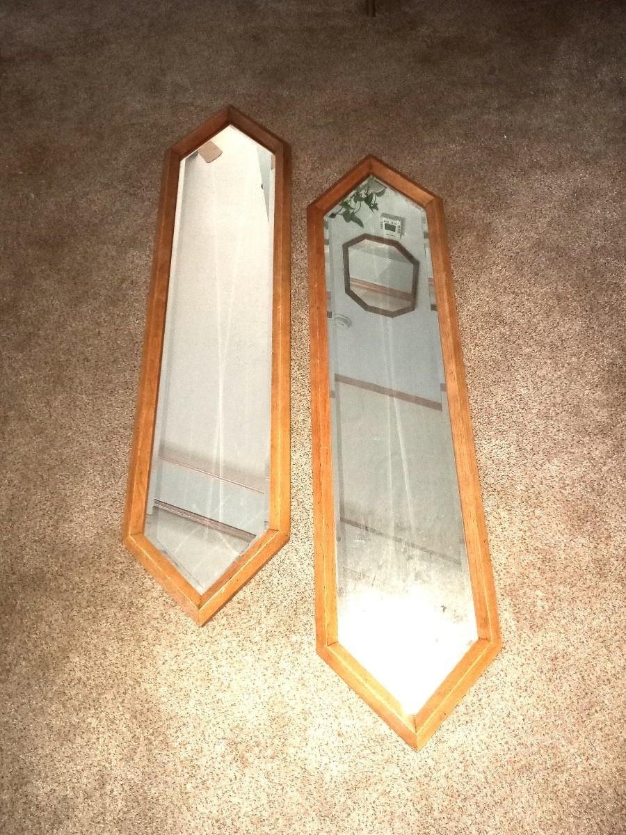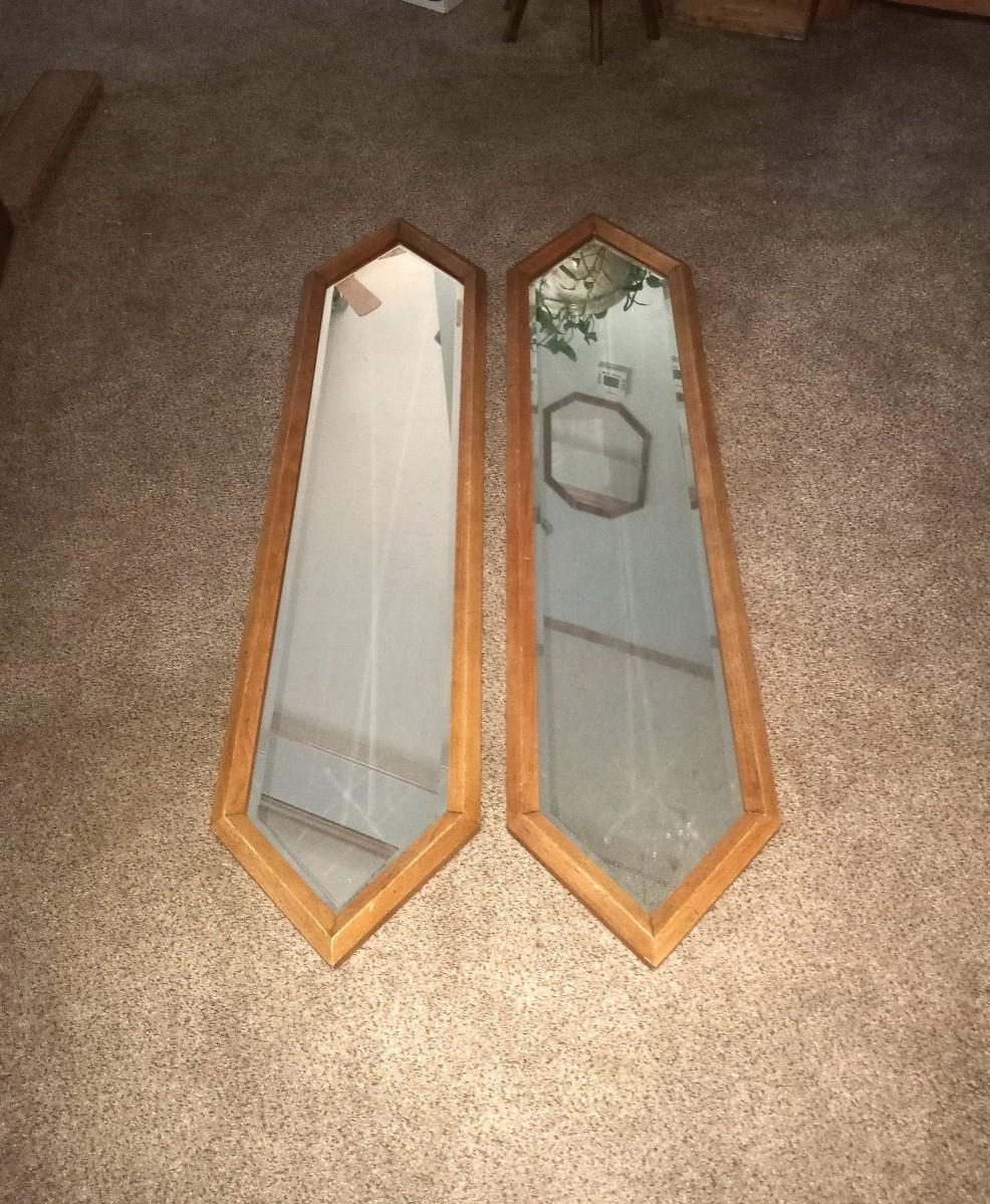 2 MID MODERN WOOD FRAMED MIRRORS 51X12"