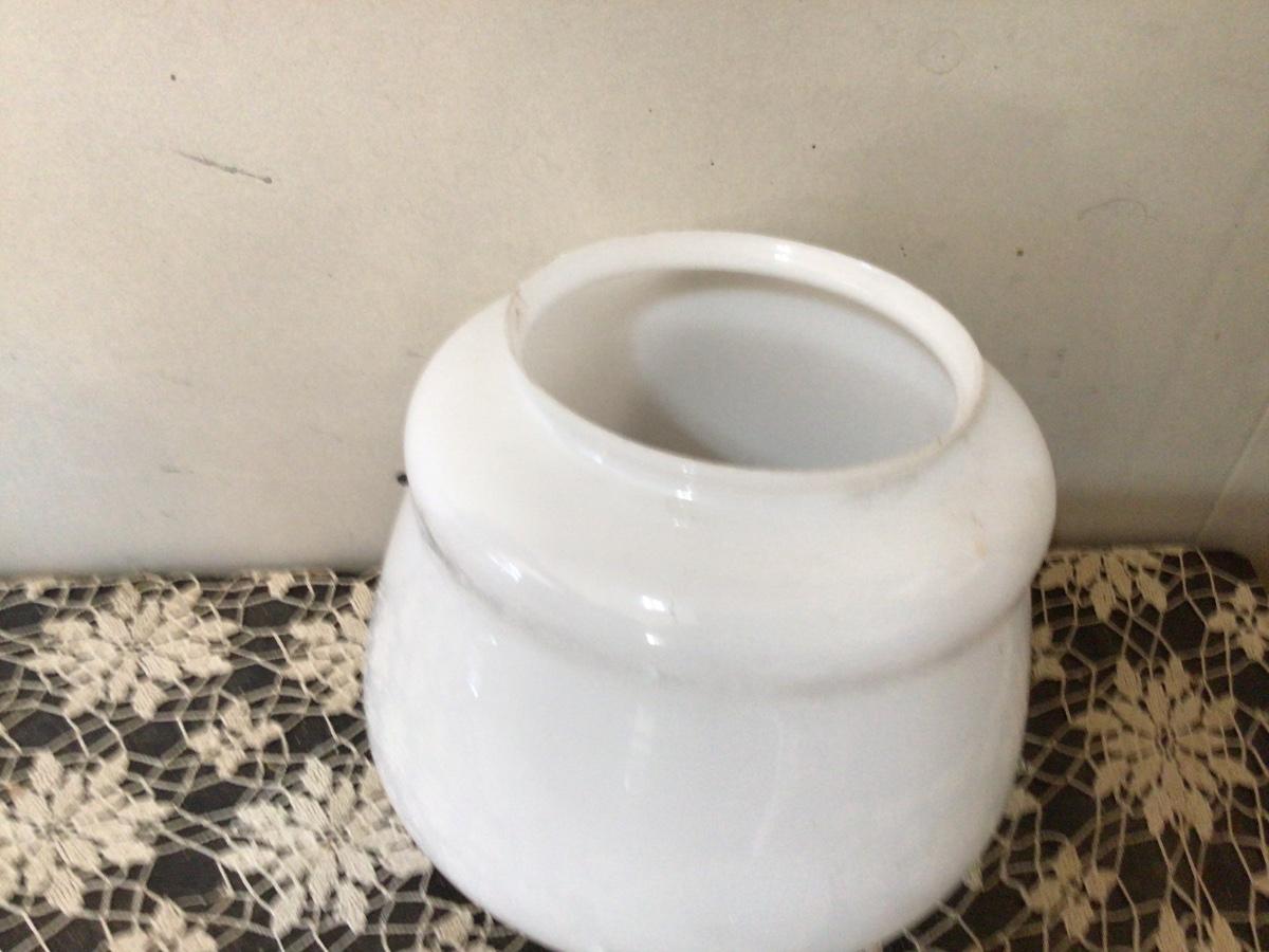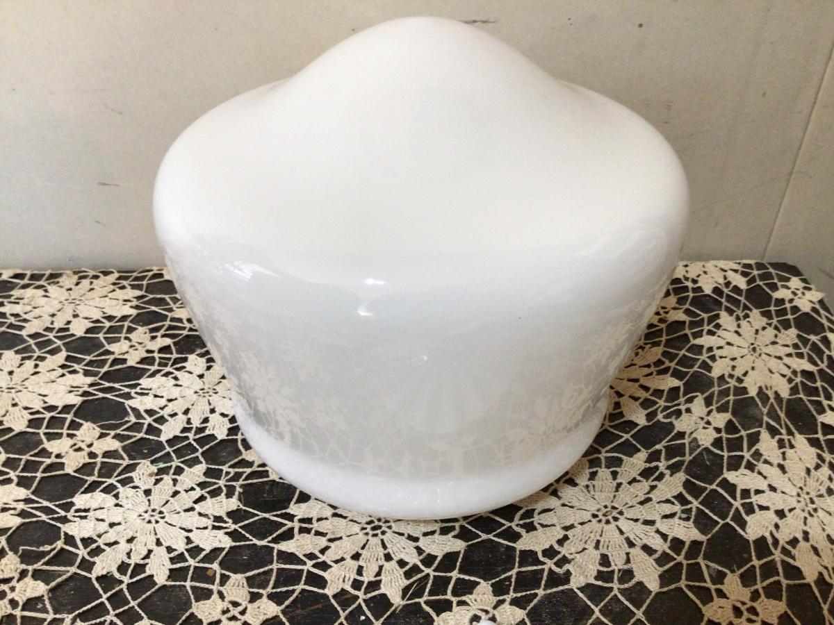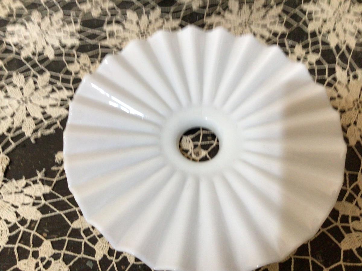 These are two great milk glass light shades one is large dom style the others is ruffled round fan shade. Both in good condition.