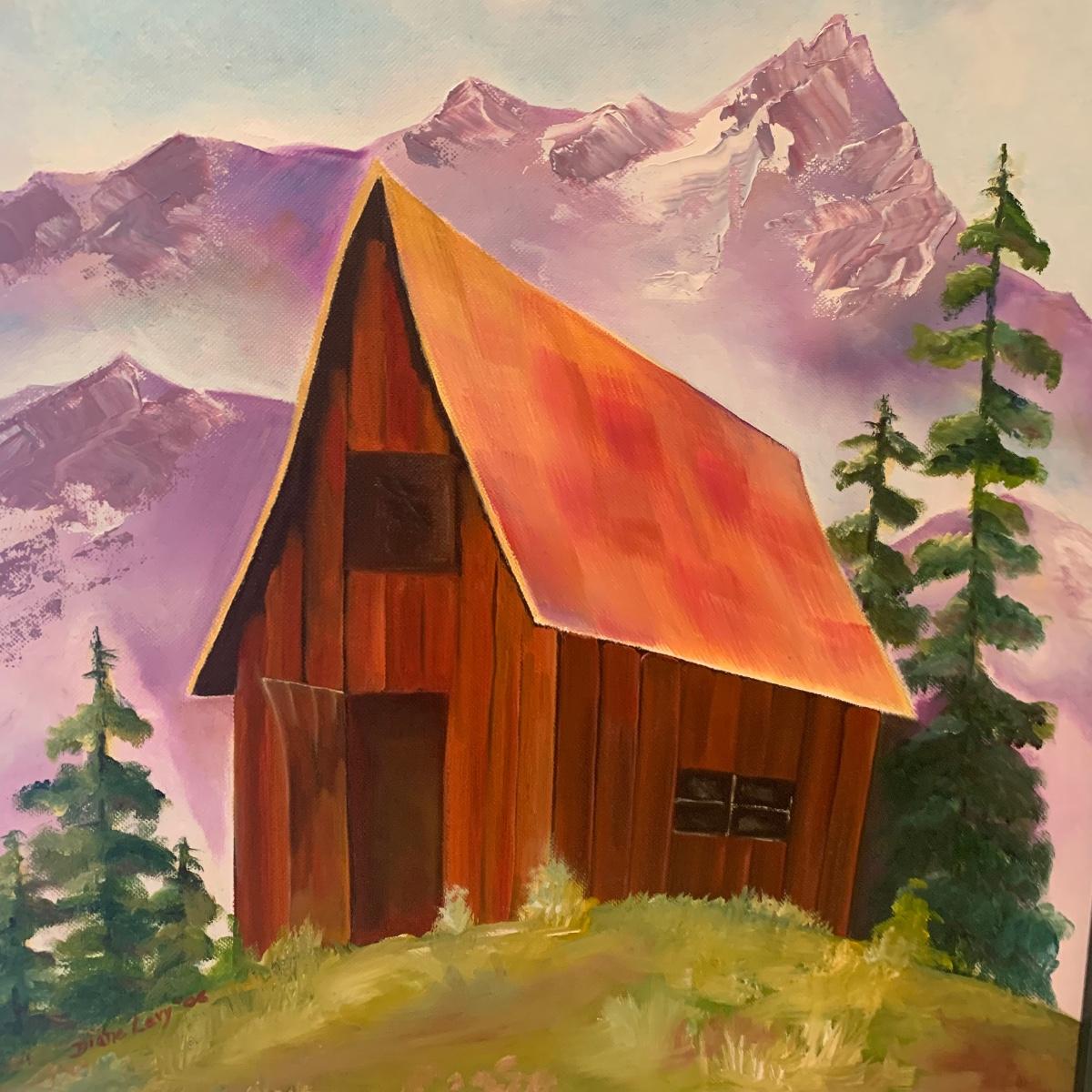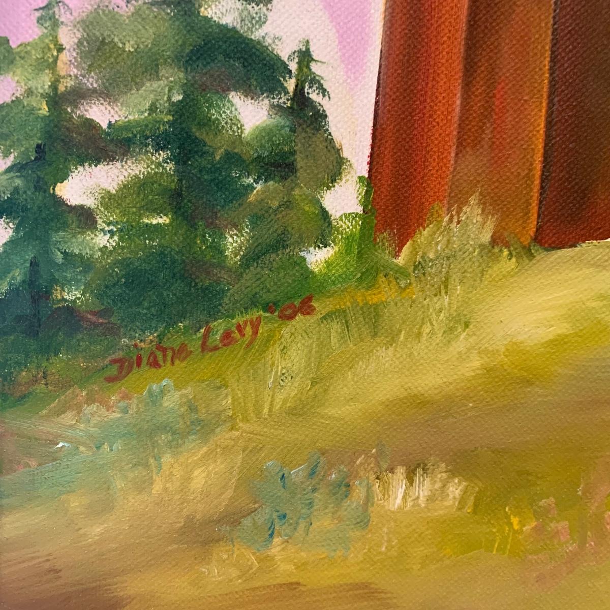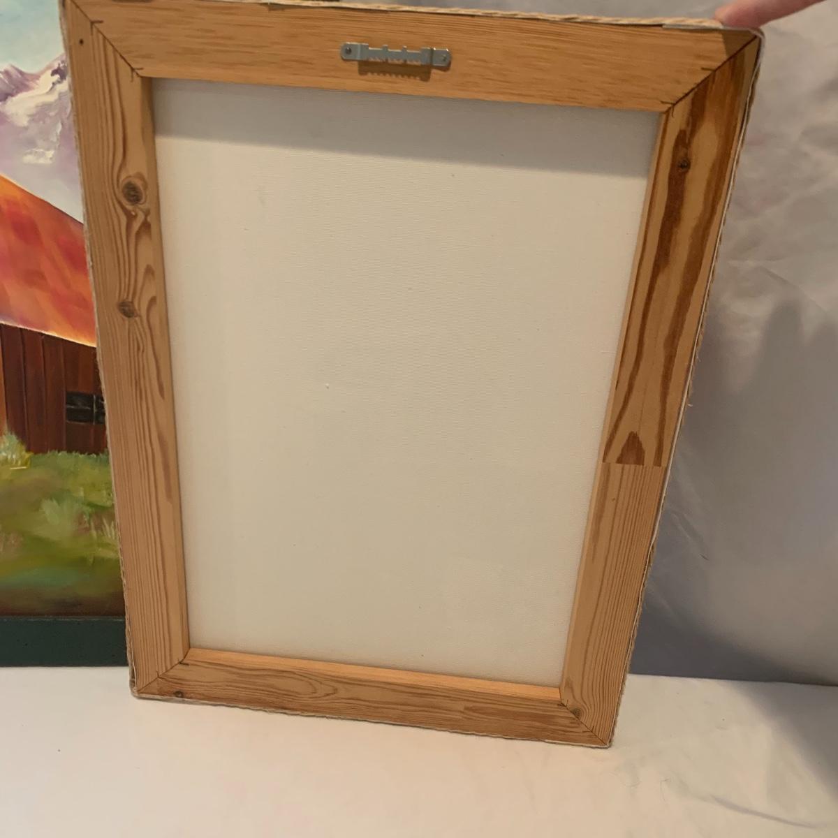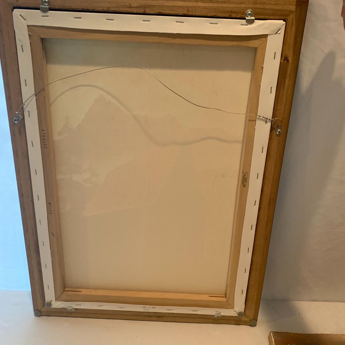 These two paintings by estate owner Diane Levy are acrylic on canvas. The larger one is framed and measures 18.5” x25” and smaller one has a ribbon around the canvas frame and measures 14” x19”. Shipping available, please note shipping art can be costly so you