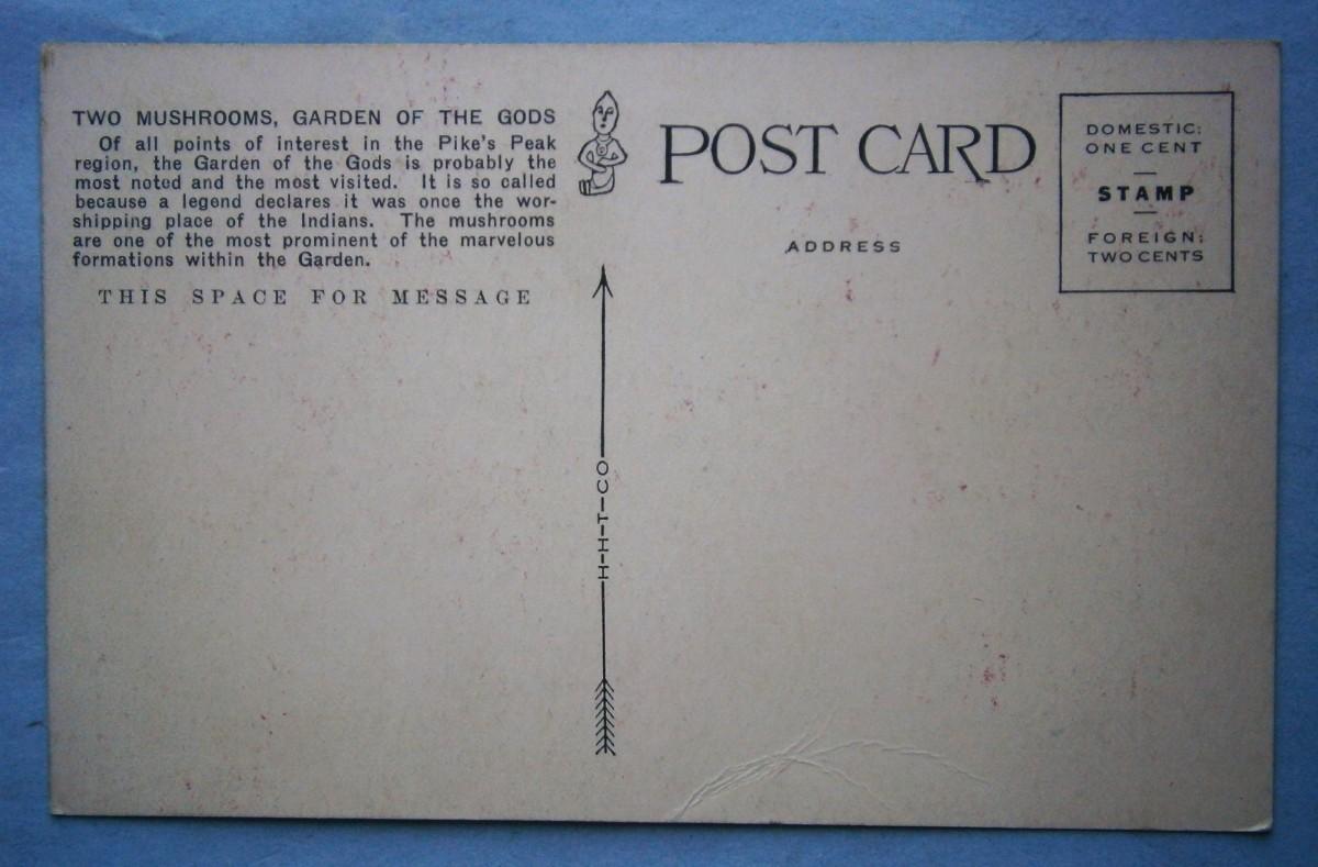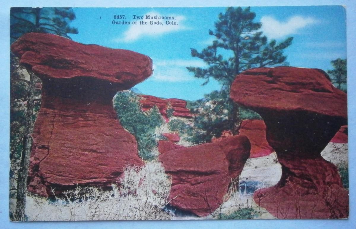 Two Mushrooms Garden Postcard, Colo. from th3 1920's, unposted, standard size.