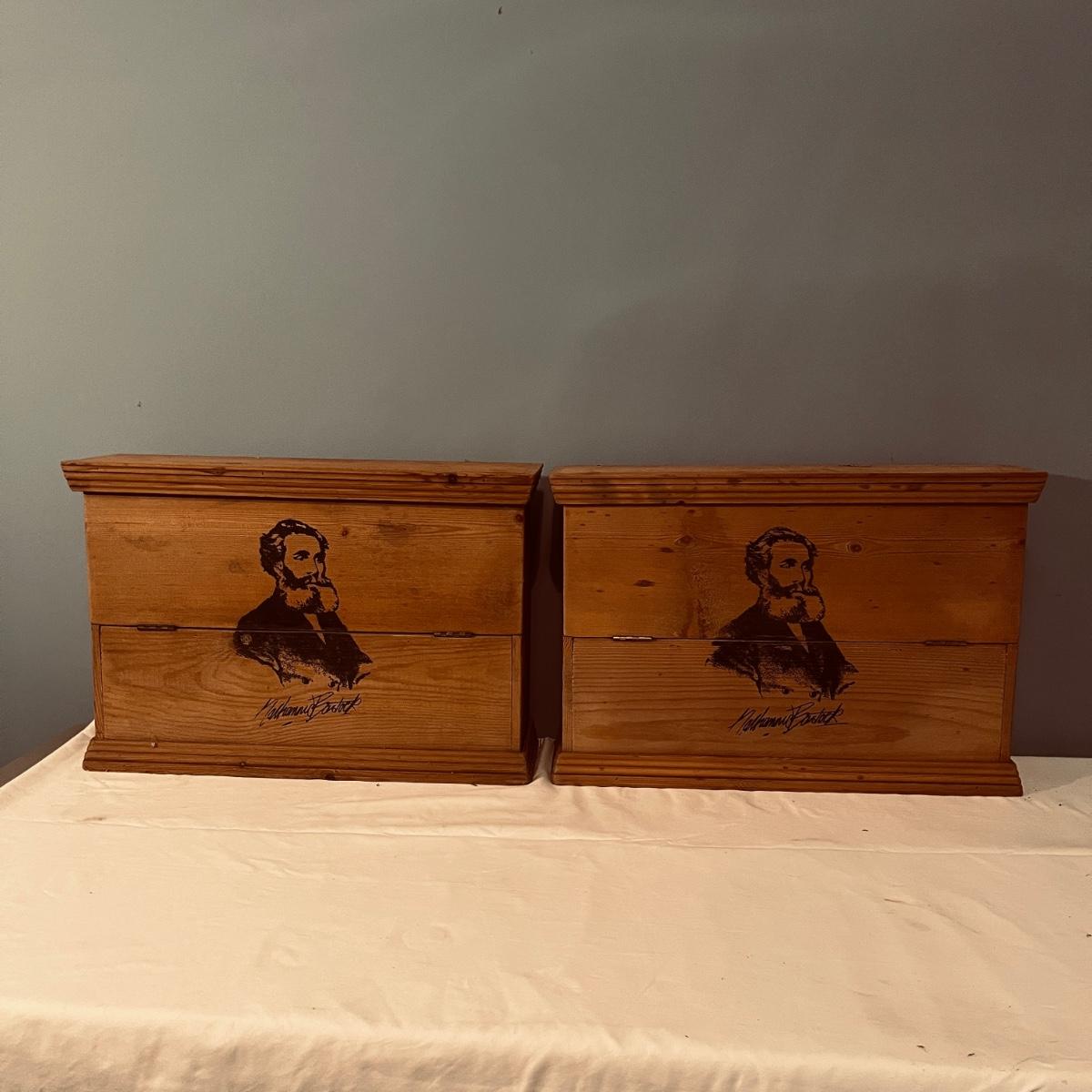 Two Nathannial Bostock Shuttle & Pirn Wooden Boxes (DR-MG)