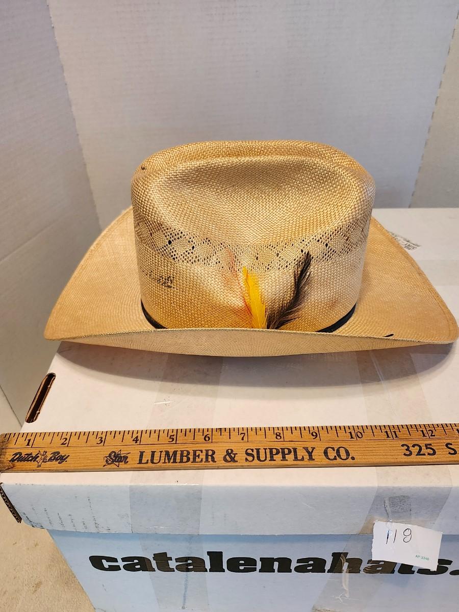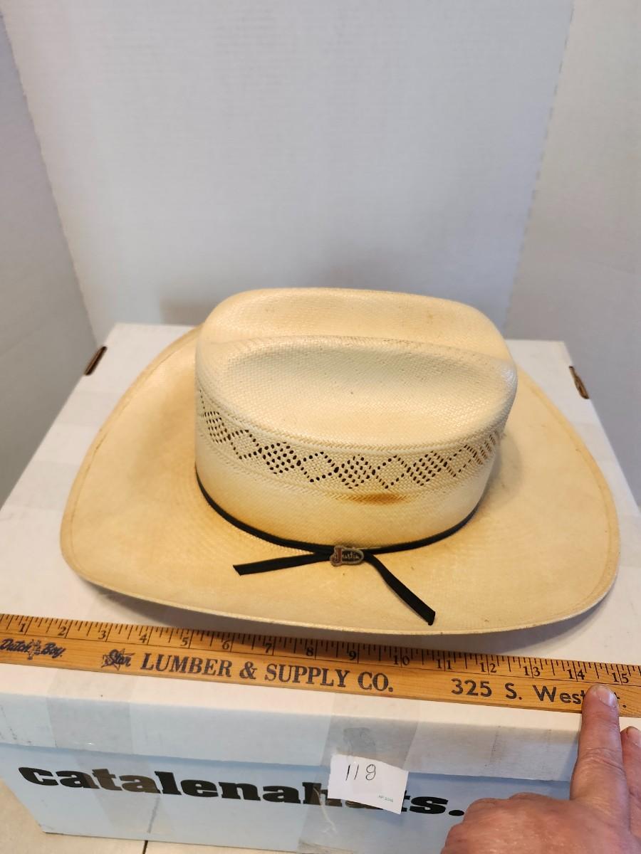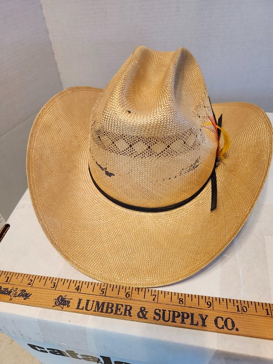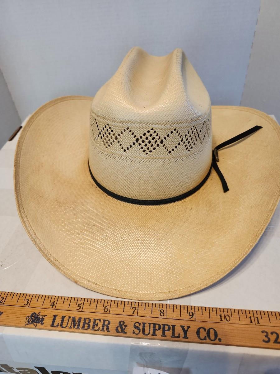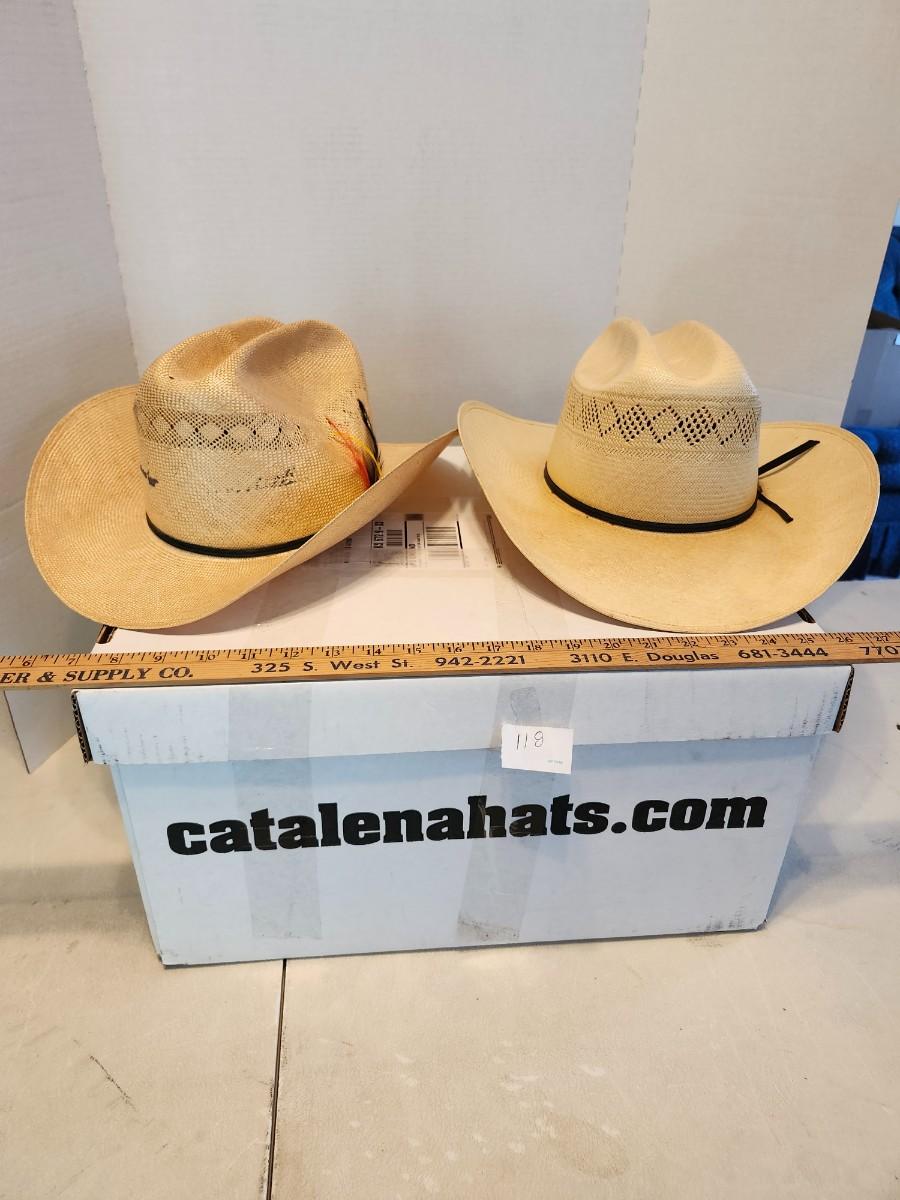 two natural colored straw cowboy hat, Stetson and Resistol Size 7 1/3 with box