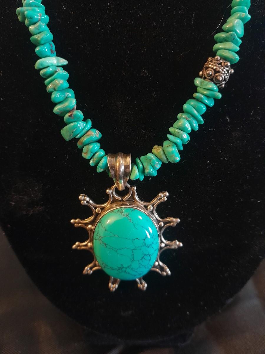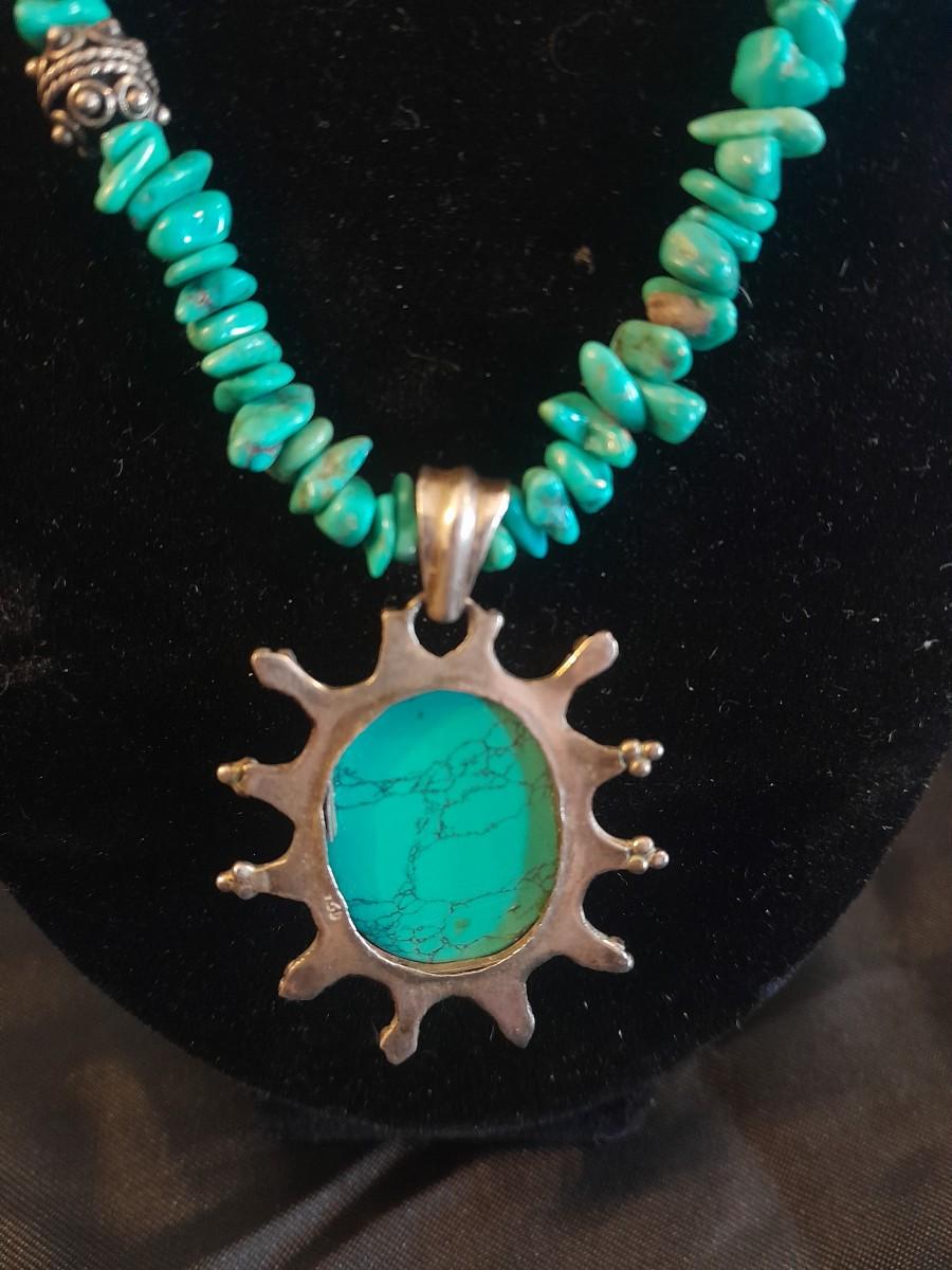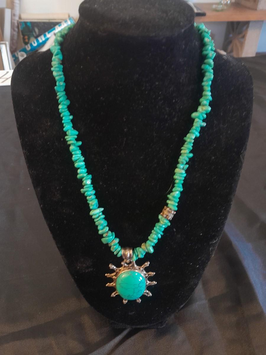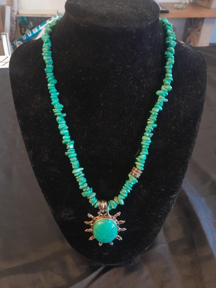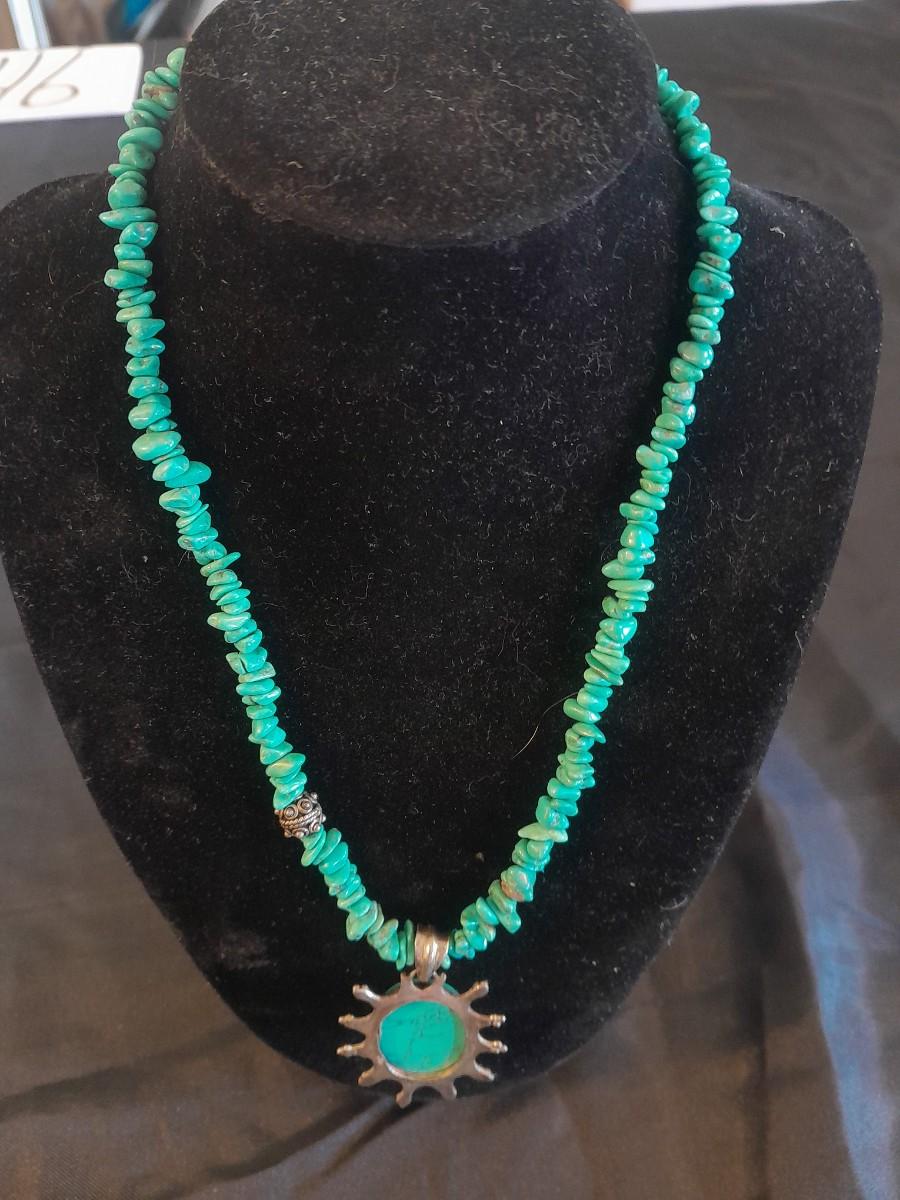 TWO NECKLACES TURQUOISE AND BLING CROSS