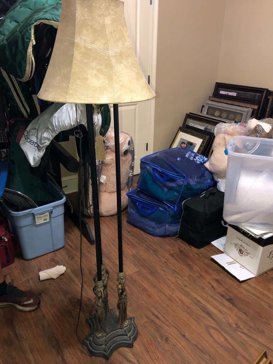 These two floor lamps are new and have golden goddesses at the base. They measure 62”