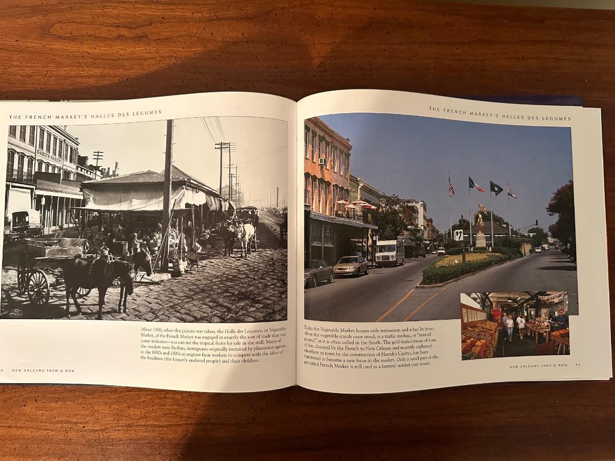 New Orleans Then and Now book with comparison of pictures and information of the time period.