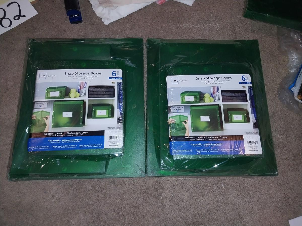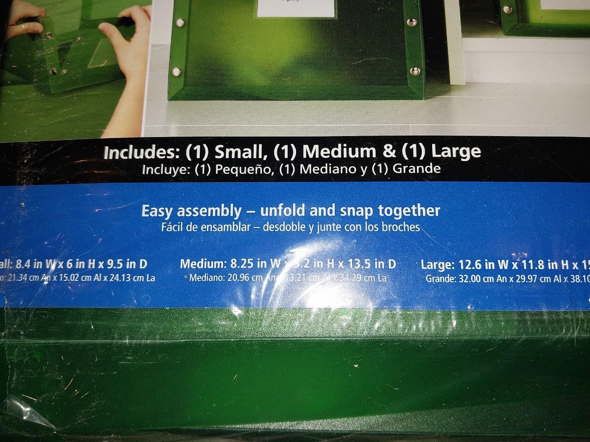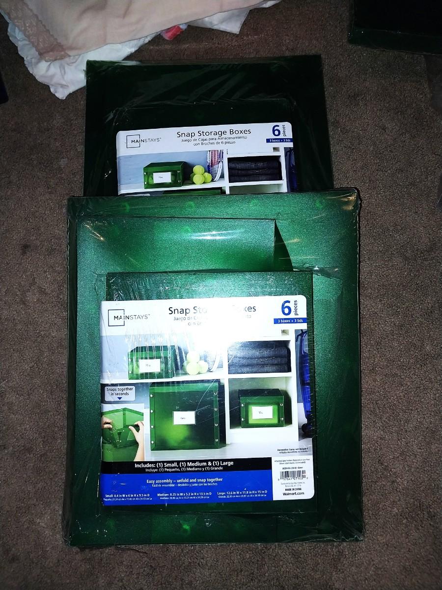 TWO NEW PACKAGES WITH THREE BOXES & LIDS IN EACH COLLAPSABLE BOXES