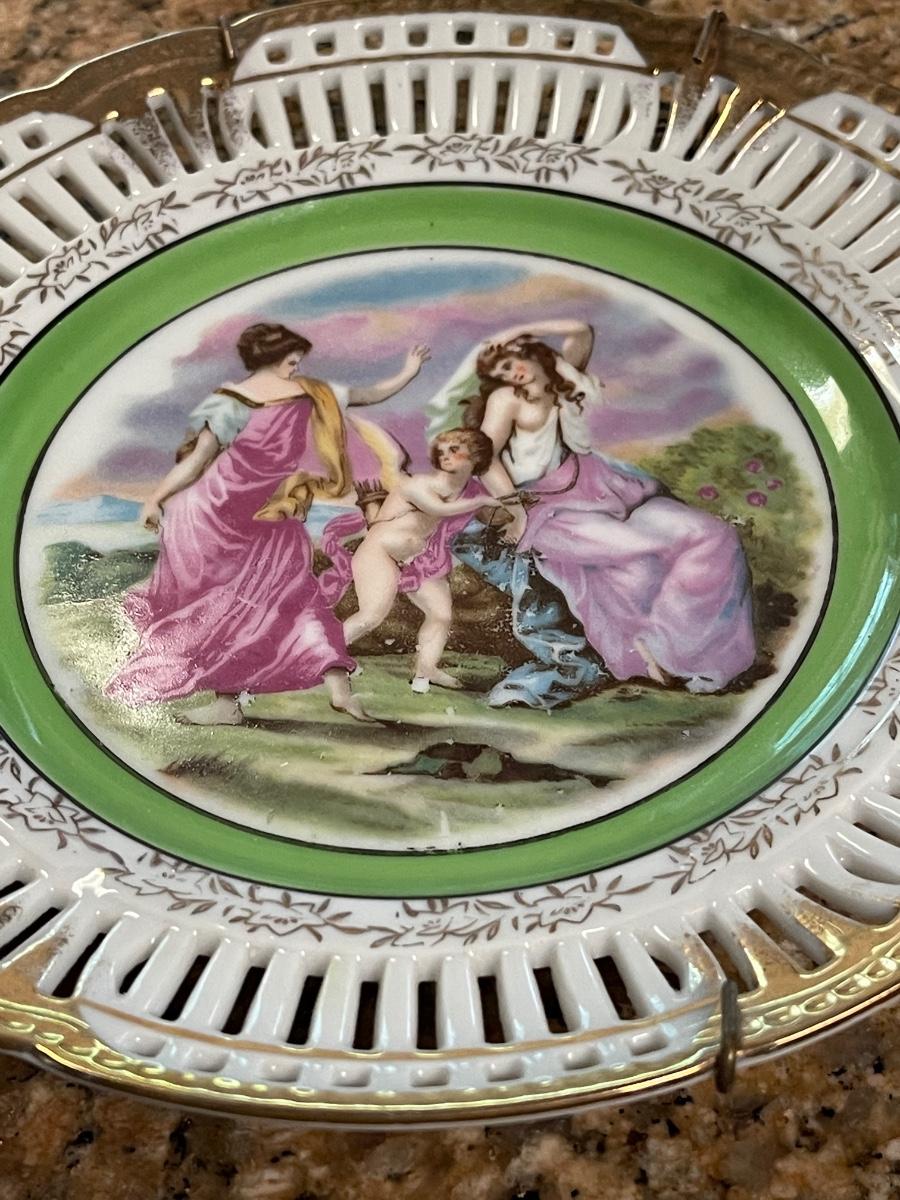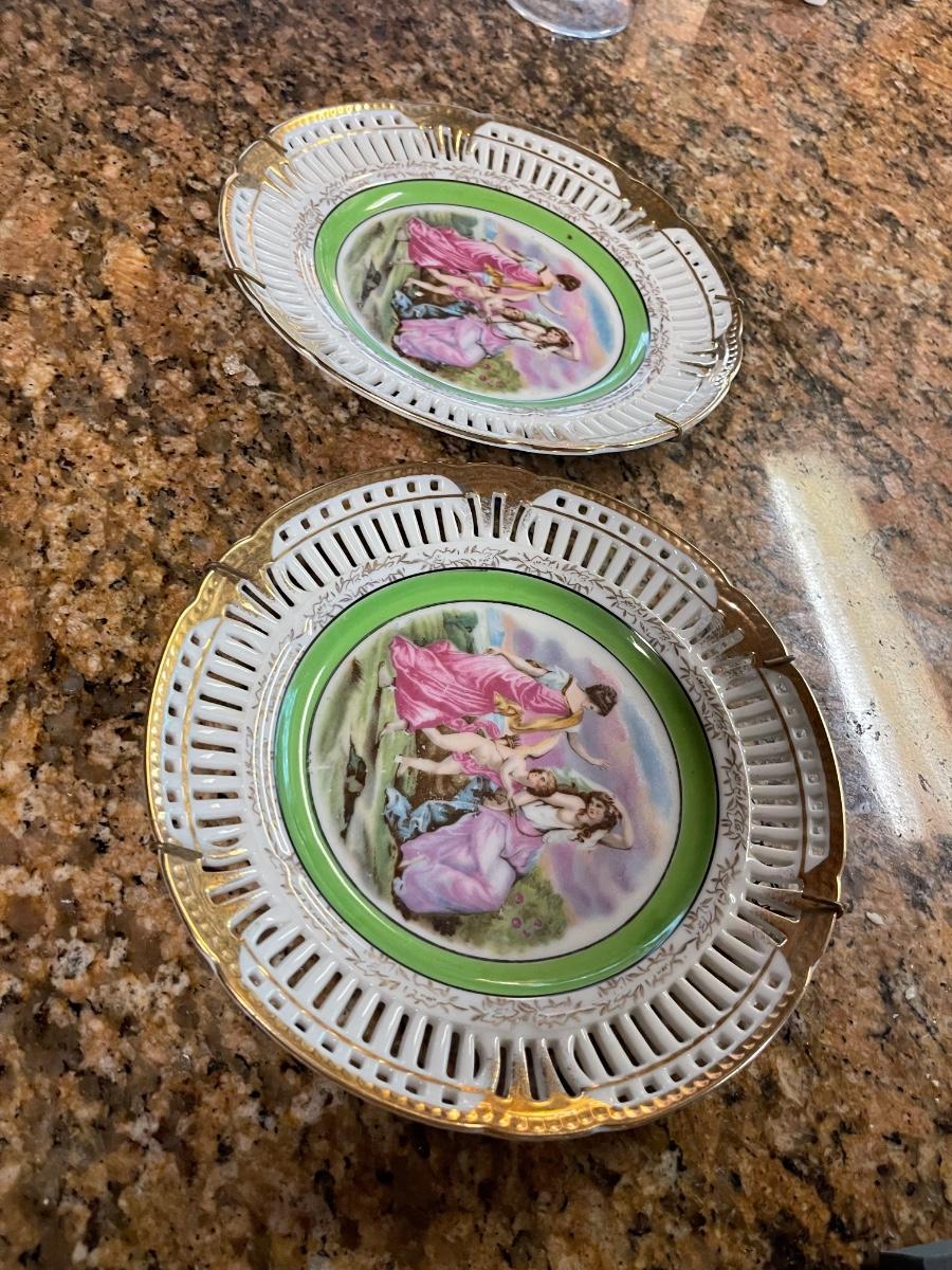 Two Occupied Japan Neoclassical Reticulated Plates