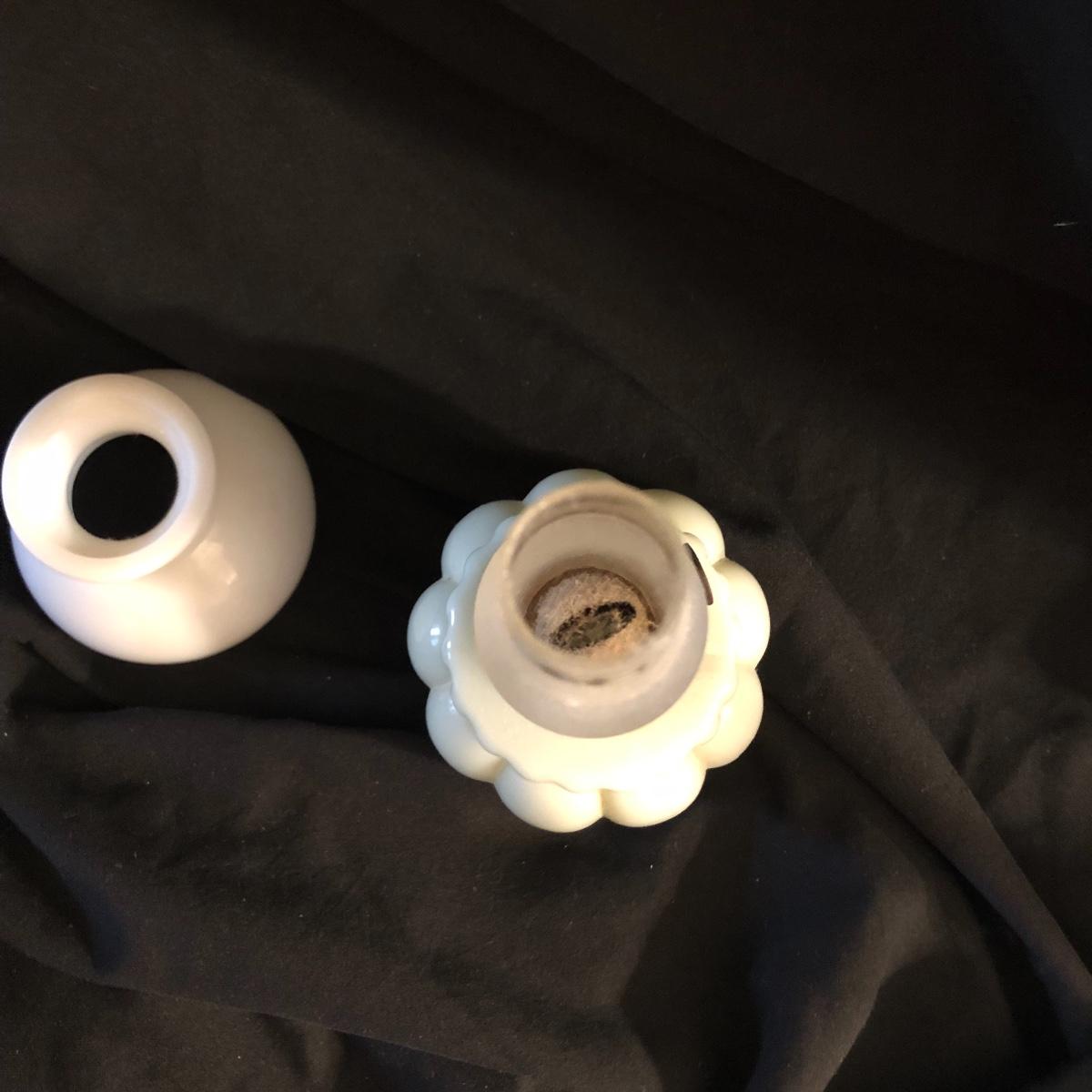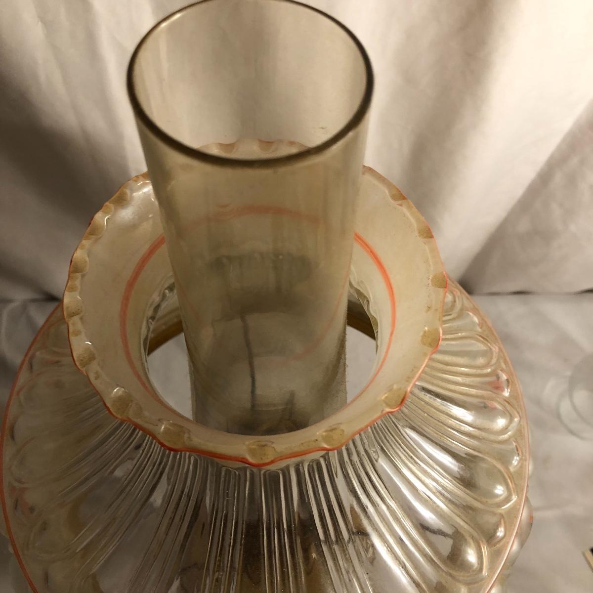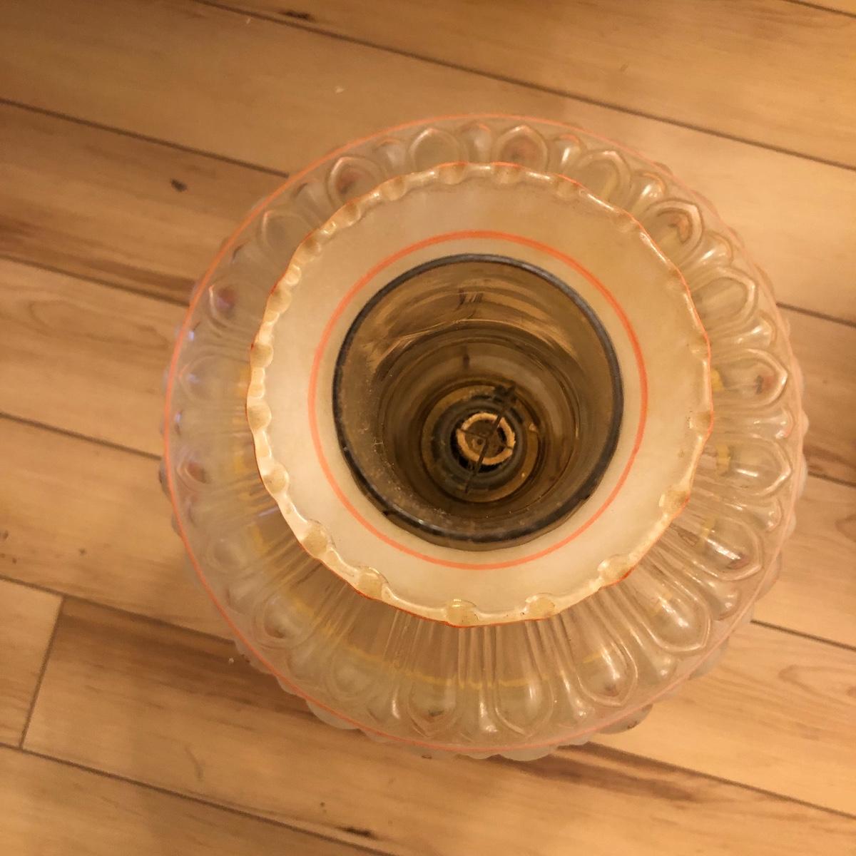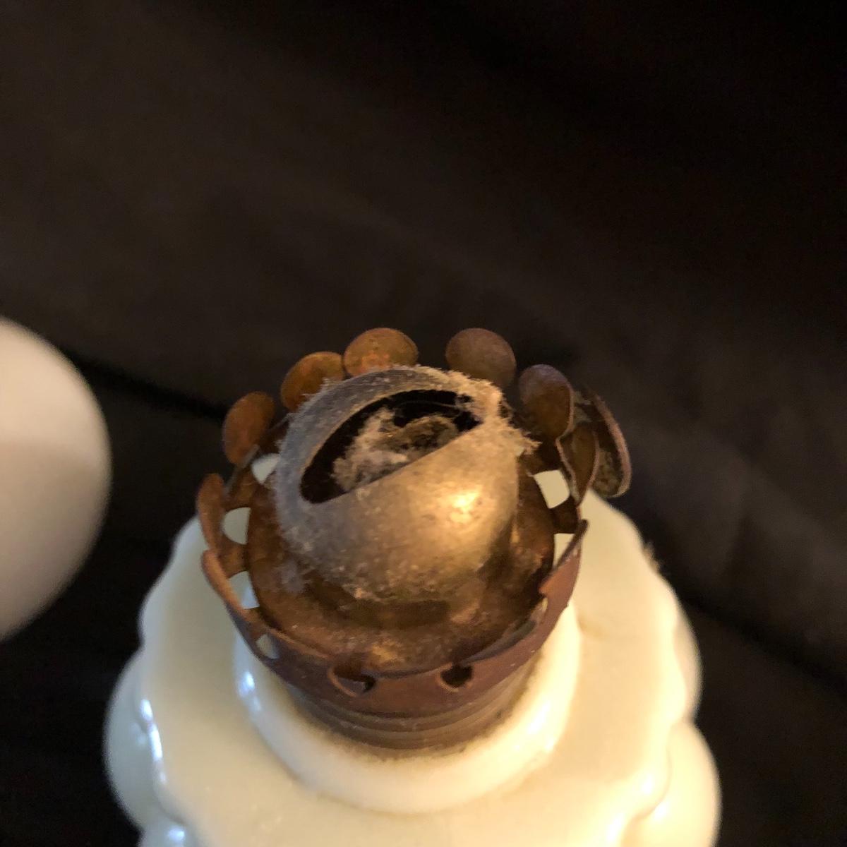 This lot includes two oil lamps, three glass shades, wicks, one book and a plastic bag including a burner and mantle. The diameter of the large oil lamp is about 11” and 25” tall. The small white and green oil lamp is 8” tall. The tallest glass shade is 10” tall and 2.5” wide at the base. The widest shade is 8.5” tall and 3.5” wide at the base. Shipping Available.