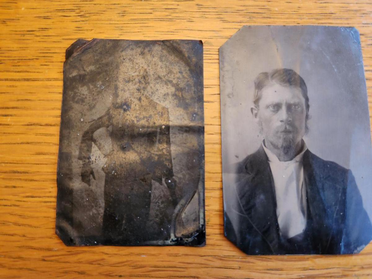 This auction lot is for Two Old Tintypes. These lost souls were found in the bottom drawer of an old dresser just waiting for a new home. The dude looks like he has a story and needs a friend, but we don't think the "soldier" in the other photo is it. Great for many purposes.