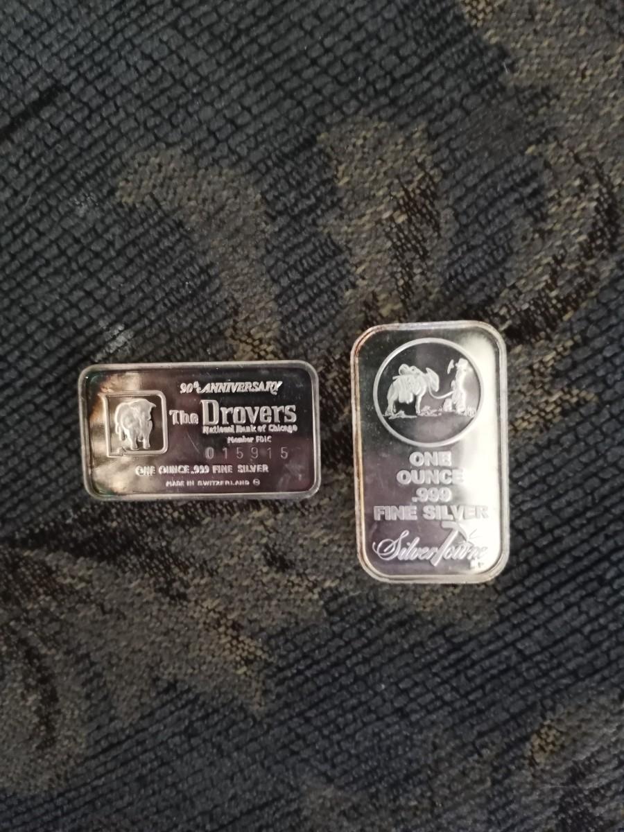 TWO ONE TROY OUNCE EACH FINE SILVER "THE DOVERS" & "SILVER TOWNE"
