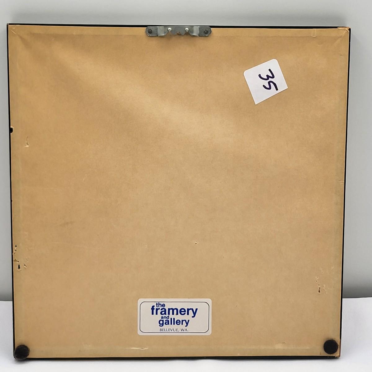 Framed, they measure 9" x 9" (4" x 4") and 9.5" x 8.5" (2" x 3"). They are both artist signed. Probably could easily be reframed in your personal color & style choosing.