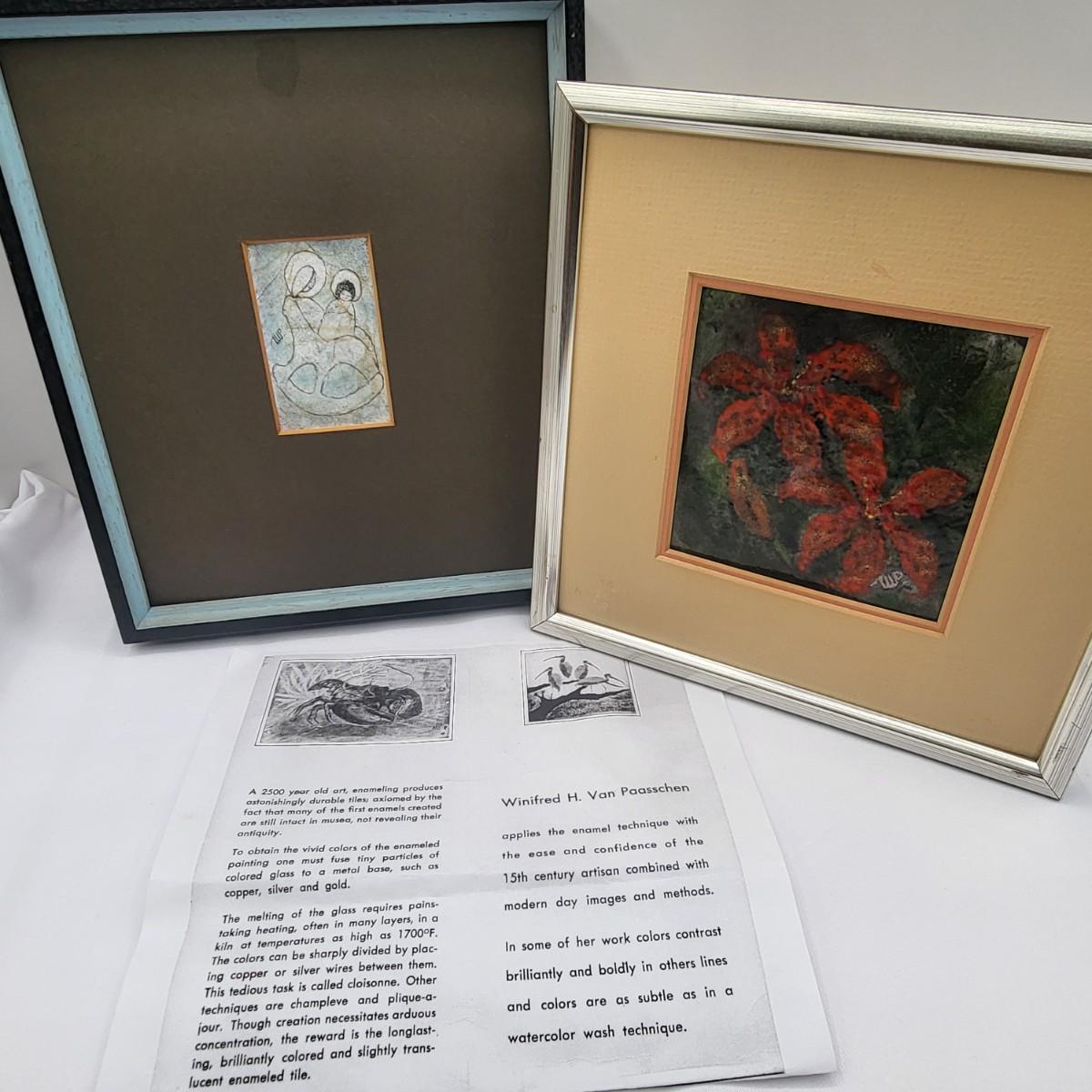 Two Original Framed Enamel Art Winifred H. Van Paasschen, Mercer Island