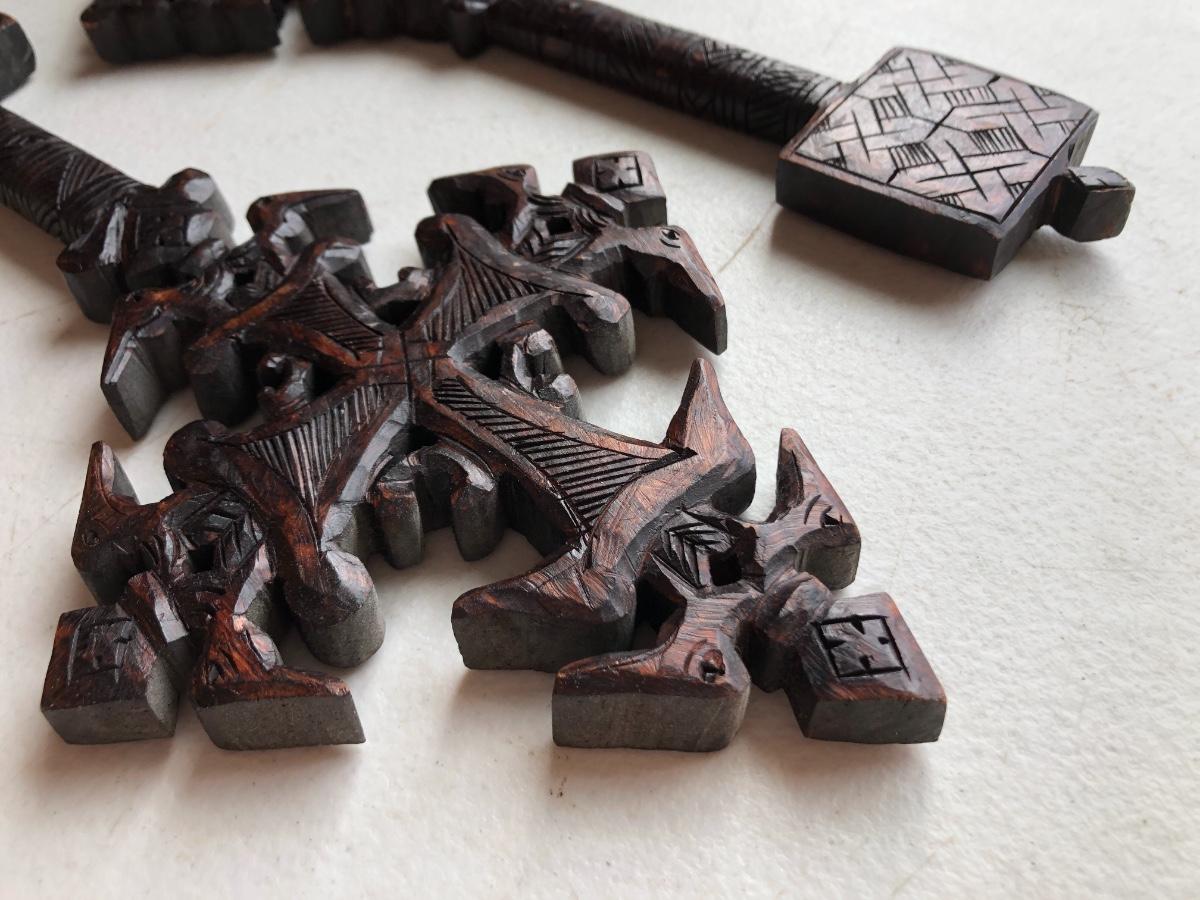 Two Ornate Wooden Keys - Decor