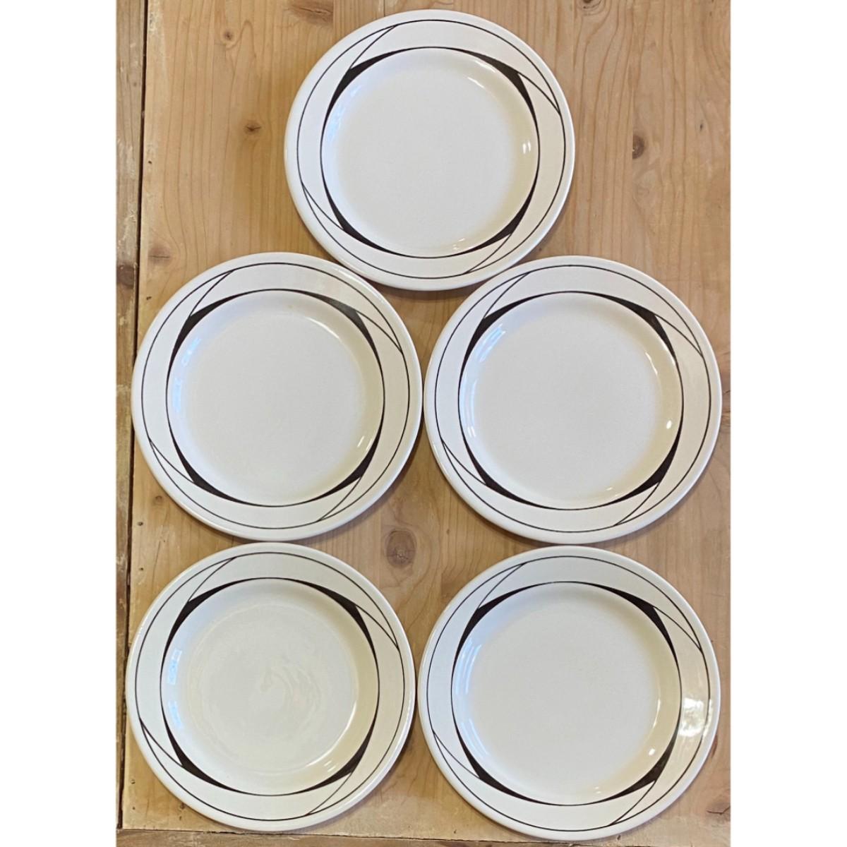 You get five plates that are in good condition with minor surface wear. They measure approximately 7 3/8" in diameter. Please see all pictures. Thank you for looking. As a reminder, if this is a lot, we do not break up lots. Also, all items are prepacked, so each item is sent individually. Any item that qualifies for media mail and weighs over one pound will be shipped via media mail. Otherwise, the item will be shipped USPS ground advantage, or UPS ground. Shipping for this item is $12.00. Items ship within two days after payment is received. Item SKU is OTH3031.