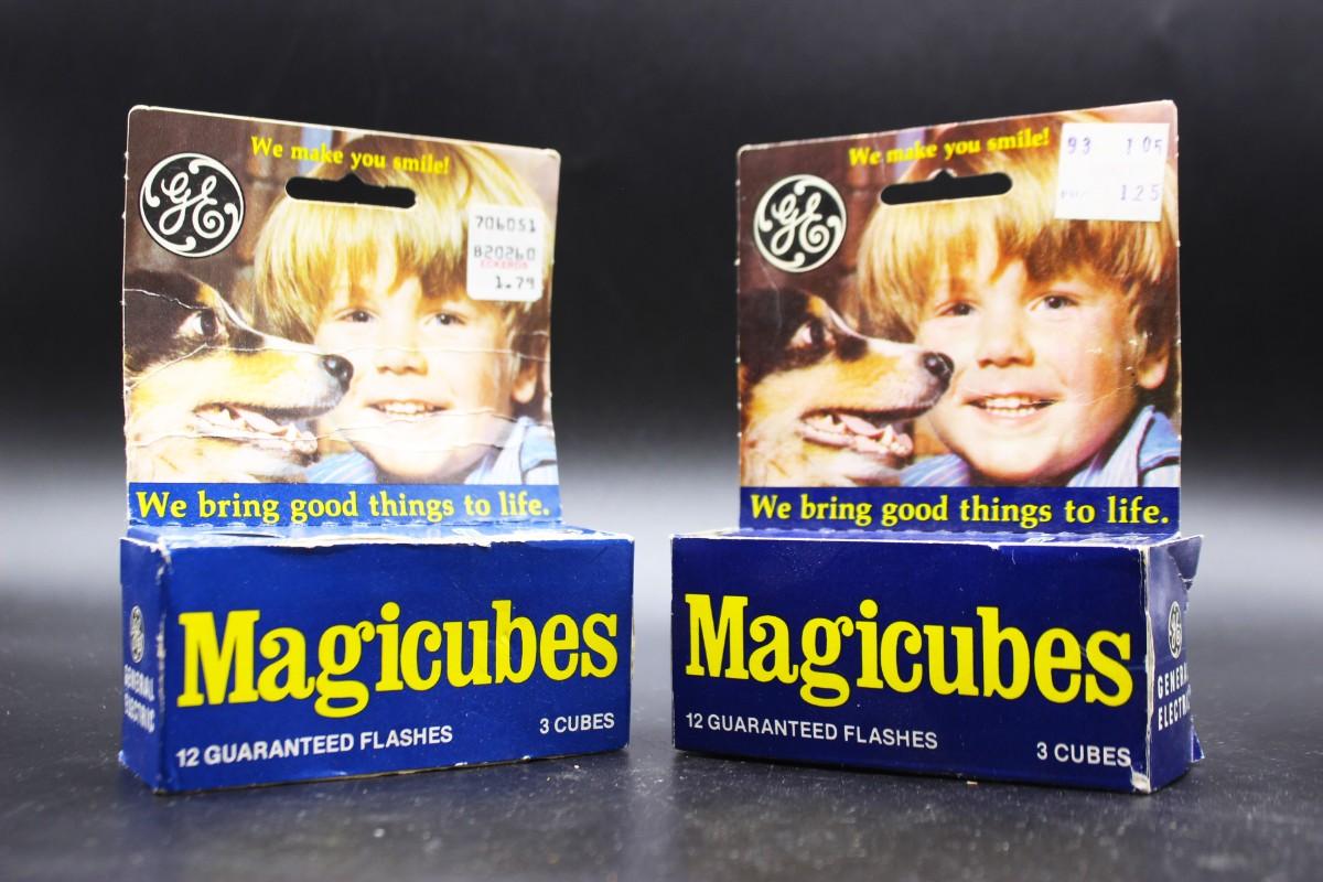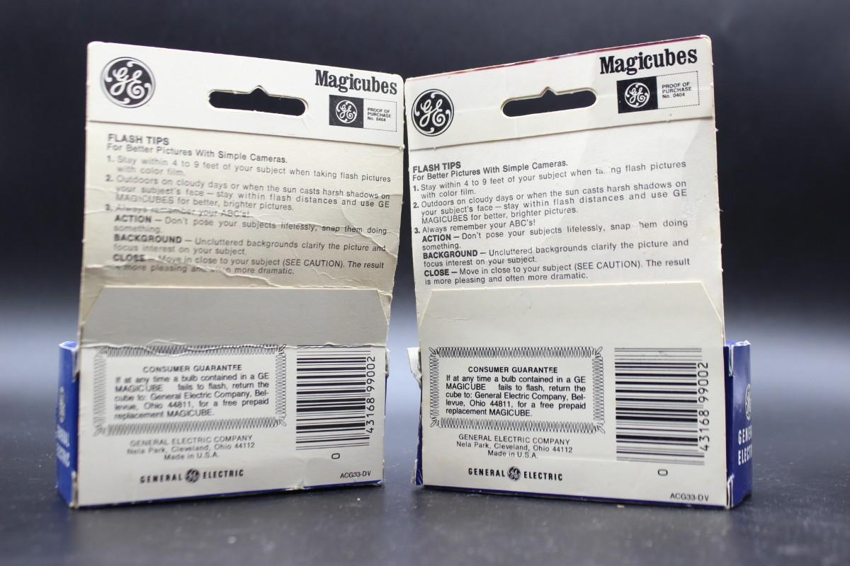 Two packages of vintage GE Magicubes flash cubes. Boxes have a little wear but they are unused.