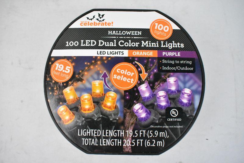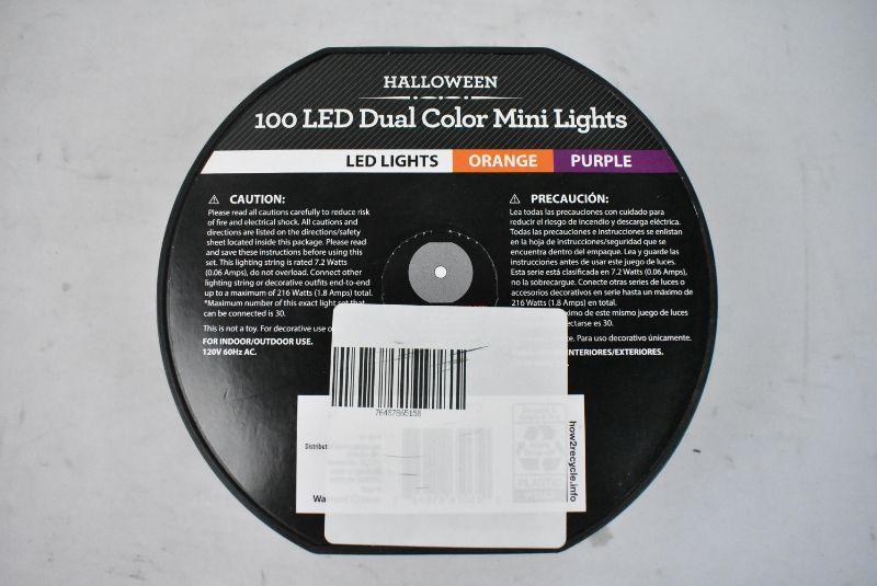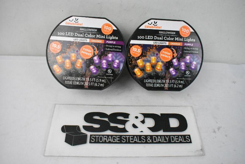 Two Packs of 100 LED Dual Color Mini Lights, Orange and Purple - New