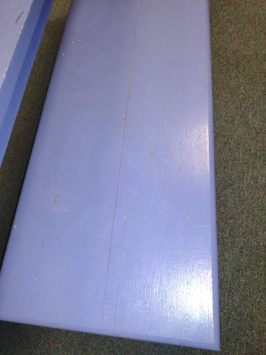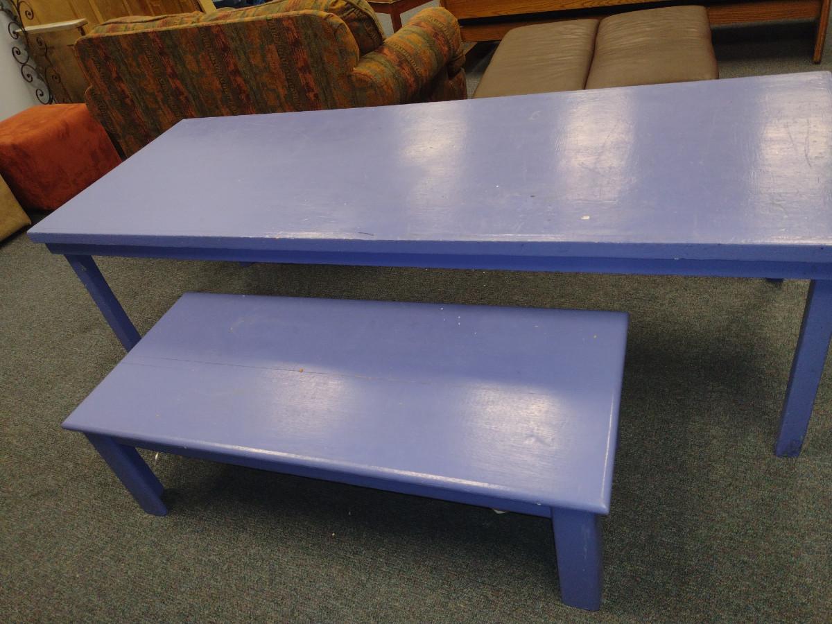 Two Painted Wood Tables. 80" x 30" x 24" tall. 48" x 20" x 15" tall.
