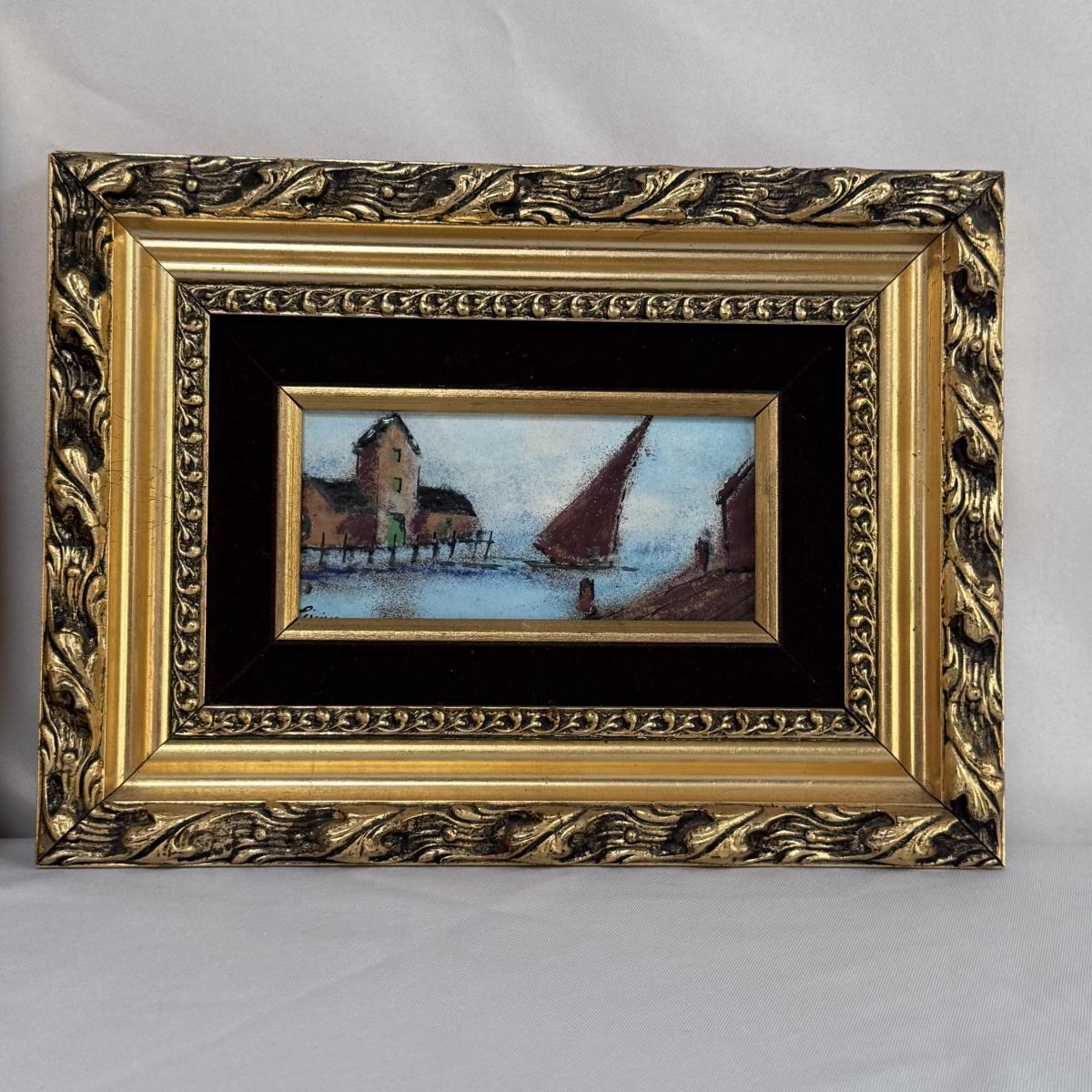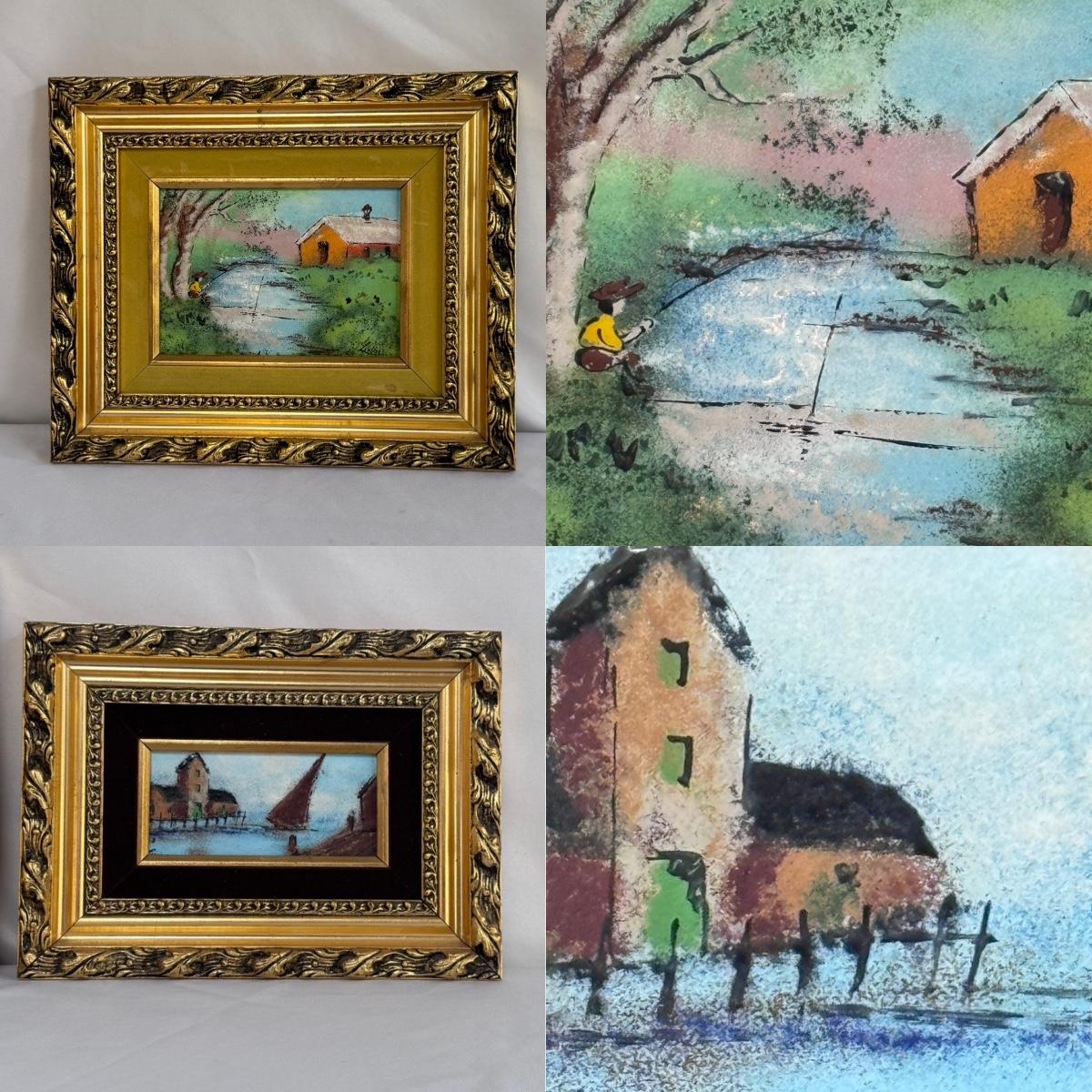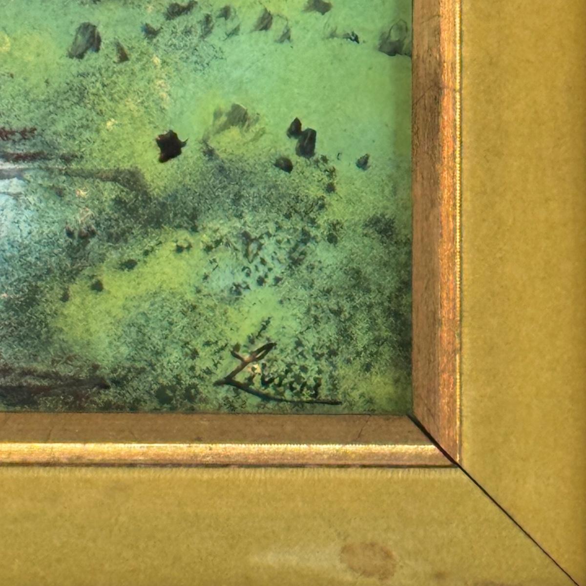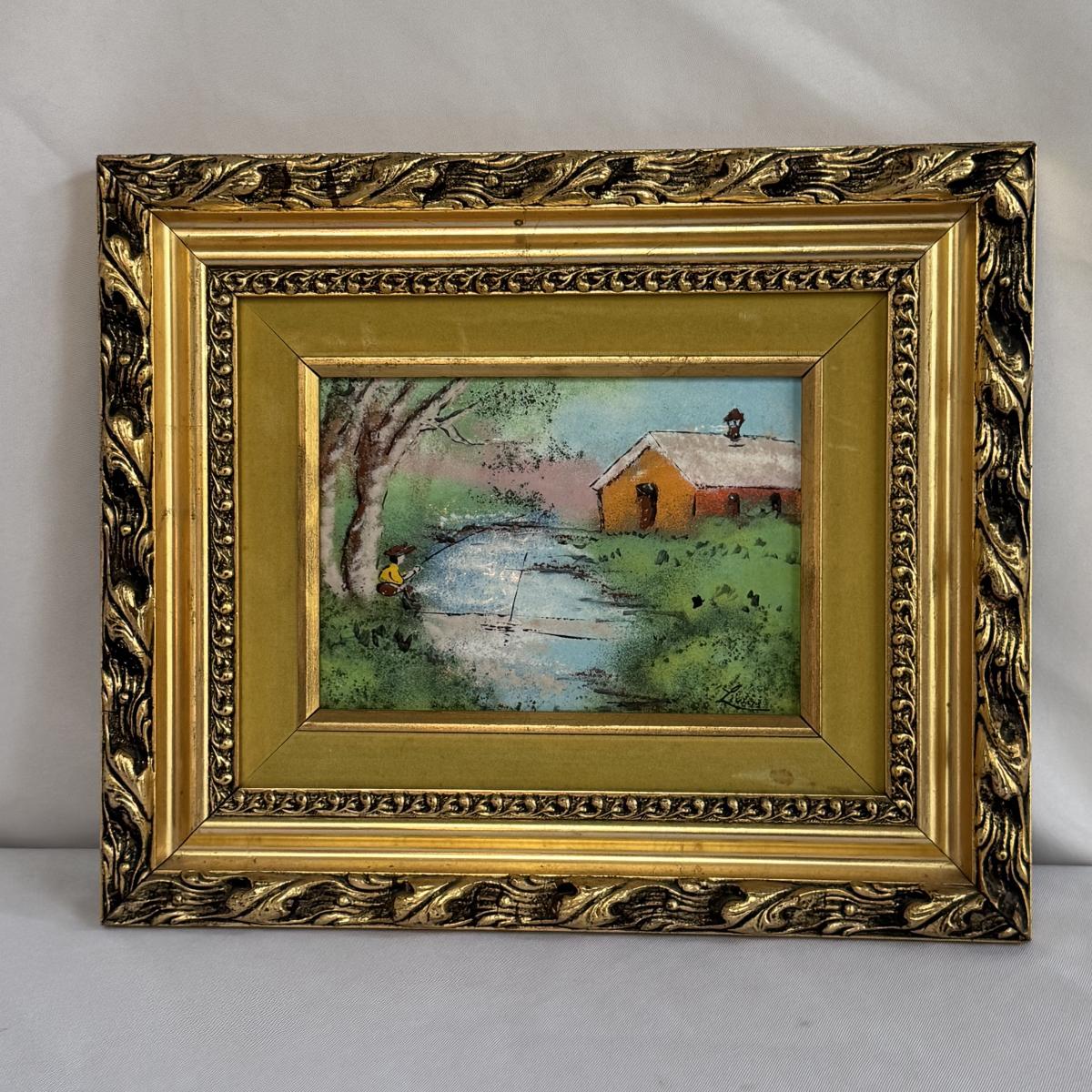 This lot includes two sweet paintings depicting water scenes. Both are framed in unique, wooden gold-colored frames with a double matting. They both appear to be signed by the same artist. The larger frame measures 12” x 10”H. Shipping available.