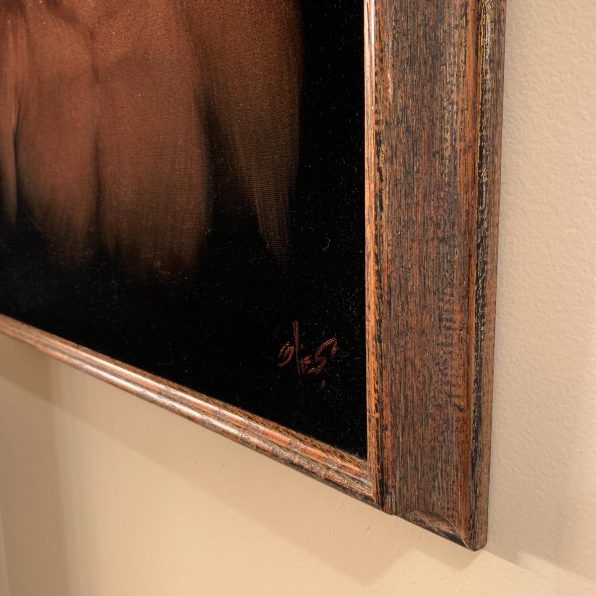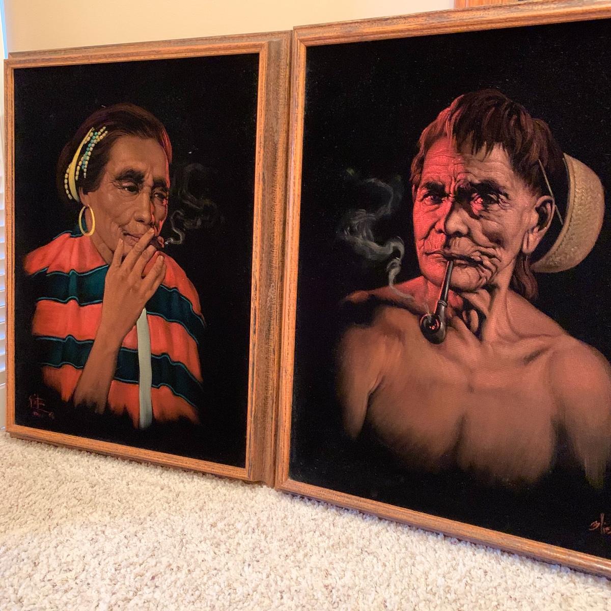 This lot is two paintings of humans on black velvet. They are both original art, not prints. They are both signed by the artists. They have matching wood frames which both have wires attached to the back for wall hanging. The measurement of each frame is 20.5” x 26.5”. Shipping available, please call UPS at 828-252-6930 with dimensions for a shipping quote.