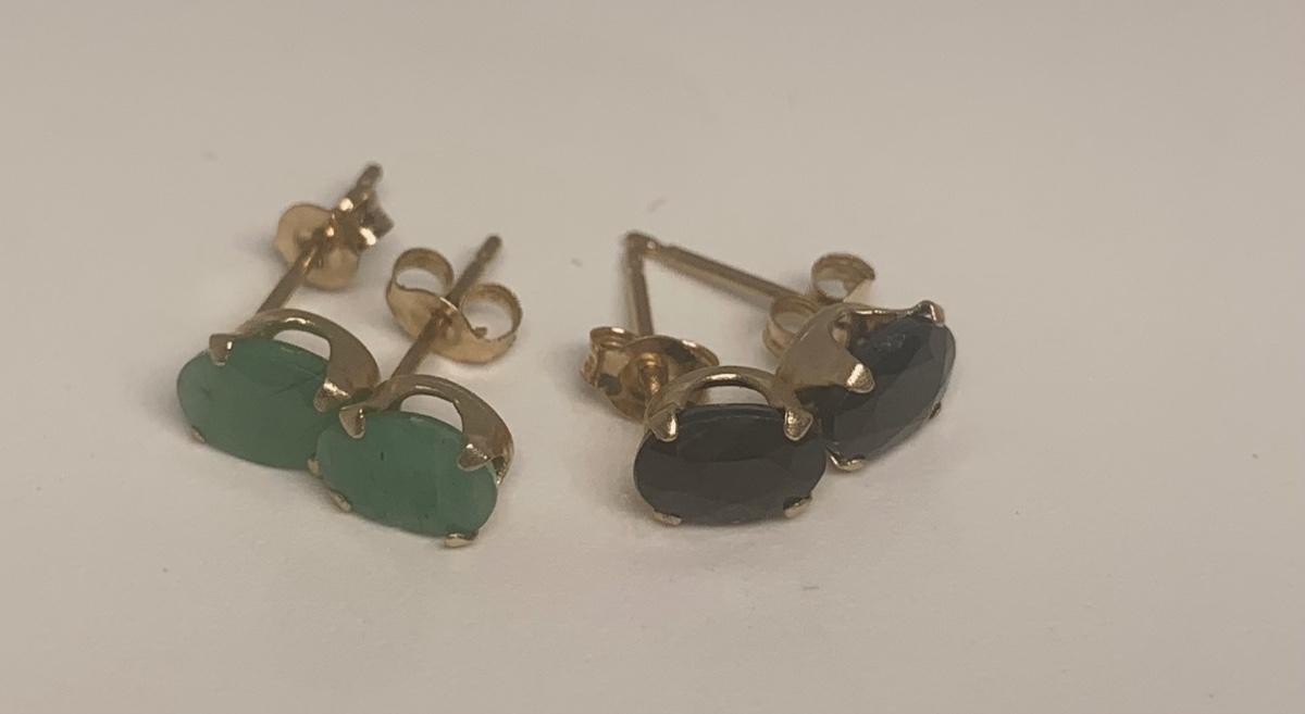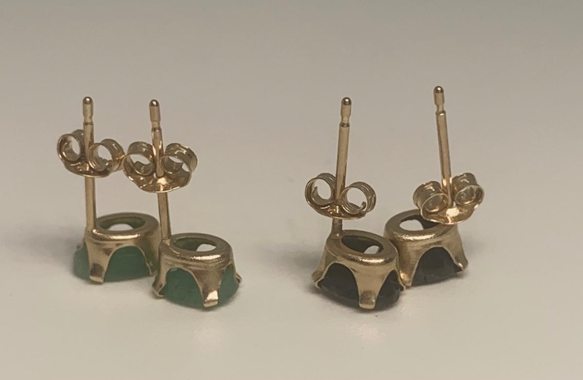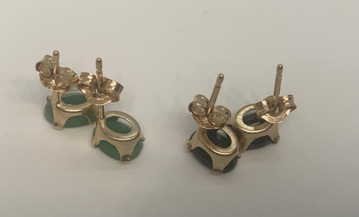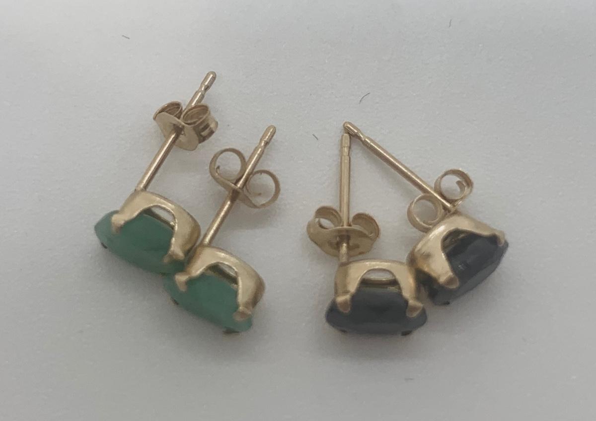 Two pair 14 K jade post earrings black and green jade 1.1 g