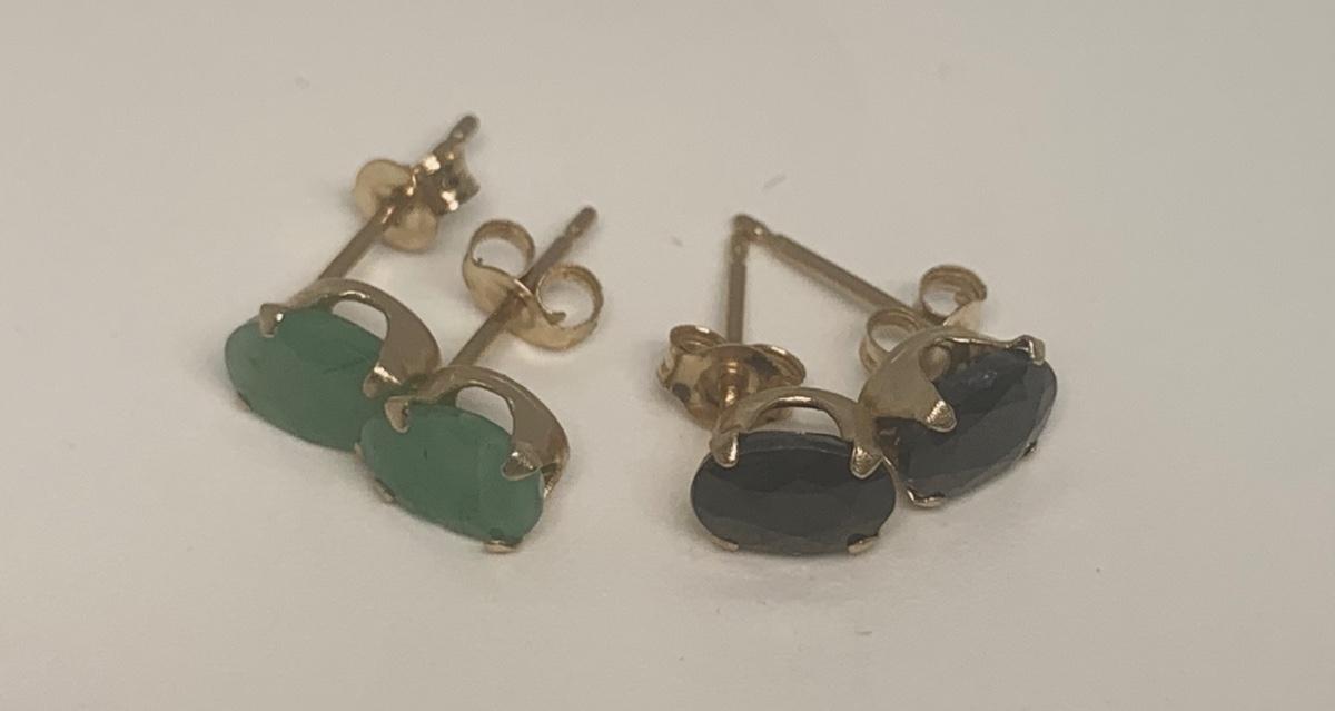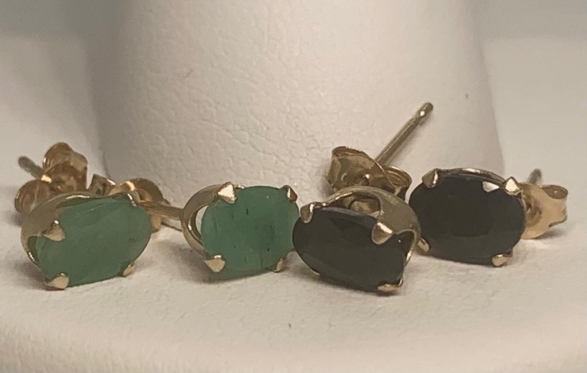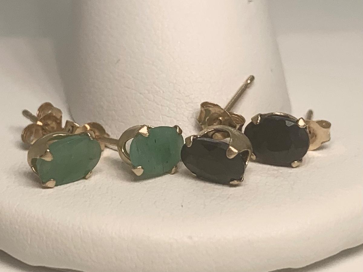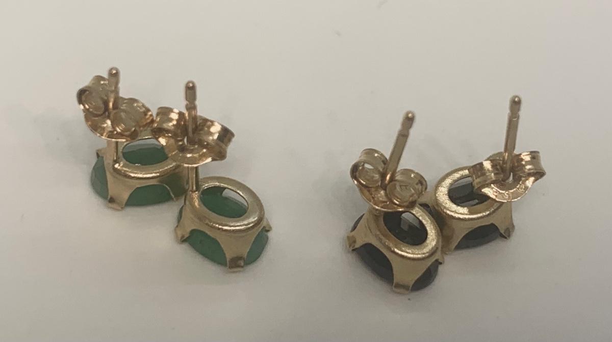 Two pair 14 K jade post earrings black and green jade 1.1 g