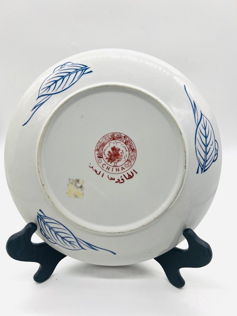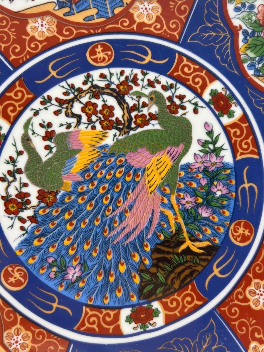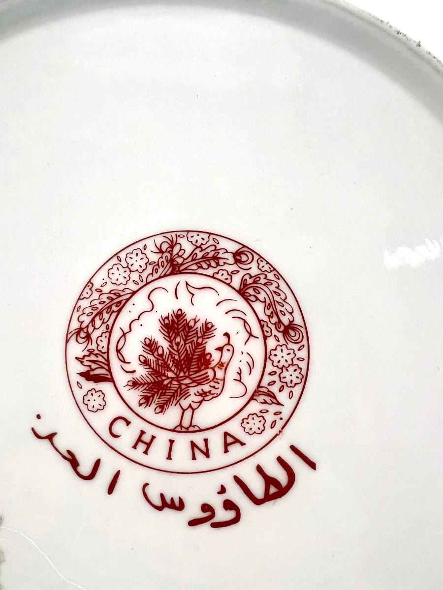 Two Moroccan Taous Plates With stands. Beautiful peacock center. Measures 12 inches round.