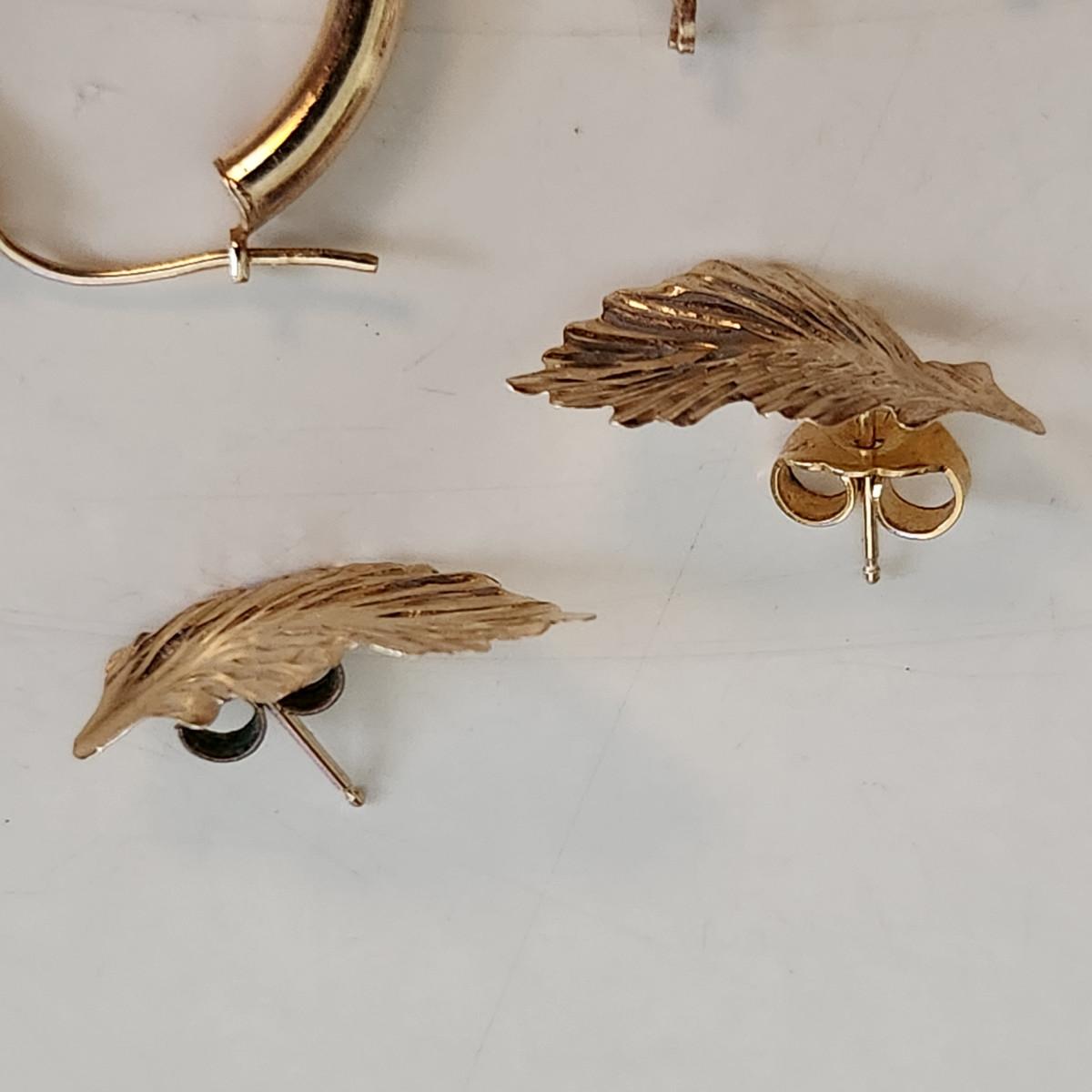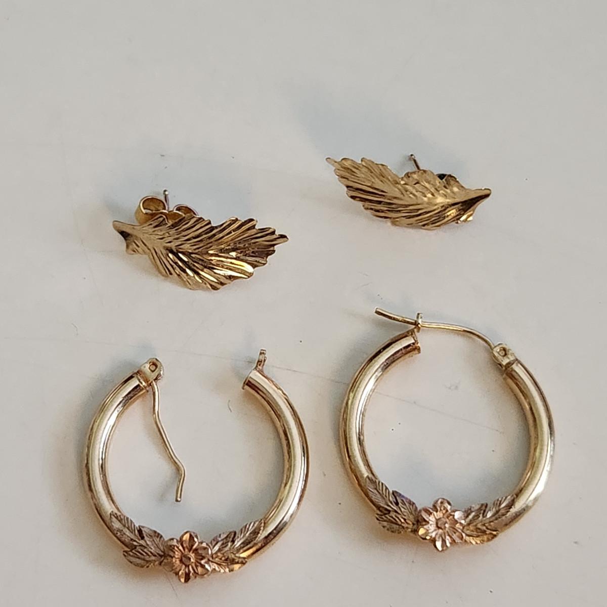 This auction lot is for Two Pair of Gold Earrings. These earrings are not marked but based on our years of experience we feel quite certain they are gold - they have not been tested. Both pair are quite pleasing to the eye and would look perfect on either you or that perfect person in your world. The starting price is the current scrap gold price based on their combined weight of about 3.3 grams.