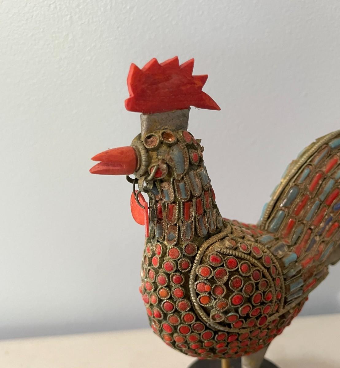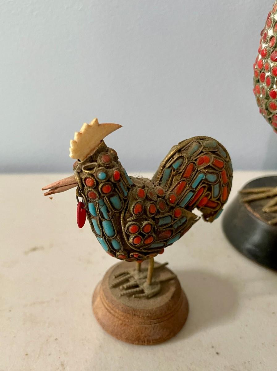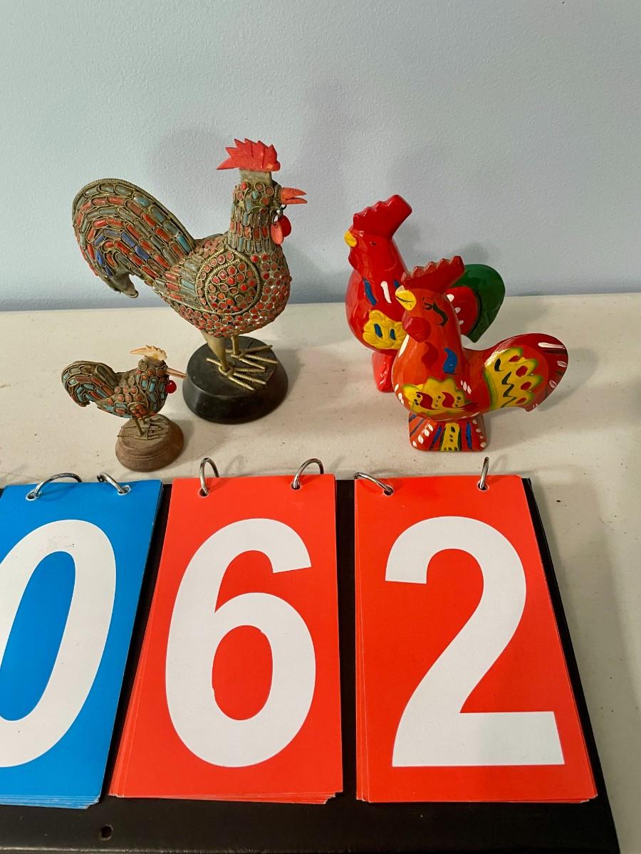 Includes a pair of beaded and a pair of painted pottery roosters.
