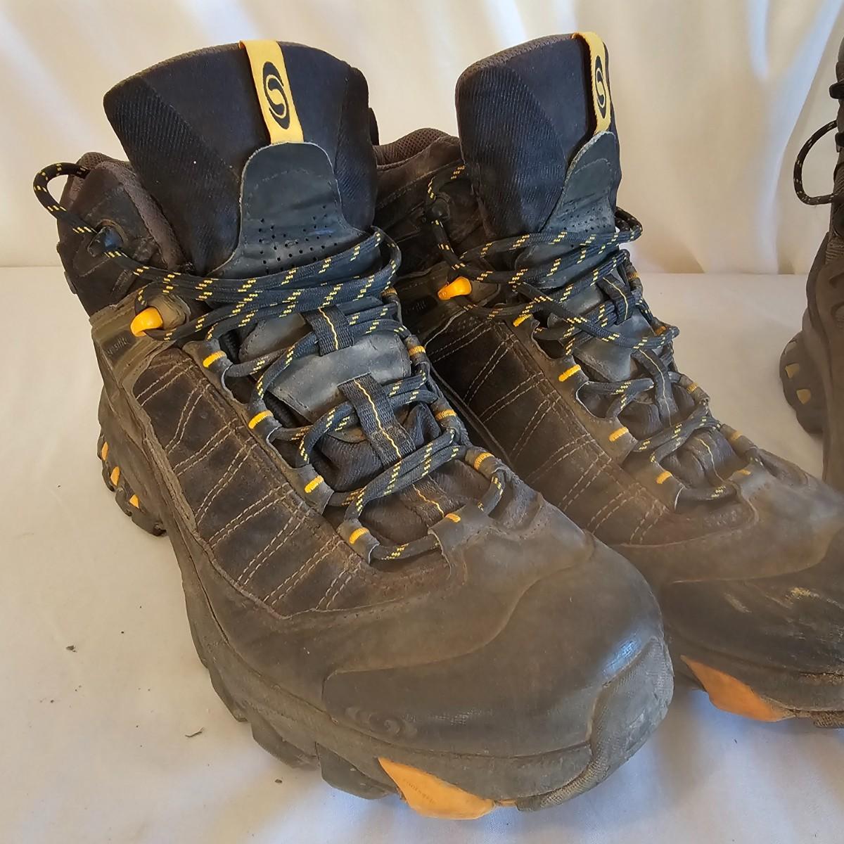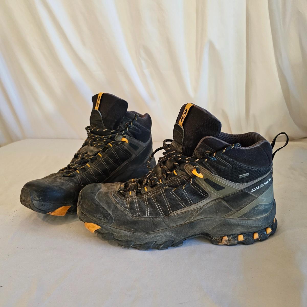 Lace up hiking boots by Salomon. Gore-Tex lining, both men's size 9. Have seen some use. See photos for details. Shipping available.