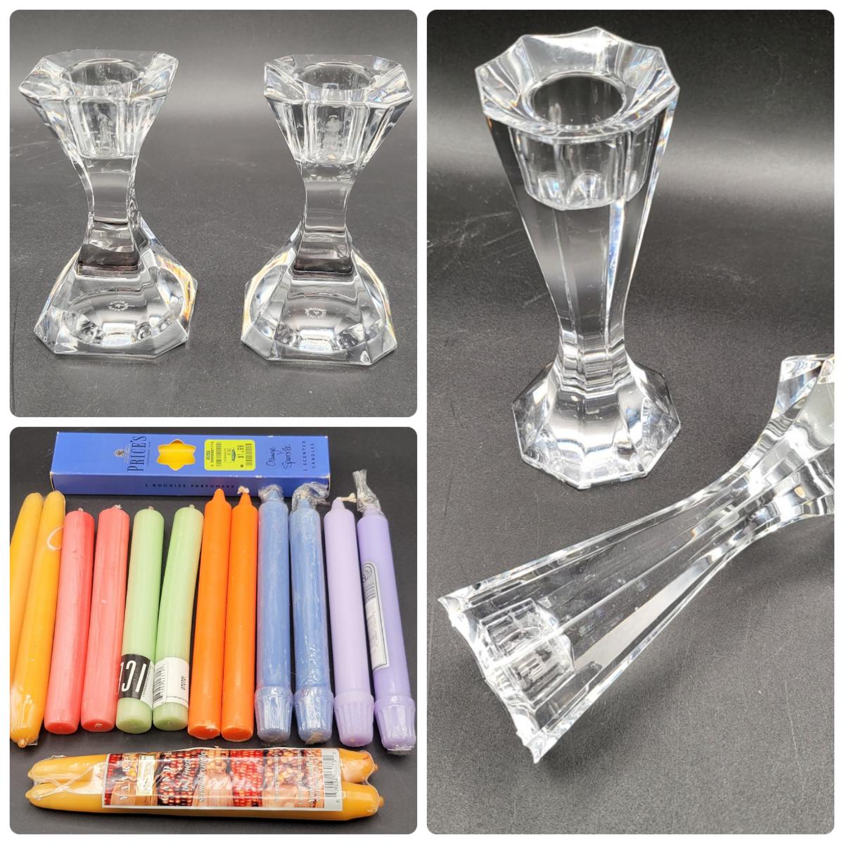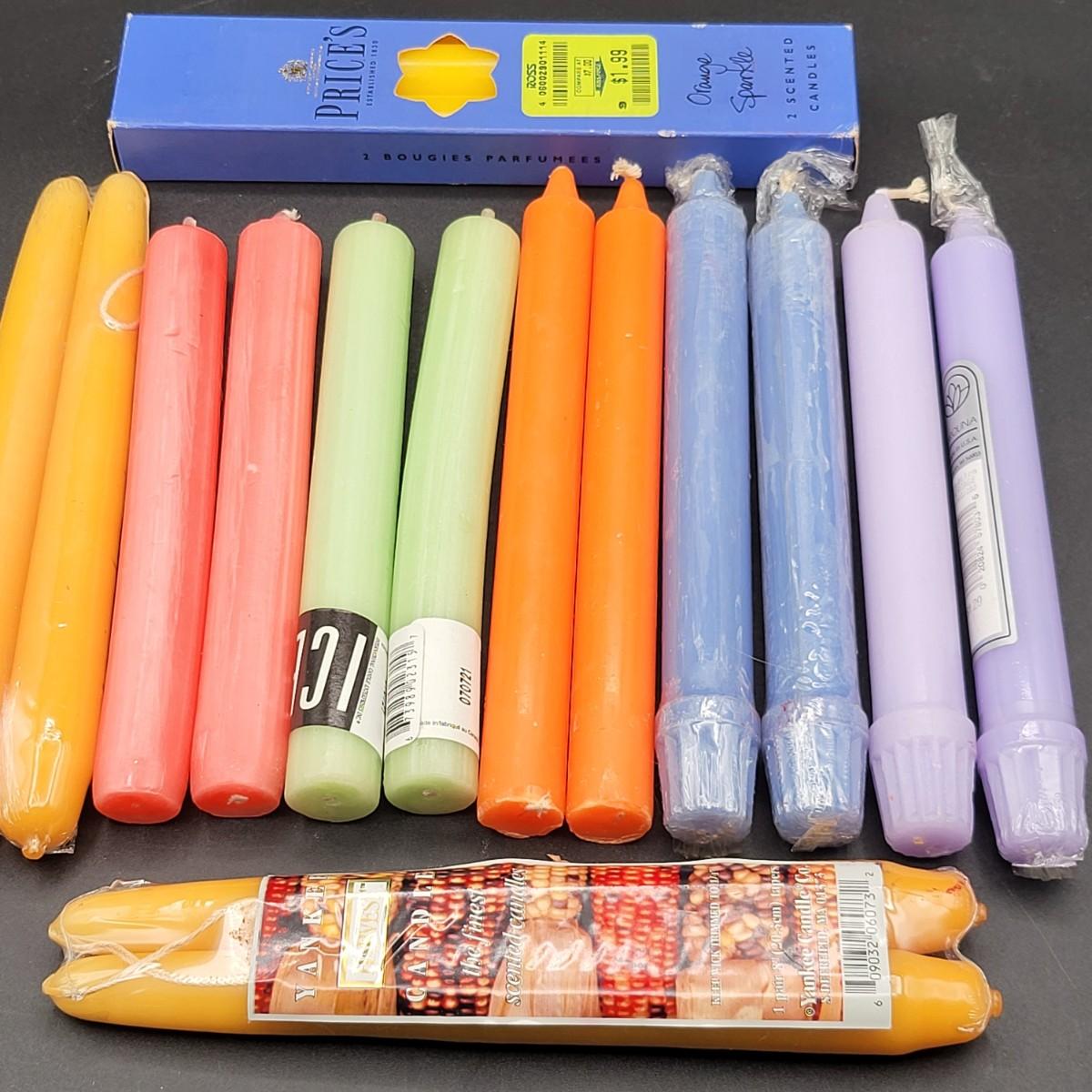 Includes 8 pairs vintage 7" colored taper candle sticks.