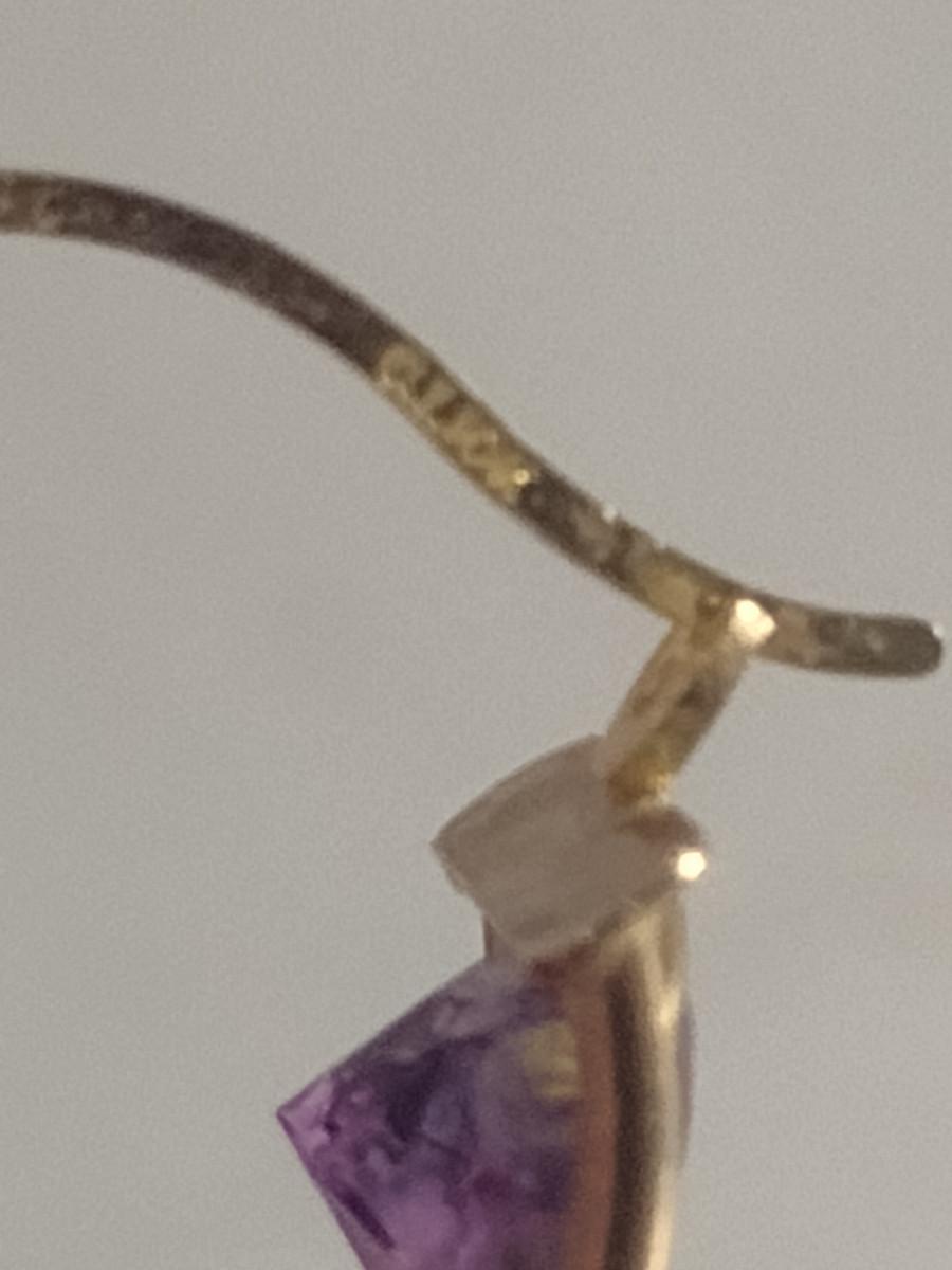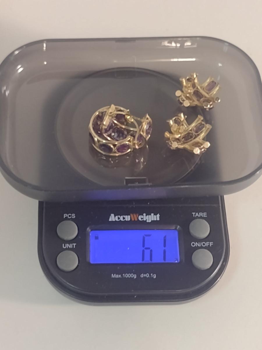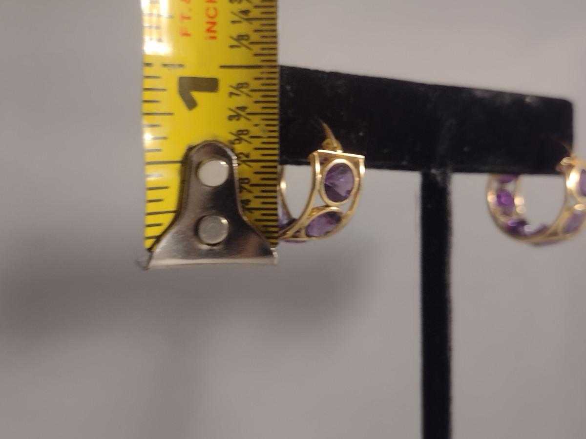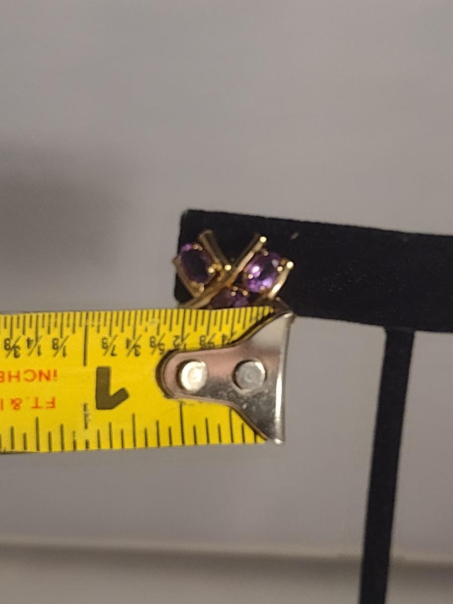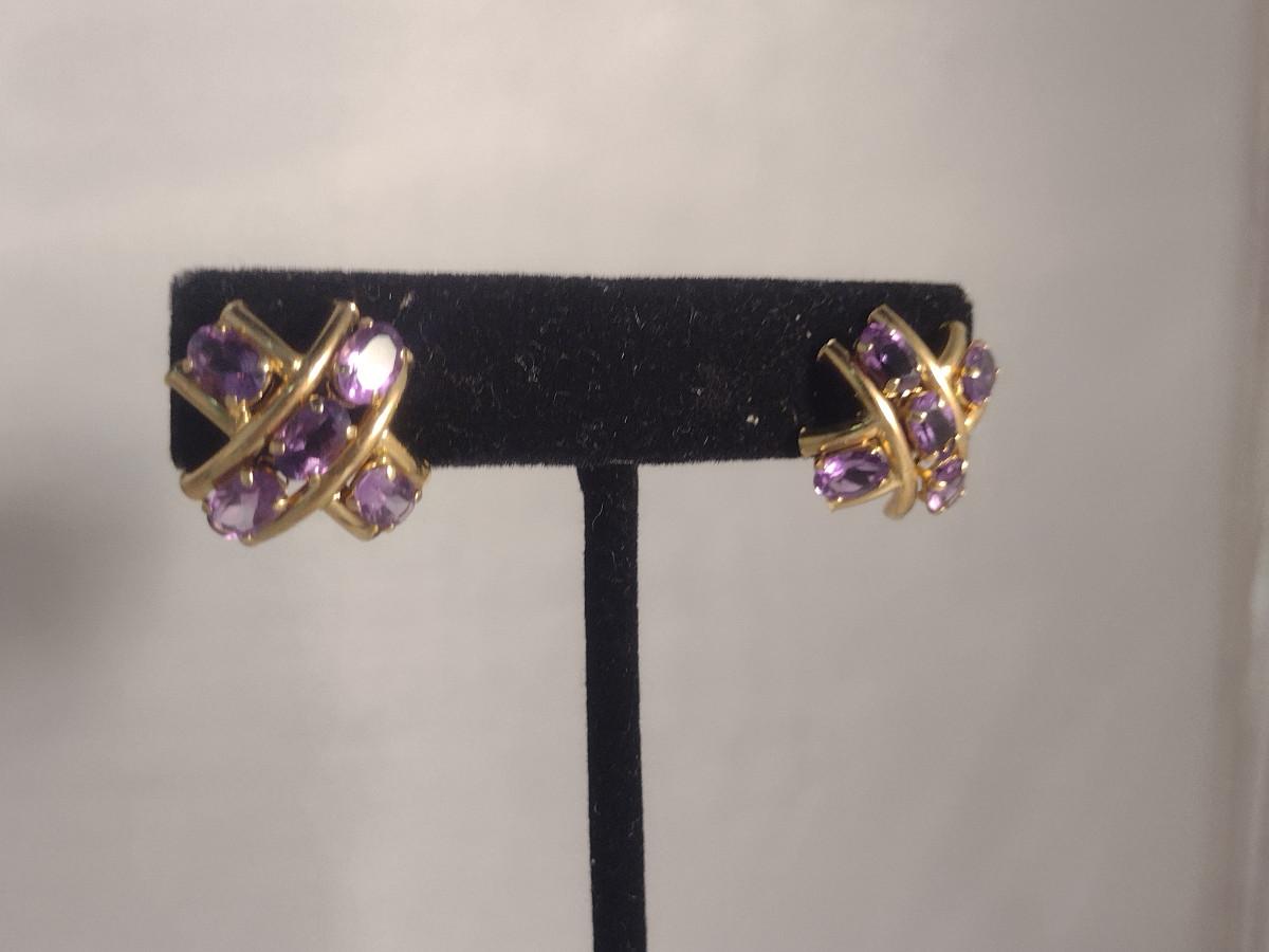 Two Pairs of 10 Karat Yellow Gold and Gemstone Post Earrings- Approx Weight 6.1 Grams (#43). Stones are possibly amethyst.