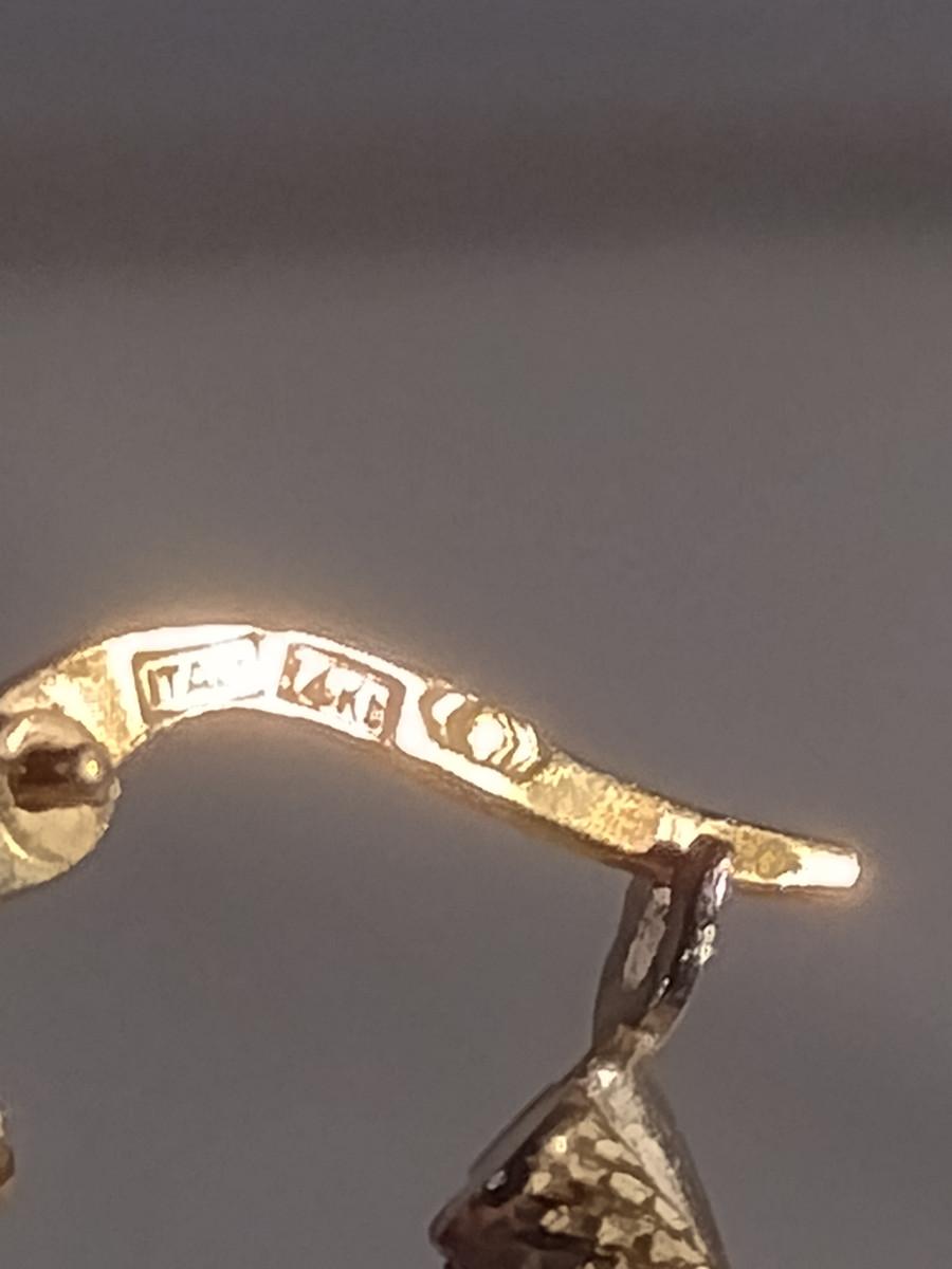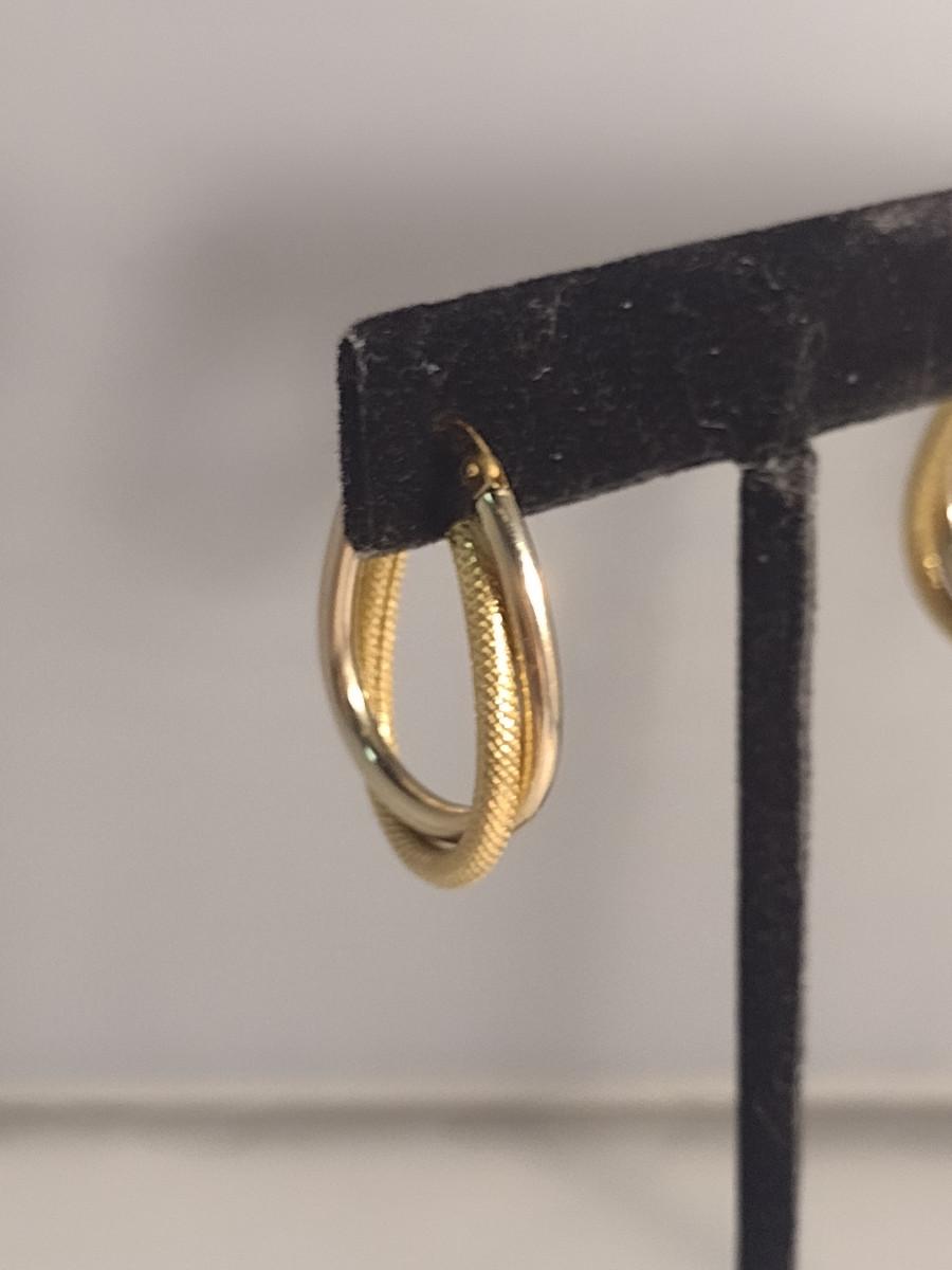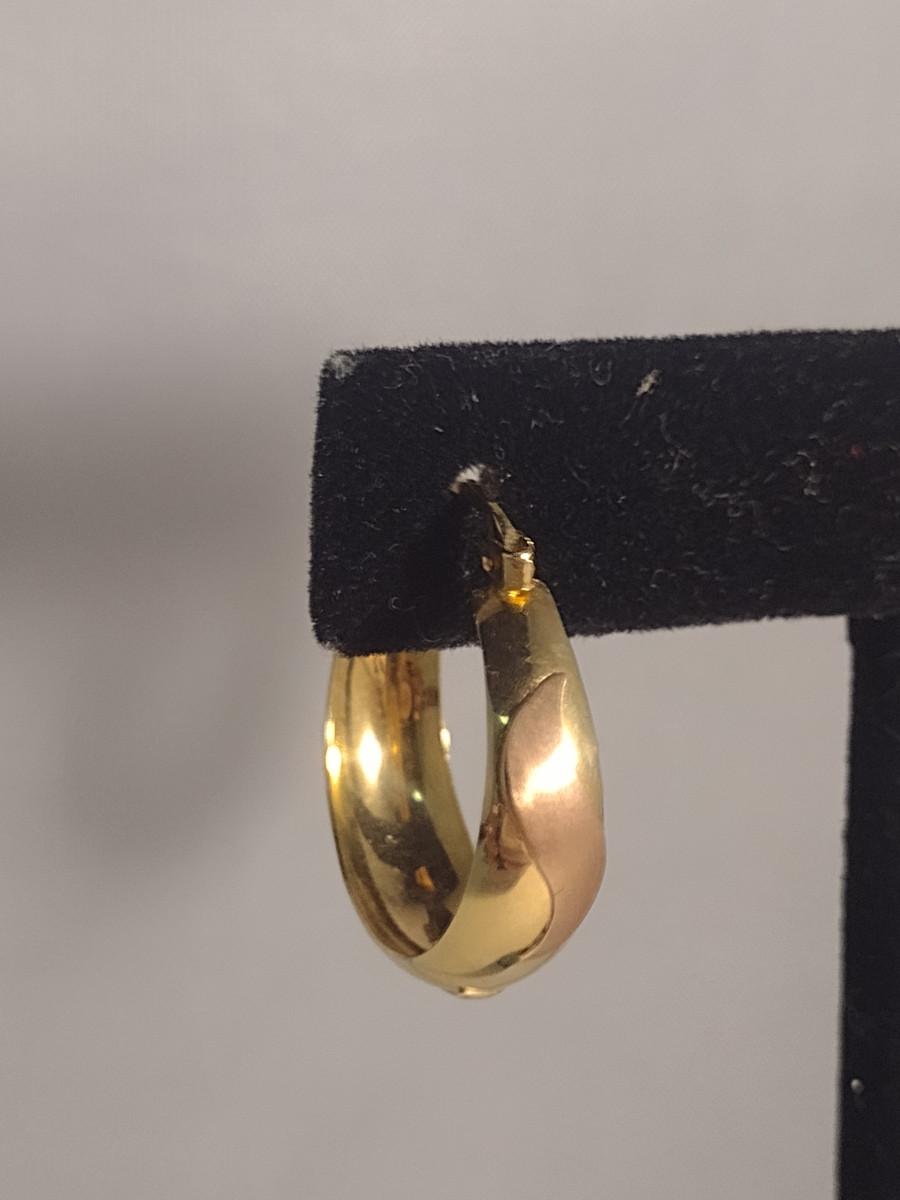 Two Pairs of 14 Karat Yellow Gold Post Earrings- Approx Weight 7.9 Grams (#42). One pair has white and rose gold accents- please see all pictures for design.