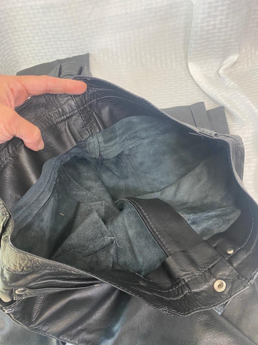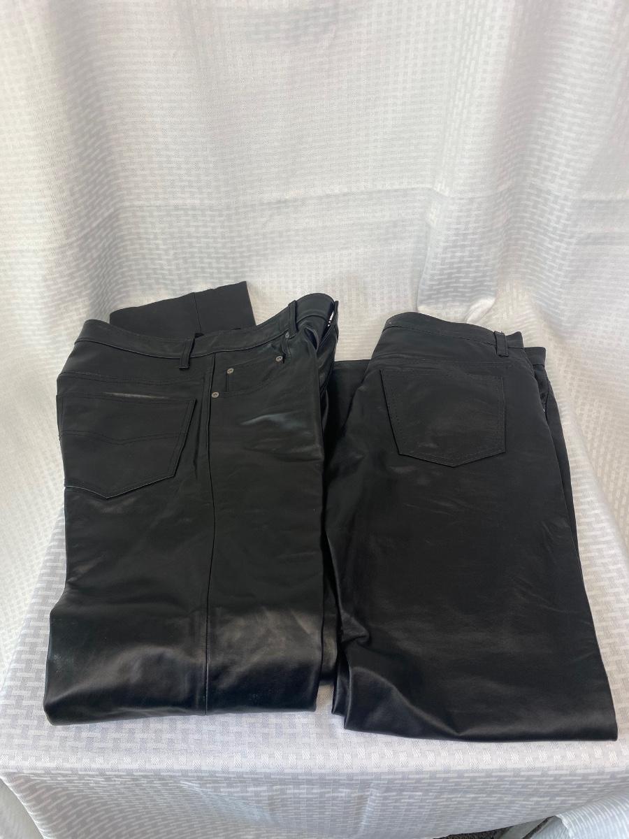 Two Pairs of Black Leather Pants Size 32 Pelle Studio Wilsons. One with tags inside, one without. The pair without a tag are the same or close to the same size as the other pair. Good previously worn condition.