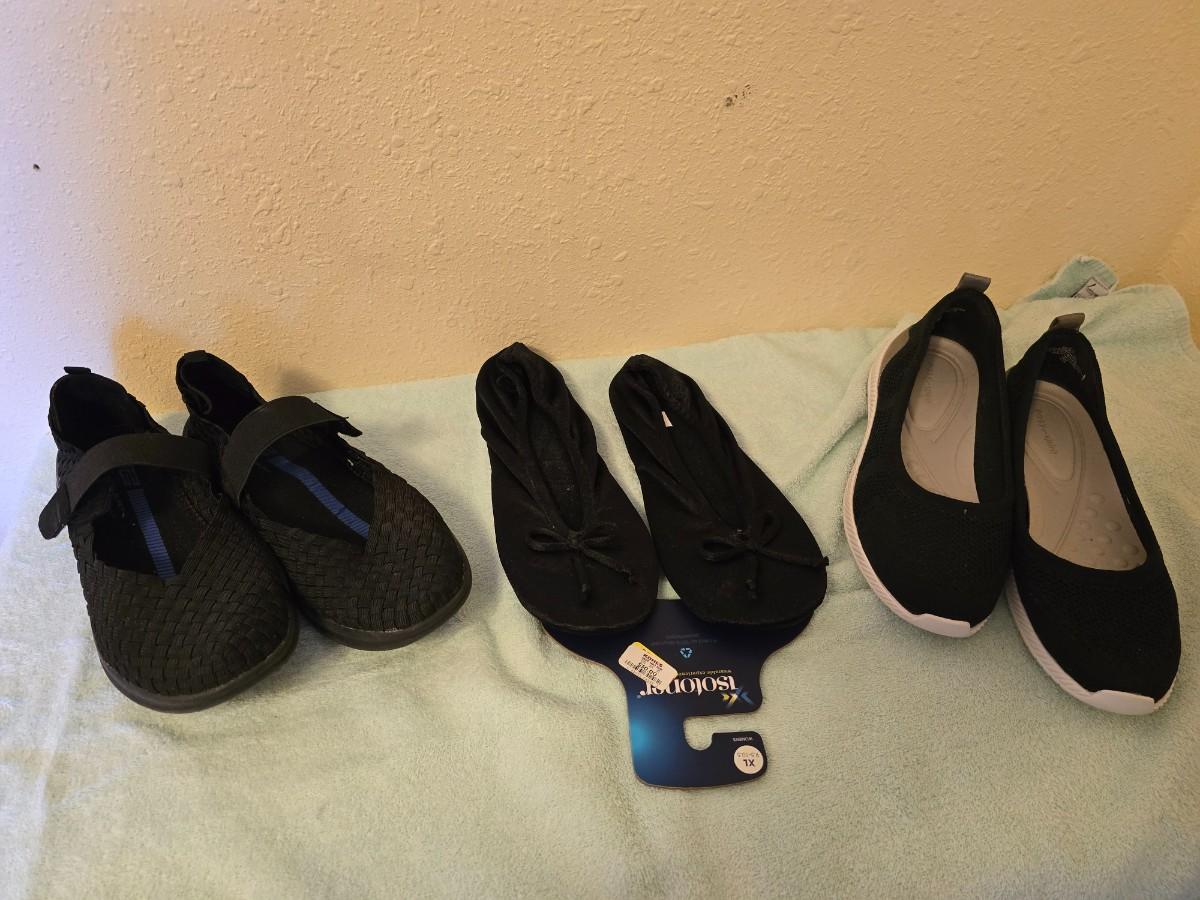 Two pairs of Flats and a new pair of Isotoner XL slippers