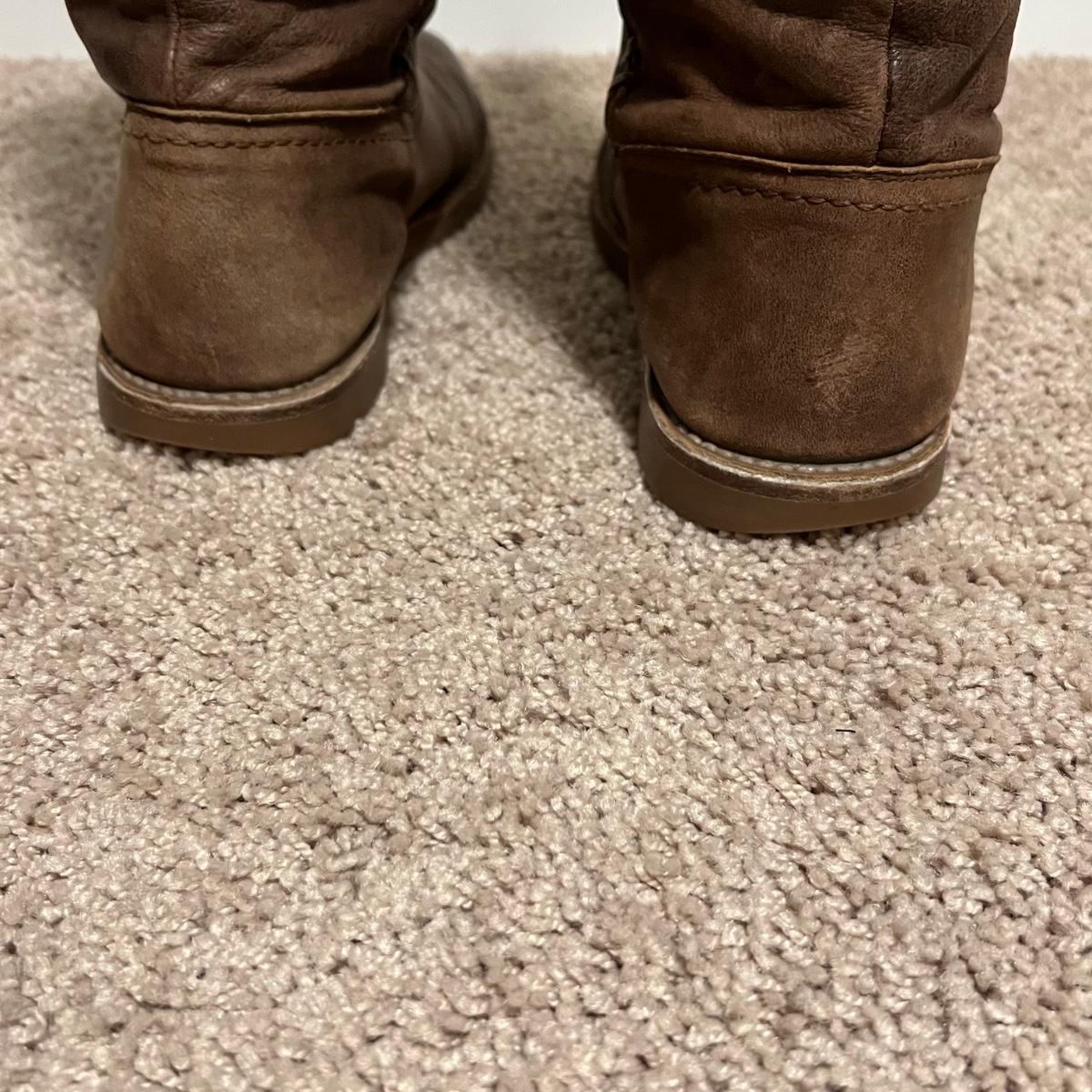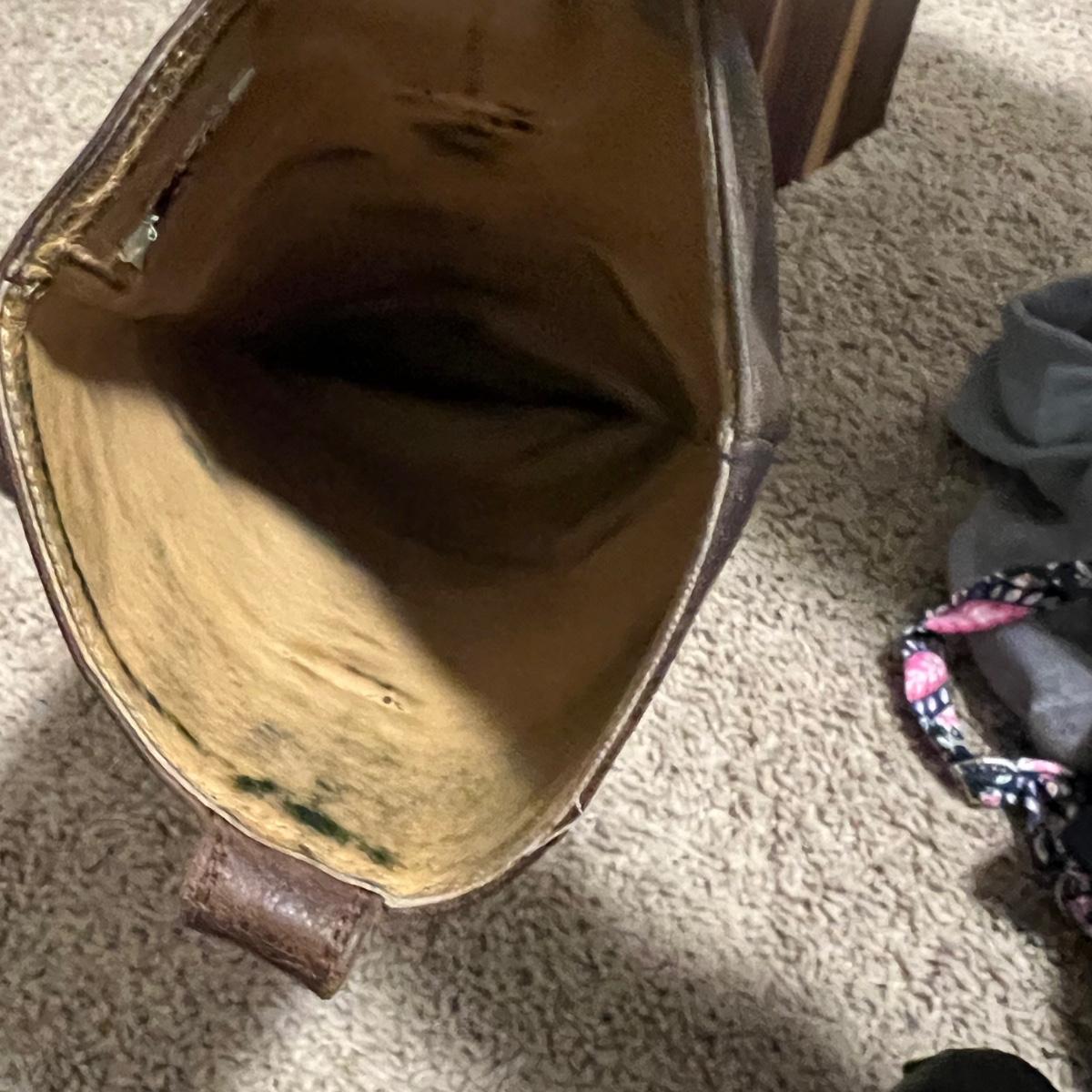 No label to authenticate that they are real leather. Some discoloration can be found just on the inside of these boots.