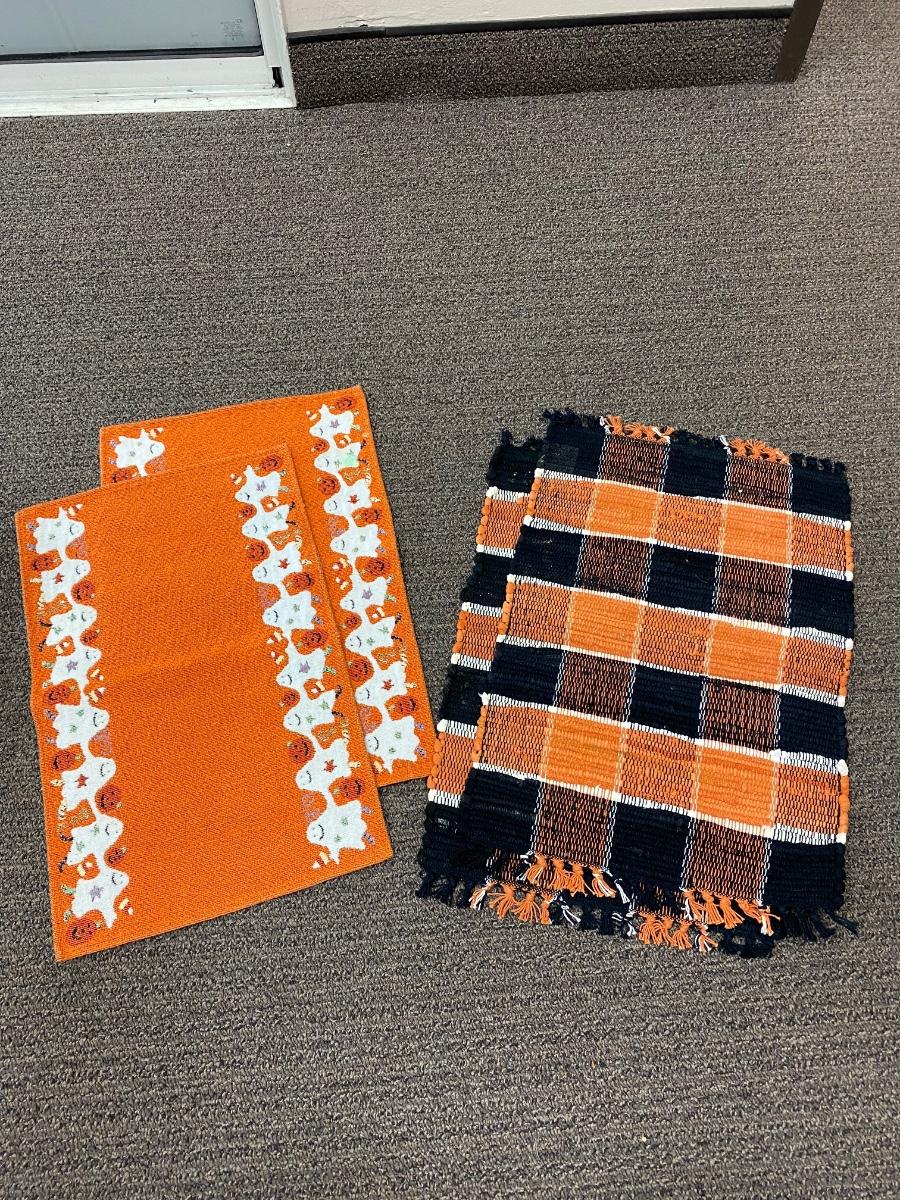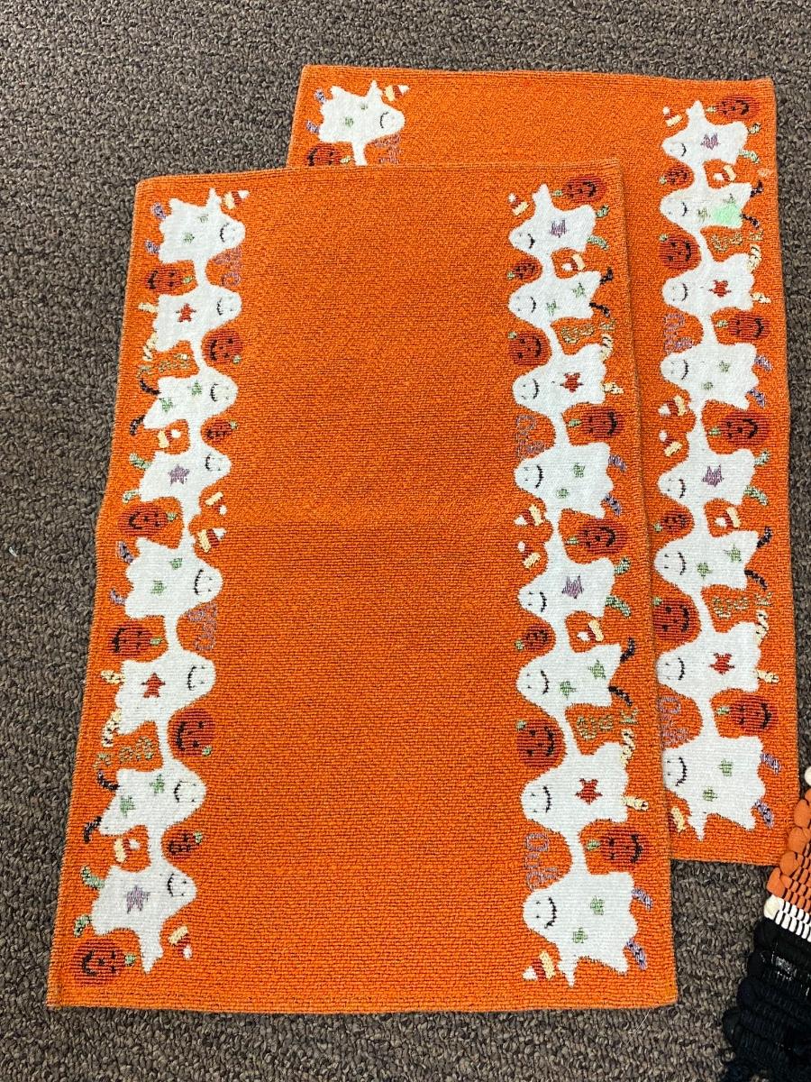 Two Pairs of Halloween Seasonal Place Mats Orange Black Ghosts