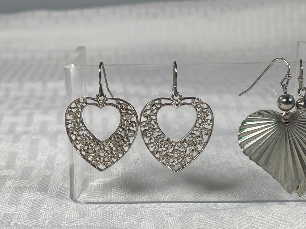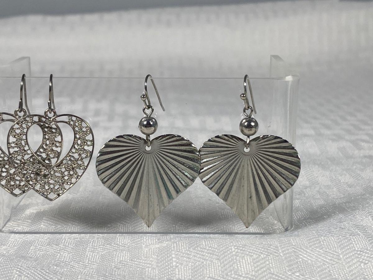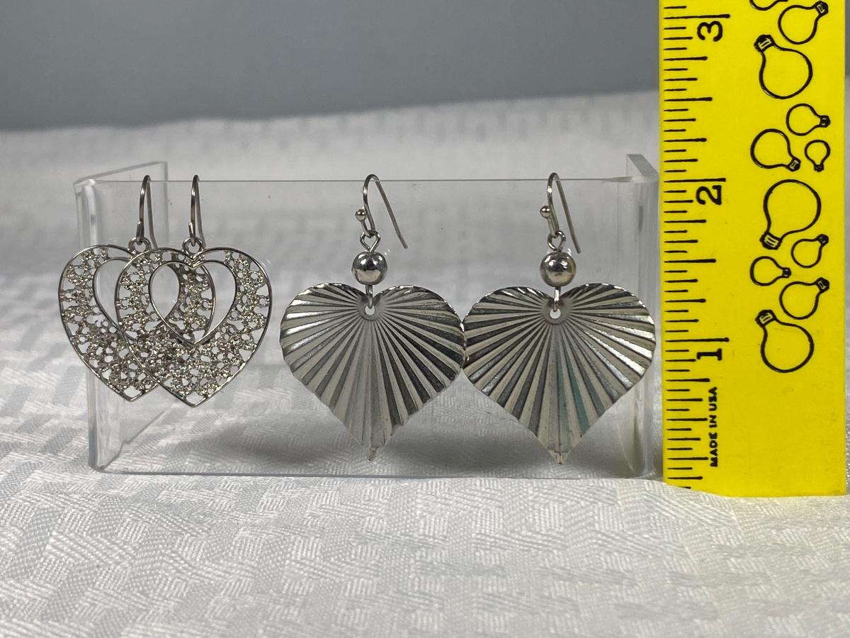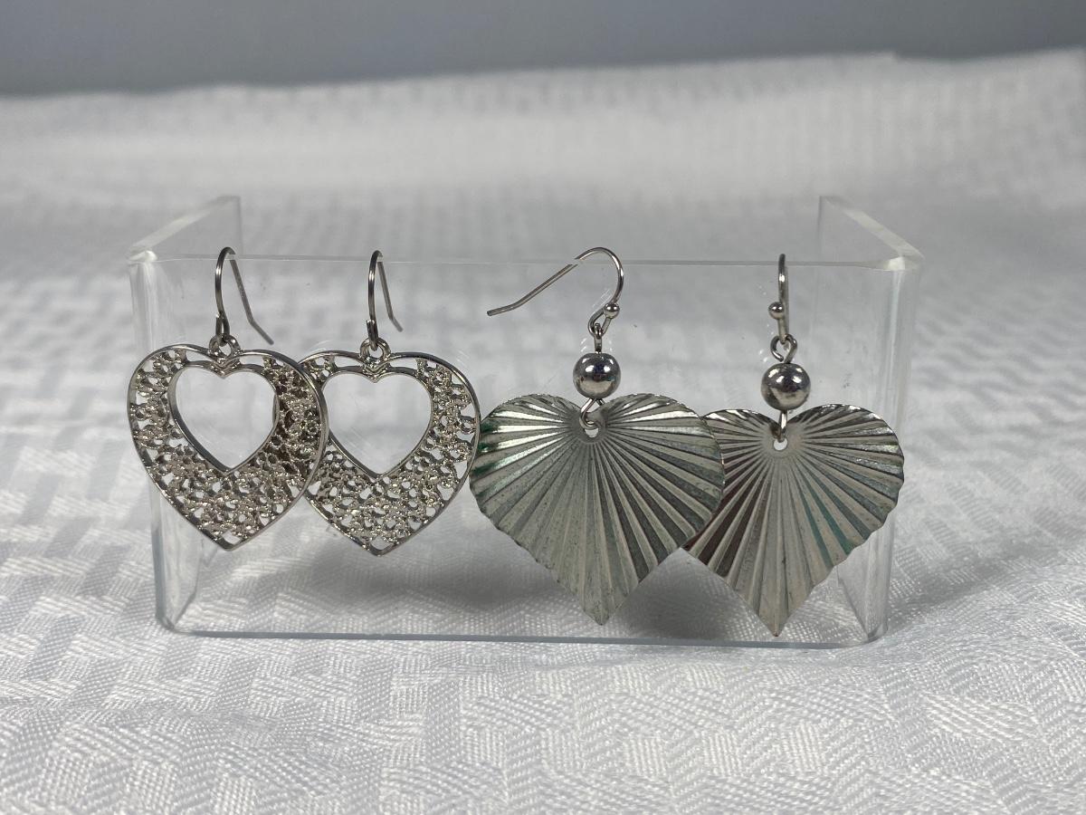 Two Pairs of Heart Shaped Silver Tone Dangling Earrings