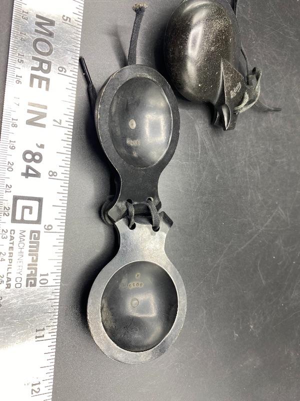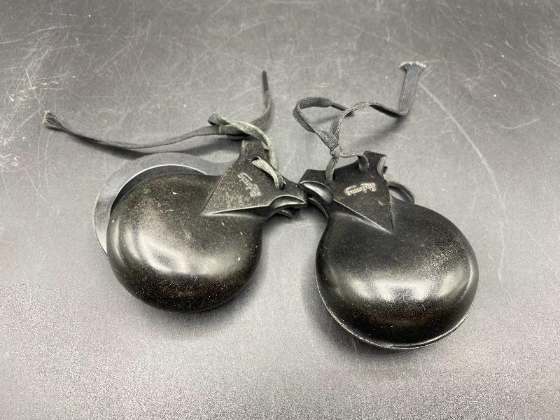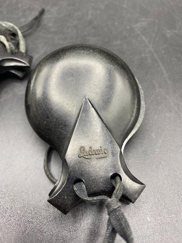 Two pairs of vintage Ludwig castanets. These are possibly made of bakelite from what I have seen online. Do have signs of wear consistent with age and use.
