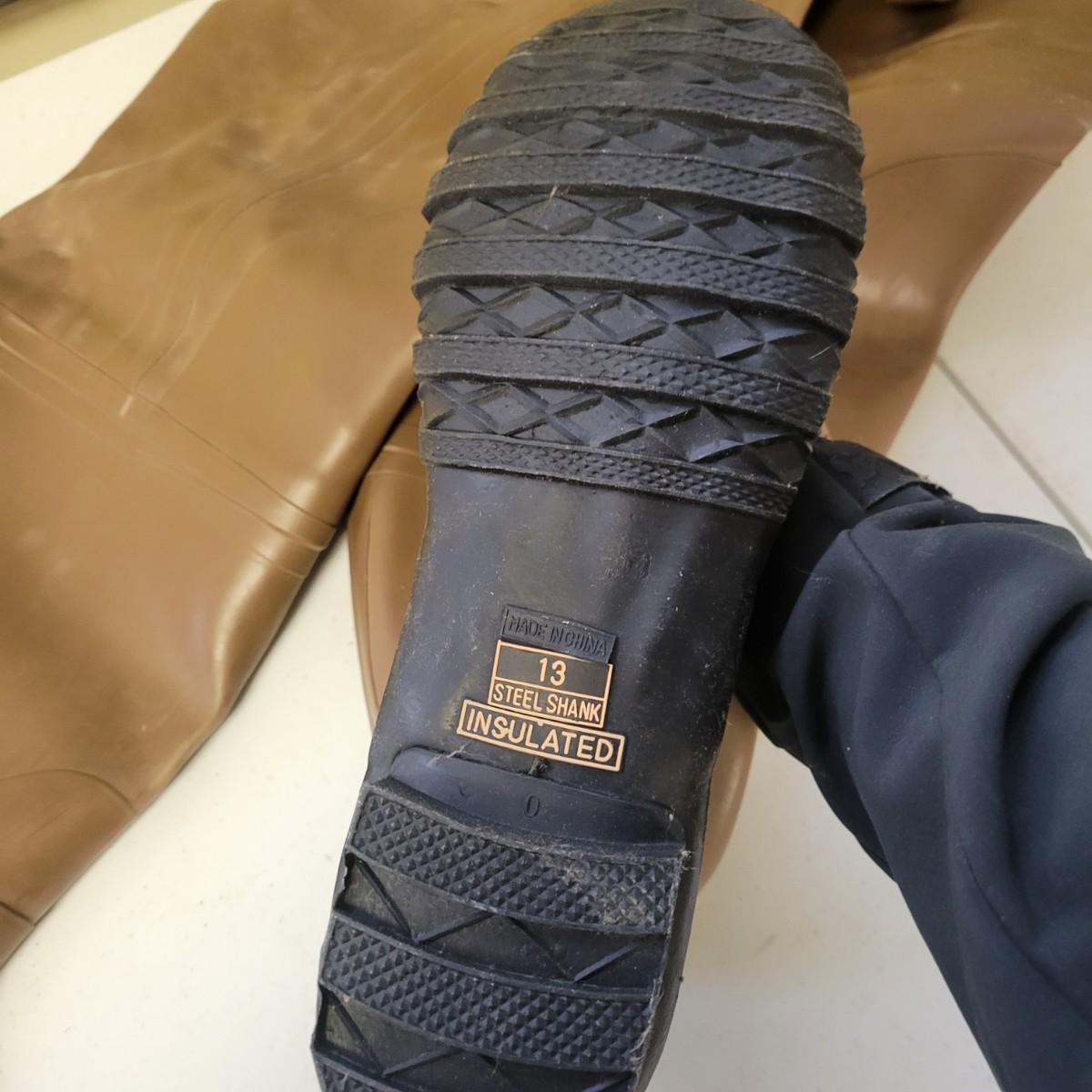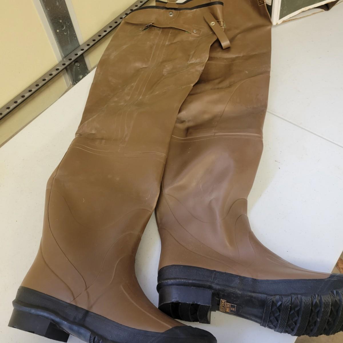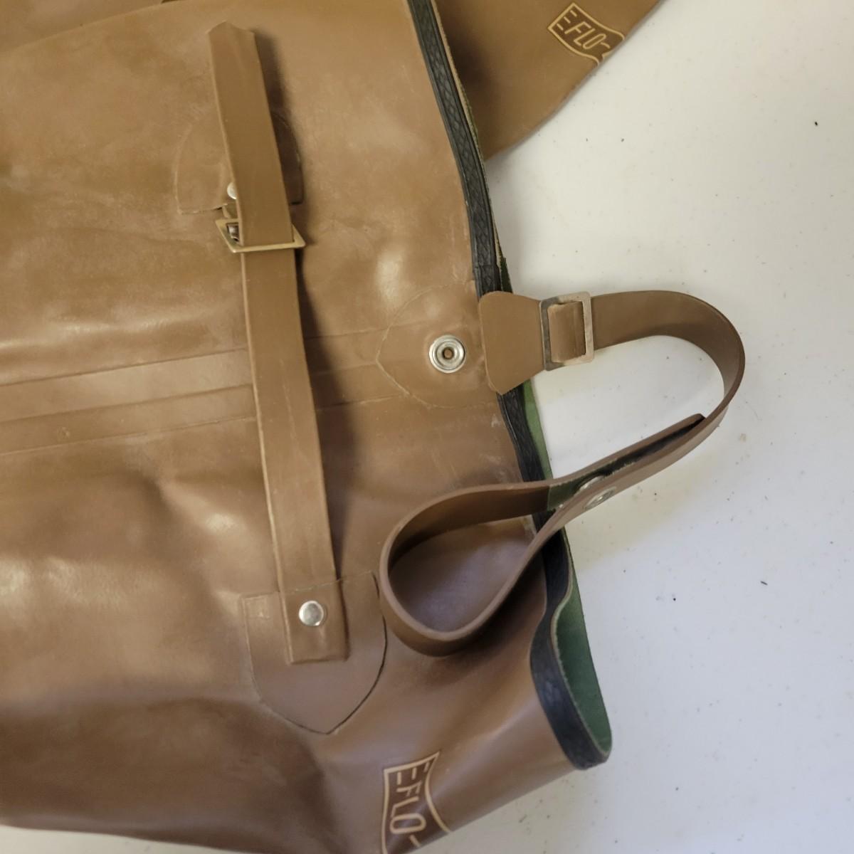 Two pairs of men's waders in excellent condition. One pair have never been used and the other pair has seen light use. One set is a pair of vinyl boot foot thigh waders manufactured by Flo-Lite. They have straps that loop through a belt to hold them up and they have rubber soles. These appear to have never been used. Also included is a pair of ProLine neoprene boot foot chest waders. These are also size 13 and have rubber soles. Shipping available. Shipping can be costly. We suggest calling our local UPS with dimensions and getting an estimate before bidding: (828) 252-6930