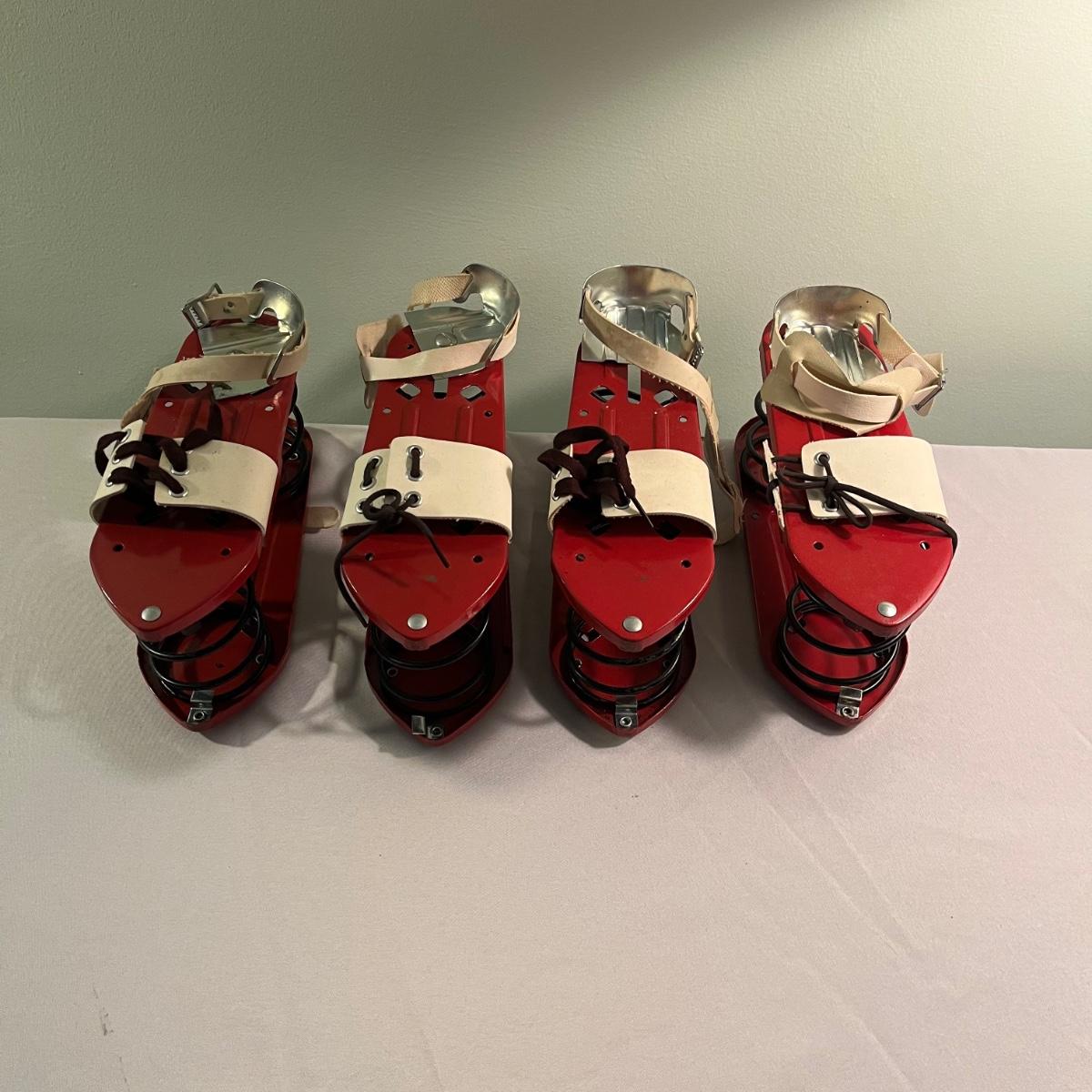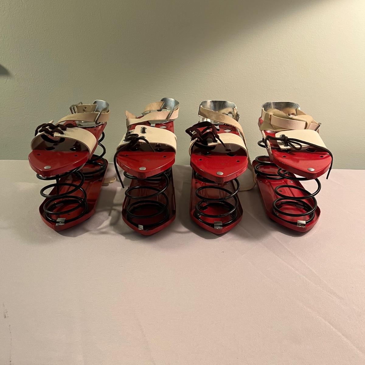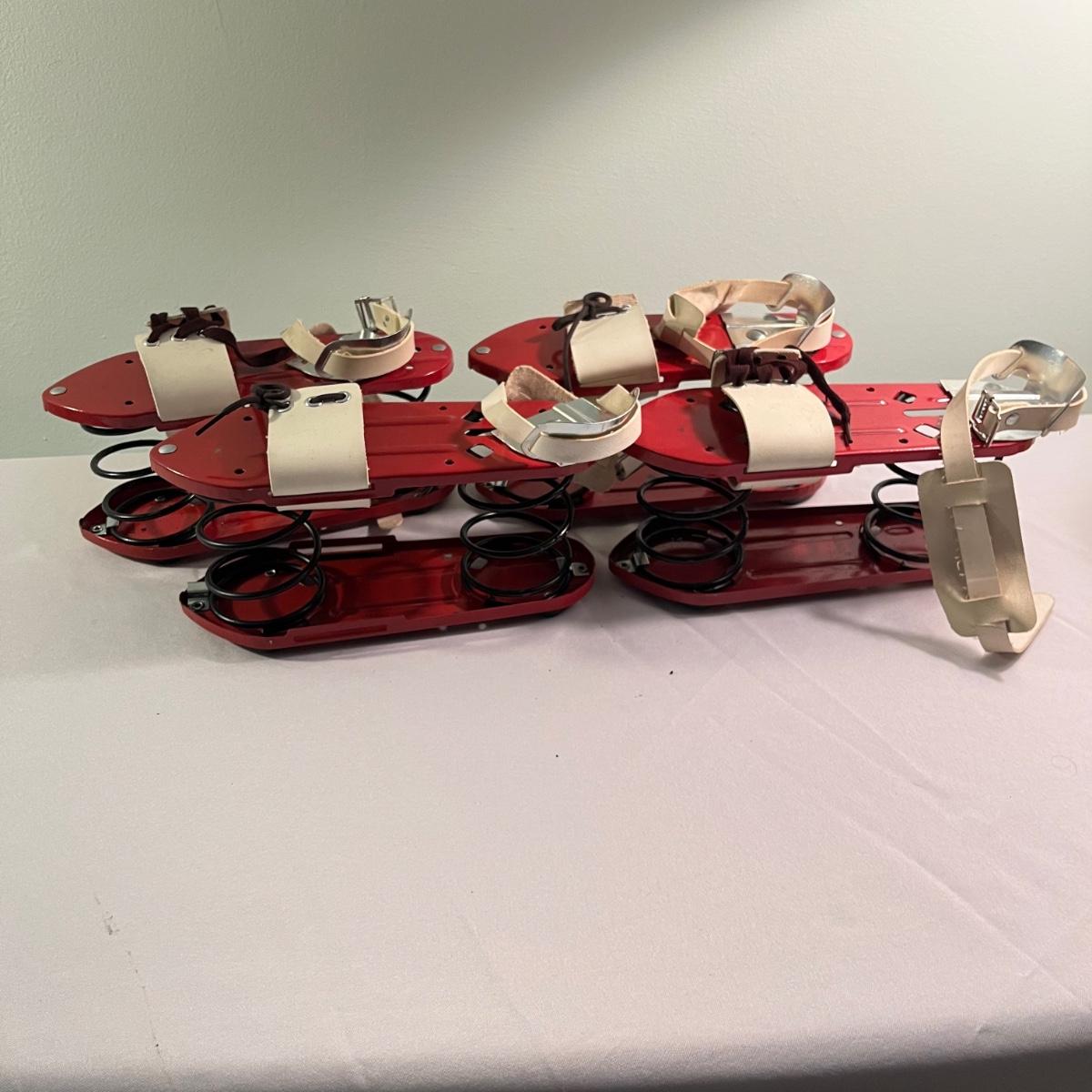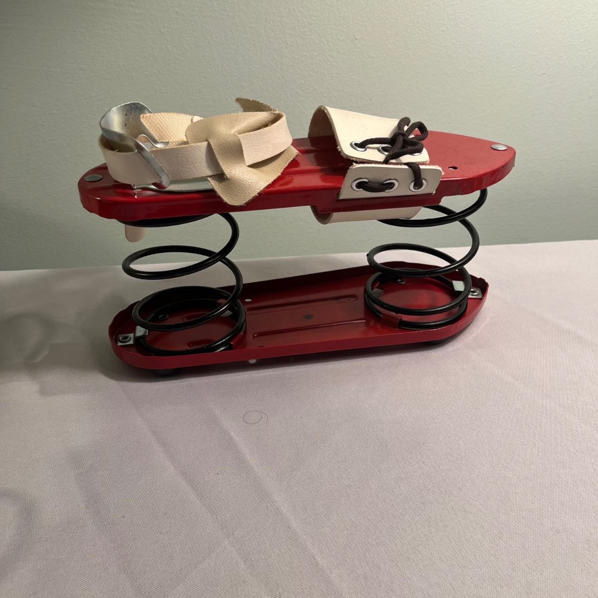 Lot includes two pair of metal pogo spring shoes that appear to be unused. Shoes measure 3.5” x 10” x 4.75”.