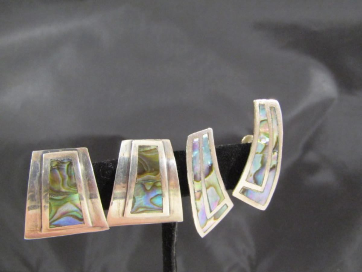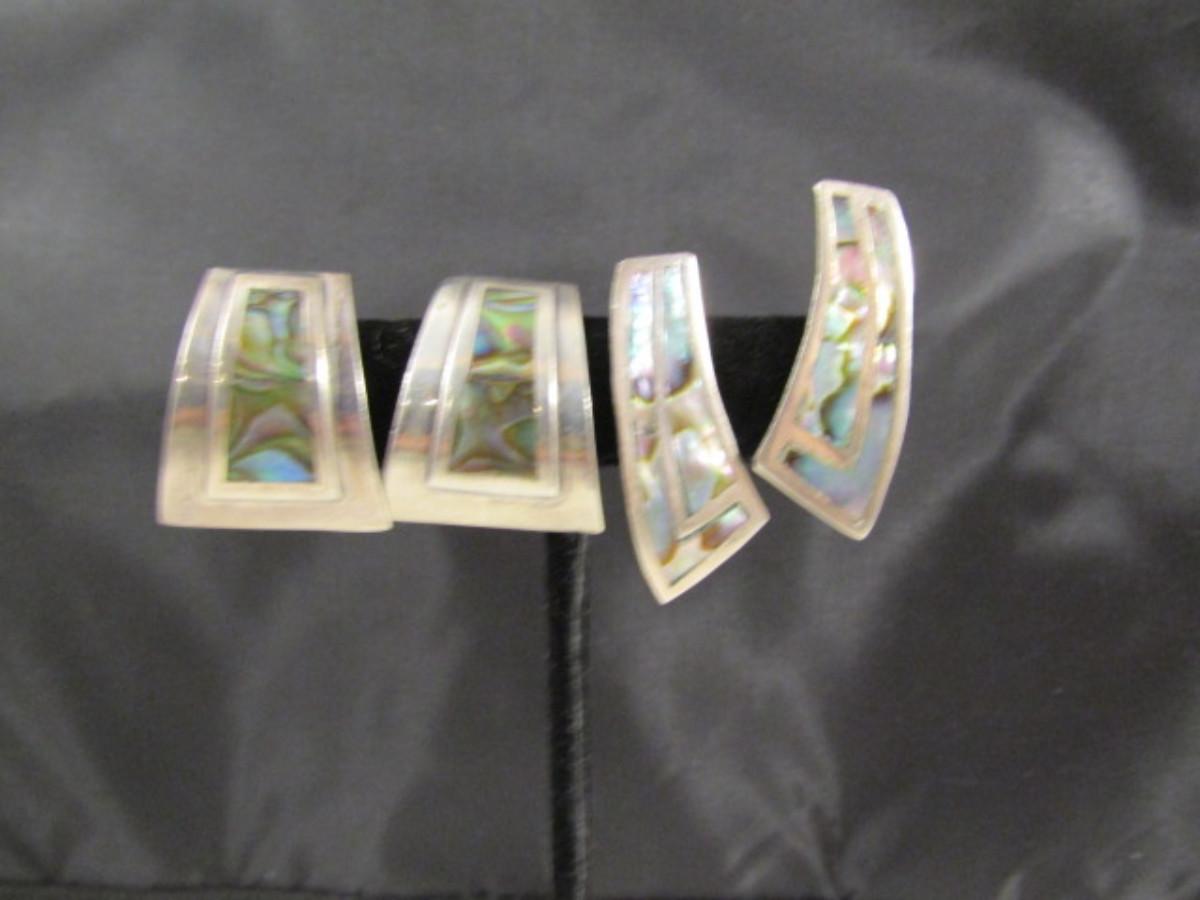 Two Pairs of Sterling Silver and Abalone Screw-Back Earrings- Approx 13.9 Grams (#18).
