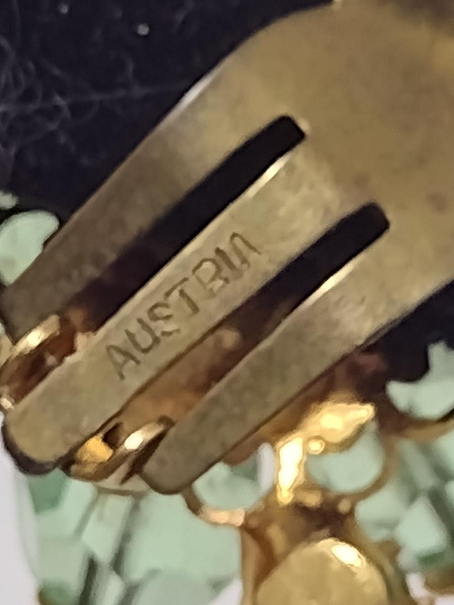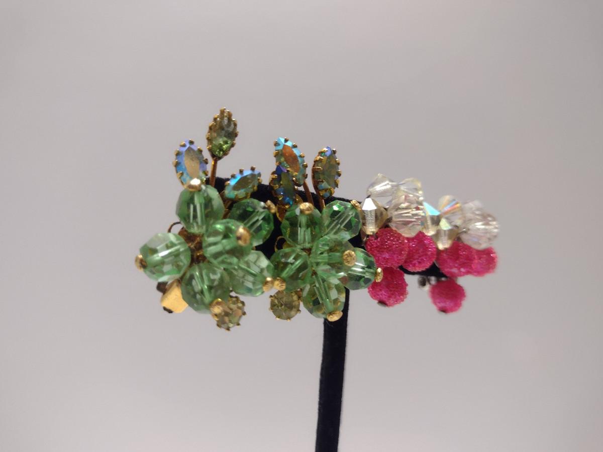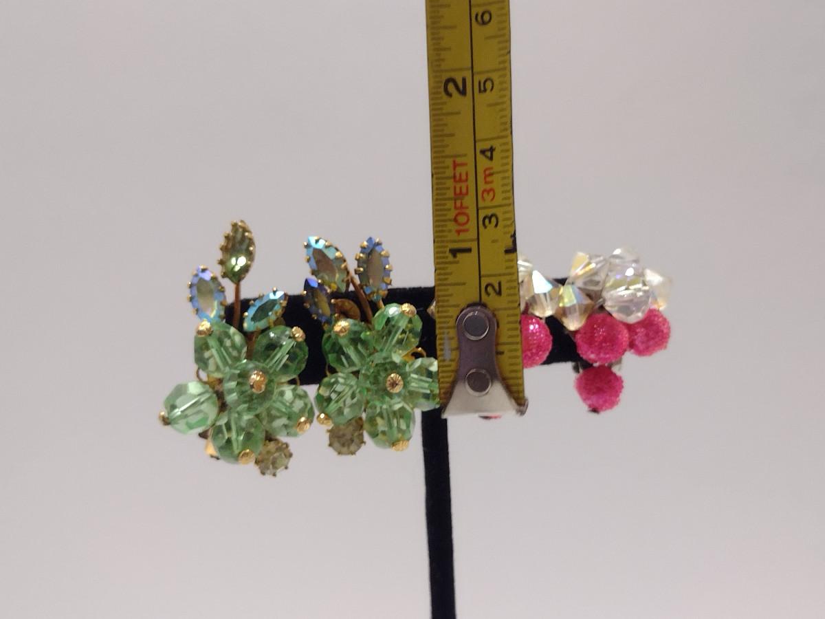 Two Pairs of Vintage Aurora Borealis Earrings (#45). Green one is marked 'Austria'.