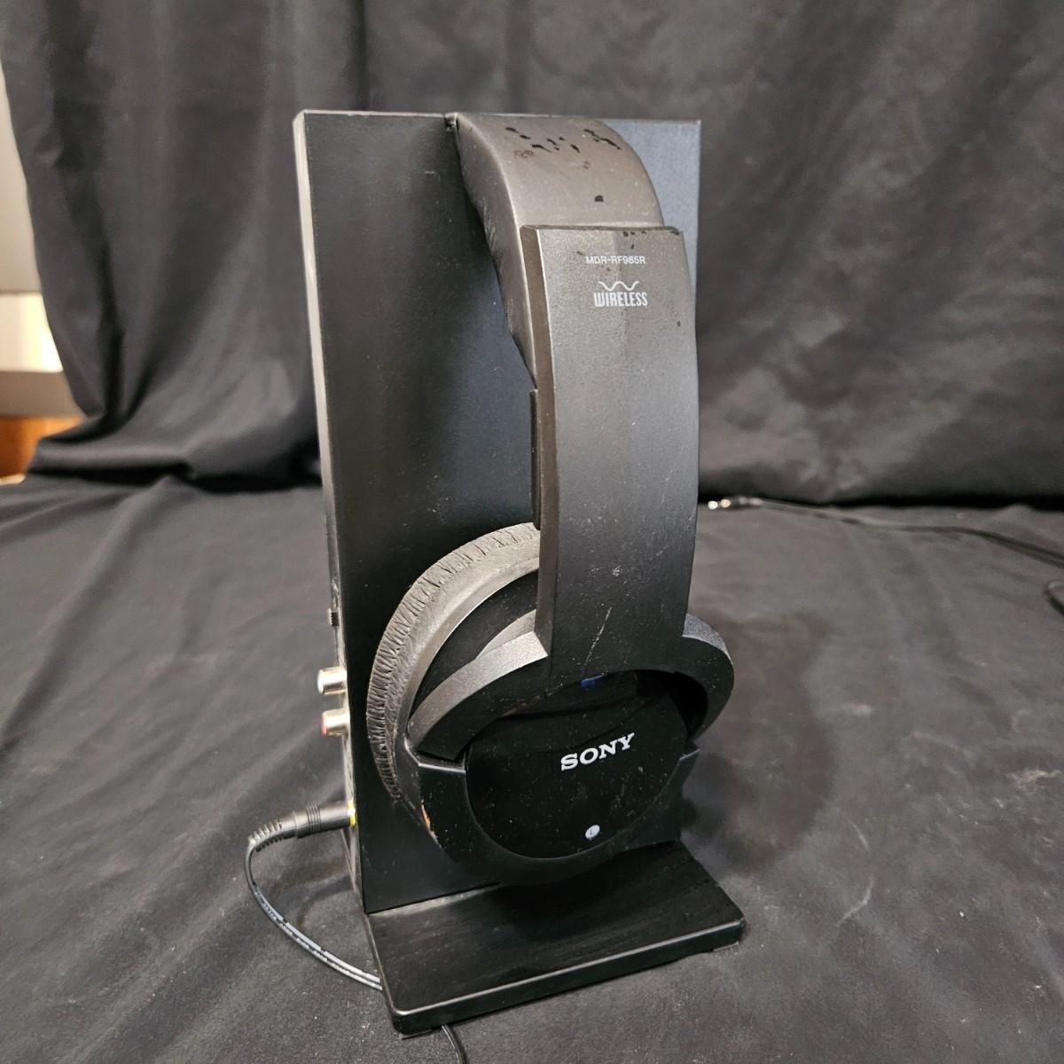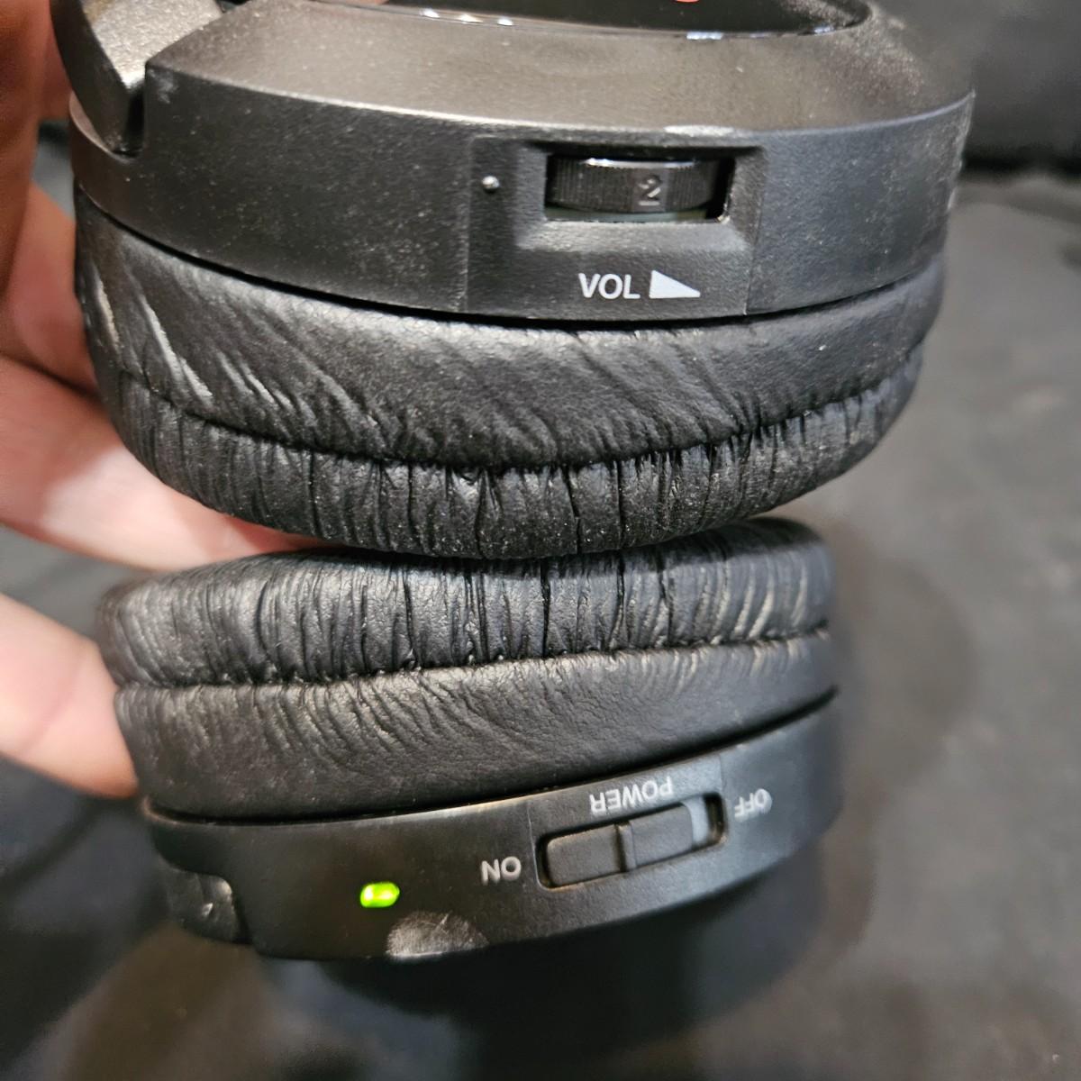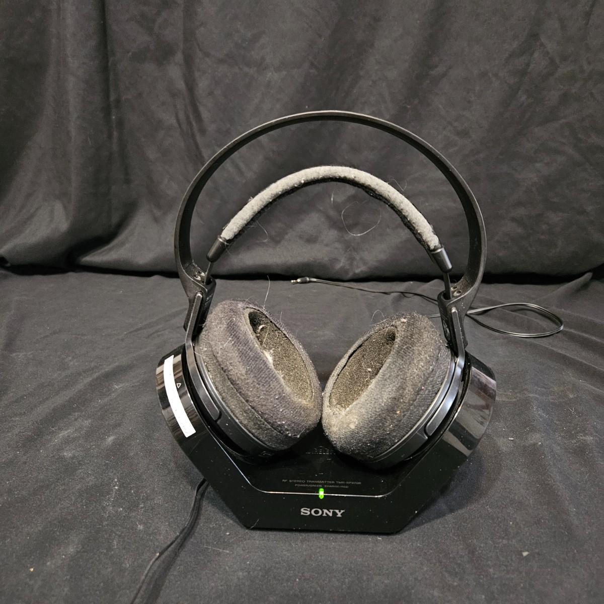 Two pairs of Sony headphones that powered on when plugged in. The pair on the right of the cover photo show signs of wear on the foam - this can be easily replaced. The set with the taller charging block measures approximately 7" x 5" x 10.5"H. Shipping available